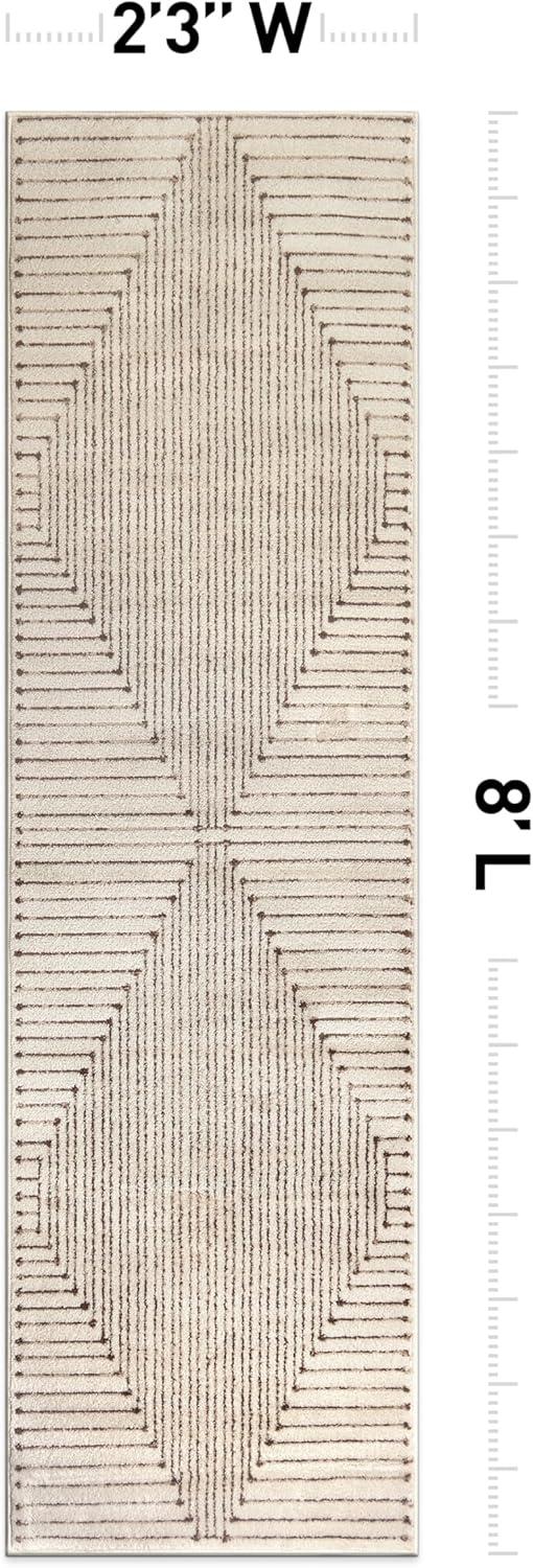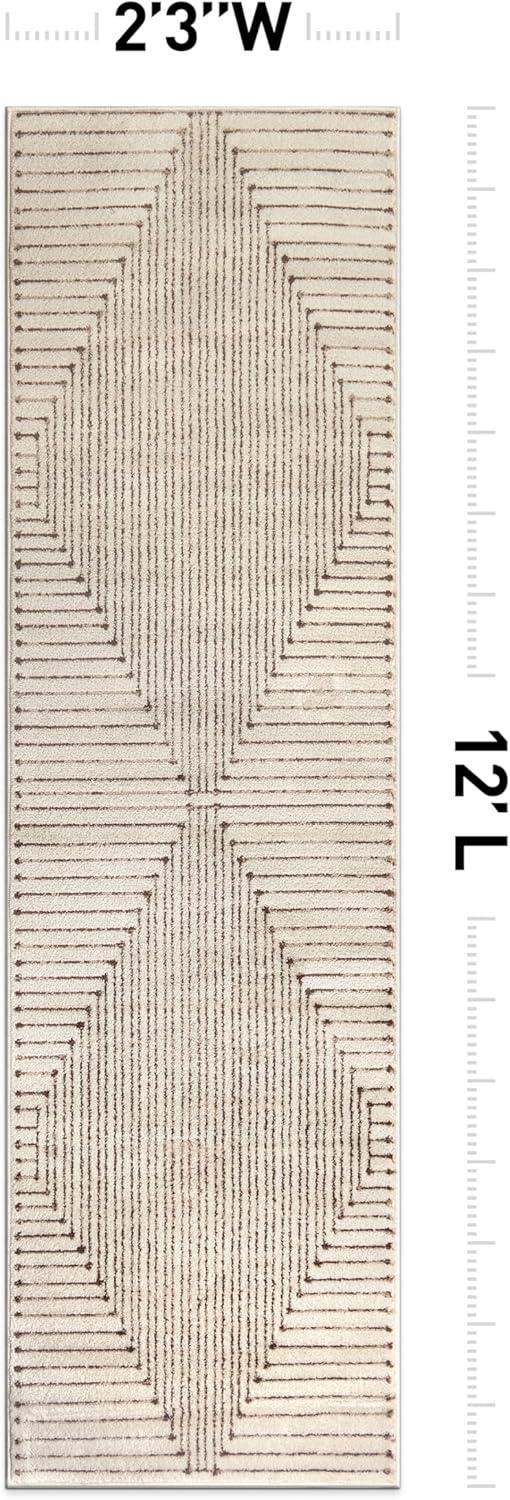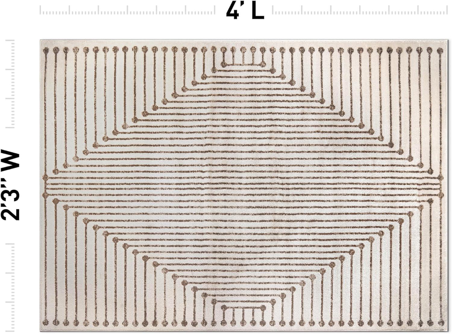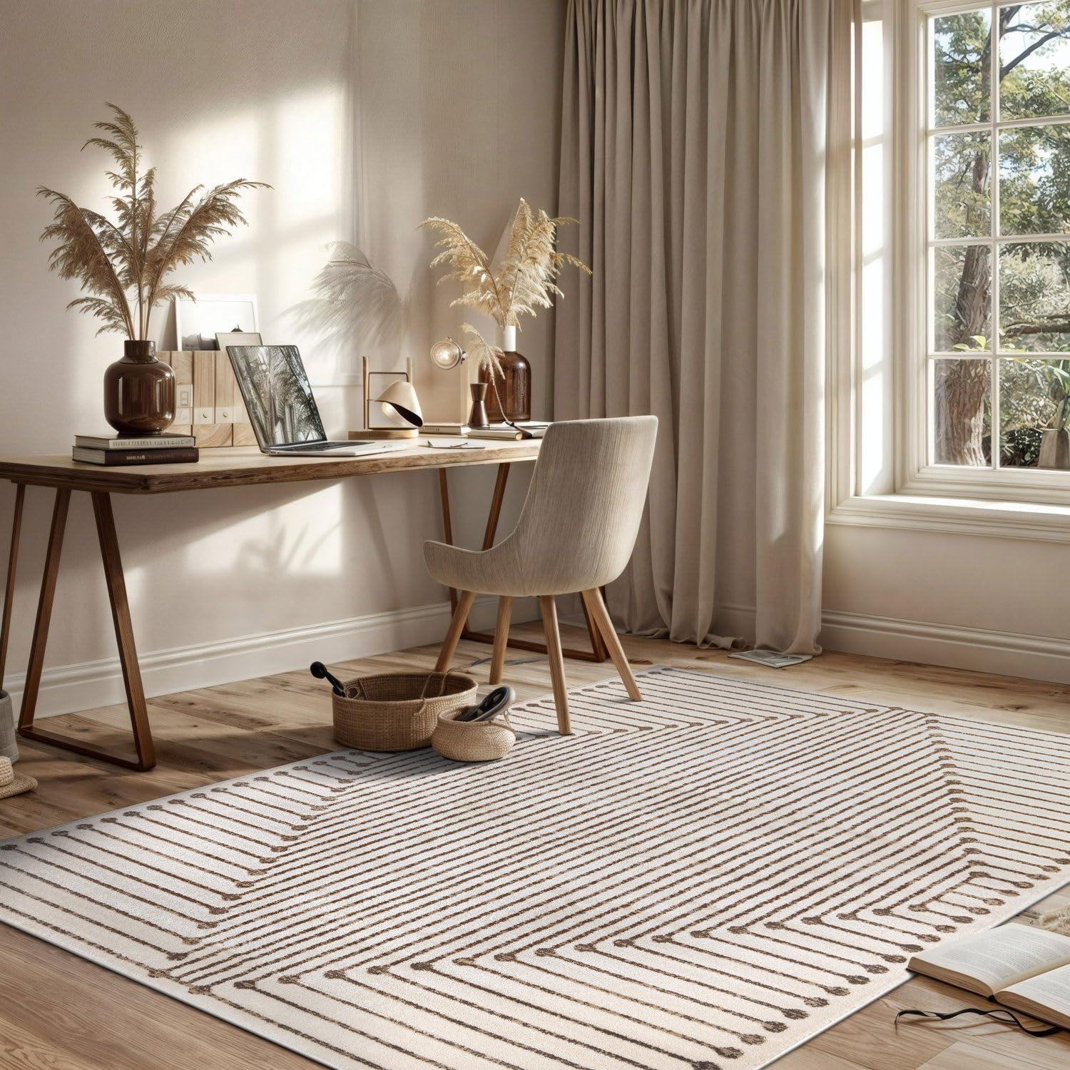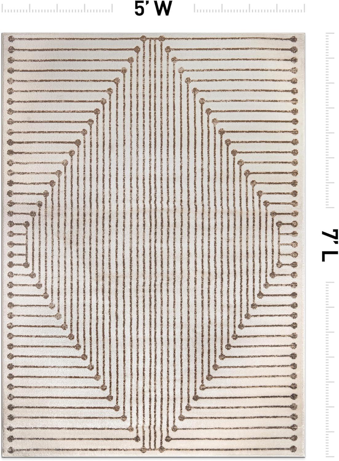 Rugshop Beige and Brown Geometric Area Rug – Soft Abstract Line Pattern Carpet for Living Room, Bedroom, or Office – Contemporary Neutral Decor Accent 5′ x 7′ Beige(Beige)