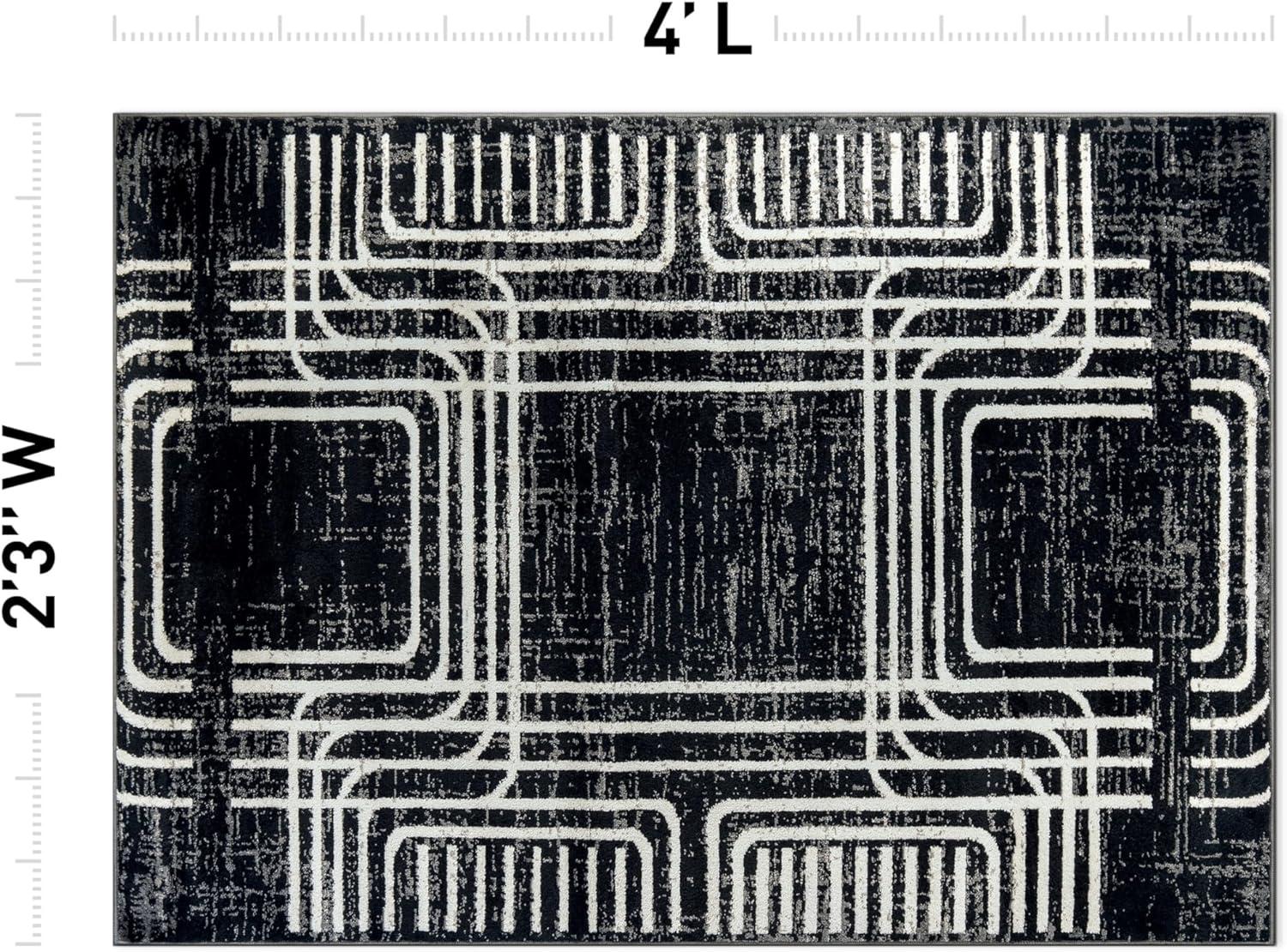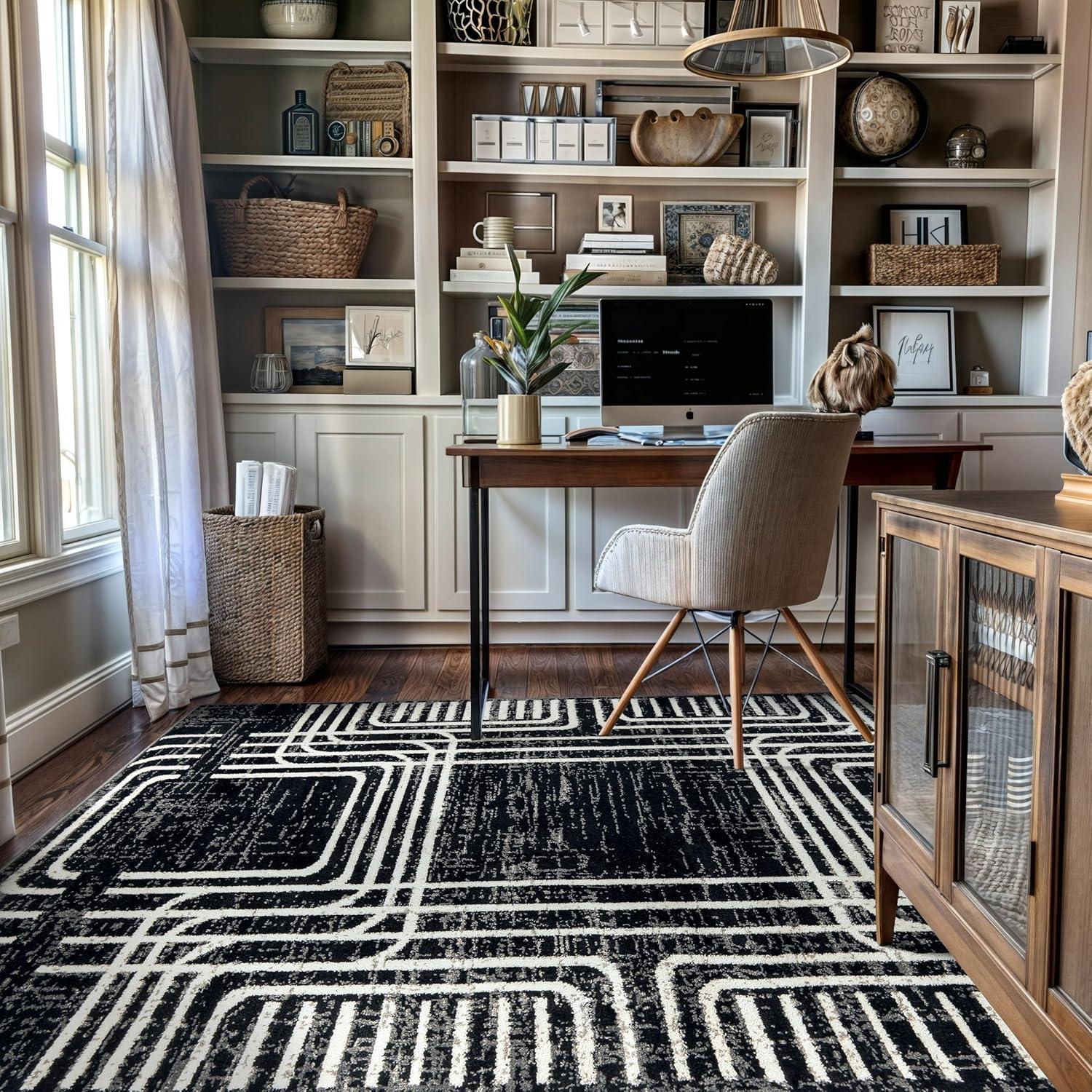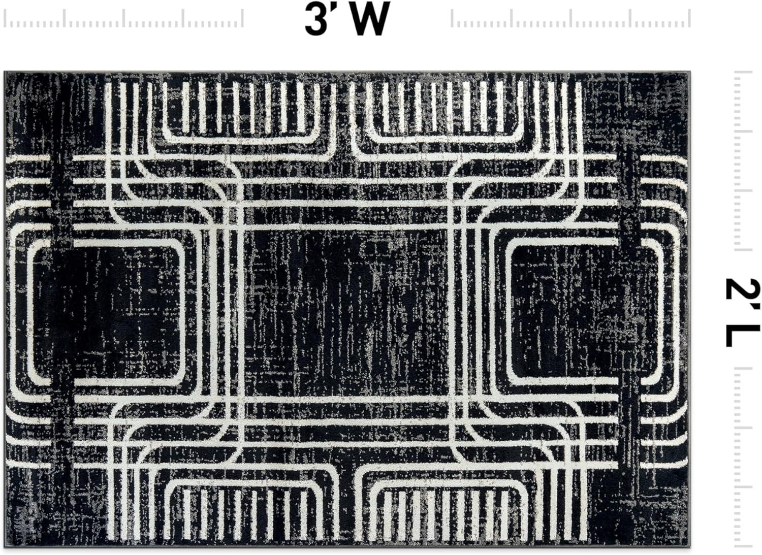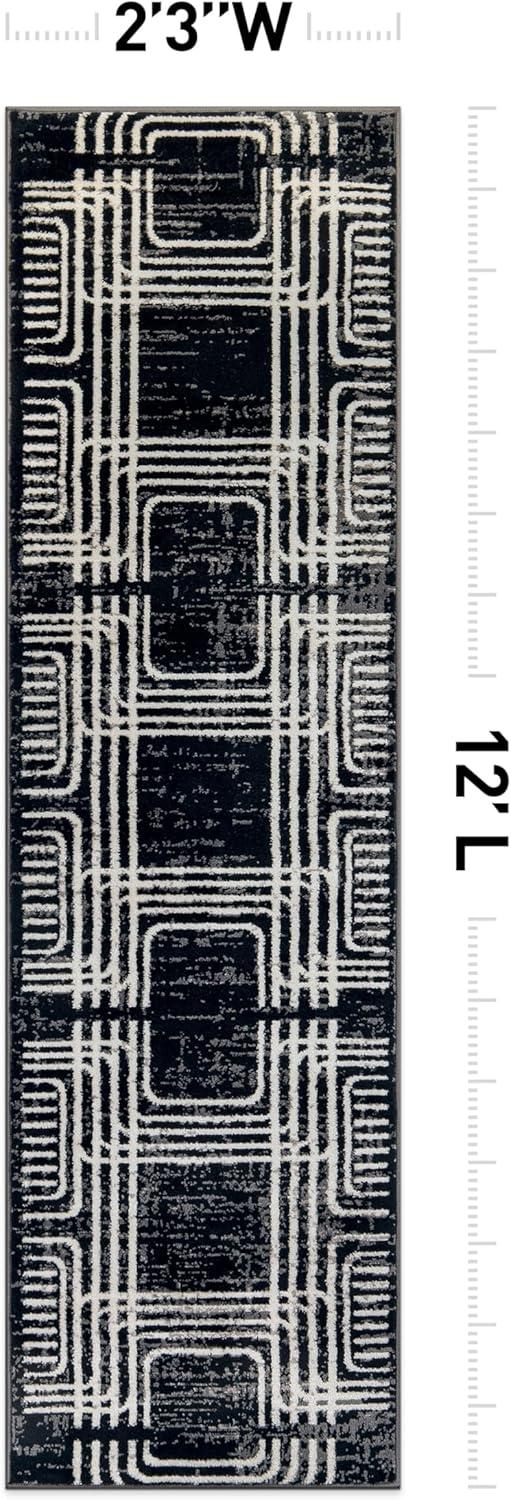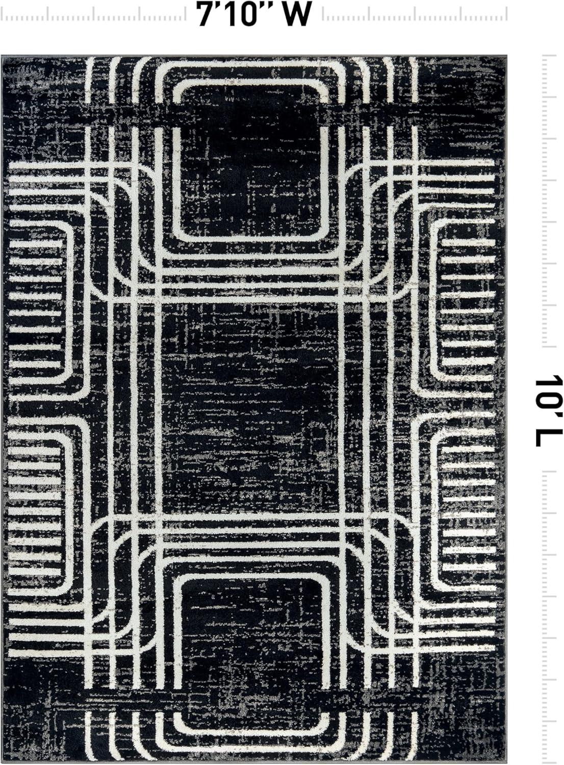 Enhance your décor with this modern geometric rug, designed to add structure and bold contrast to your space. The black and ivory color palette complements minimalist, contemporary, and modern interiors. Built for durability, it features a 0.39-inch pile height, making it easy to clean and perfect for busy households. The stain-resistant, no-shedding fibers ensure long-lasting beauty in any room.