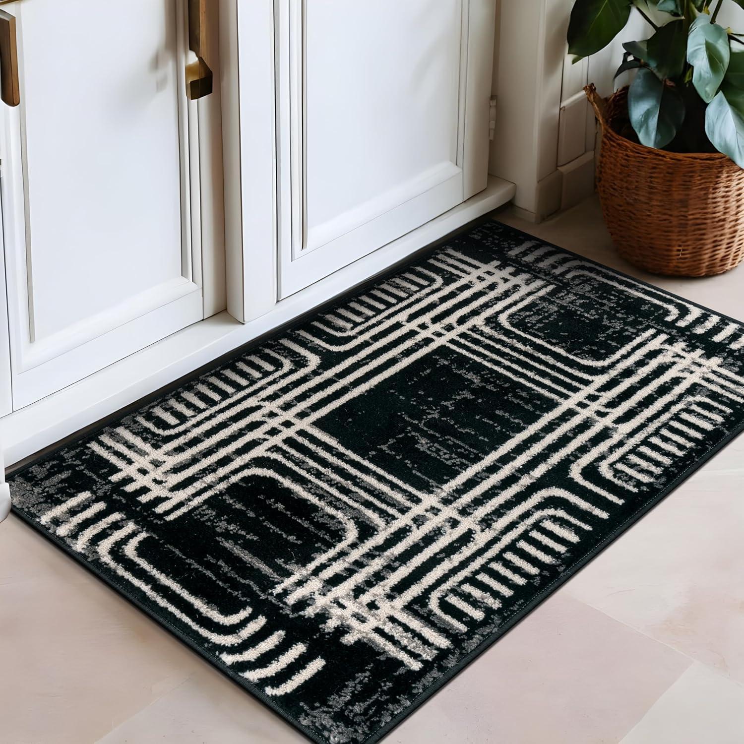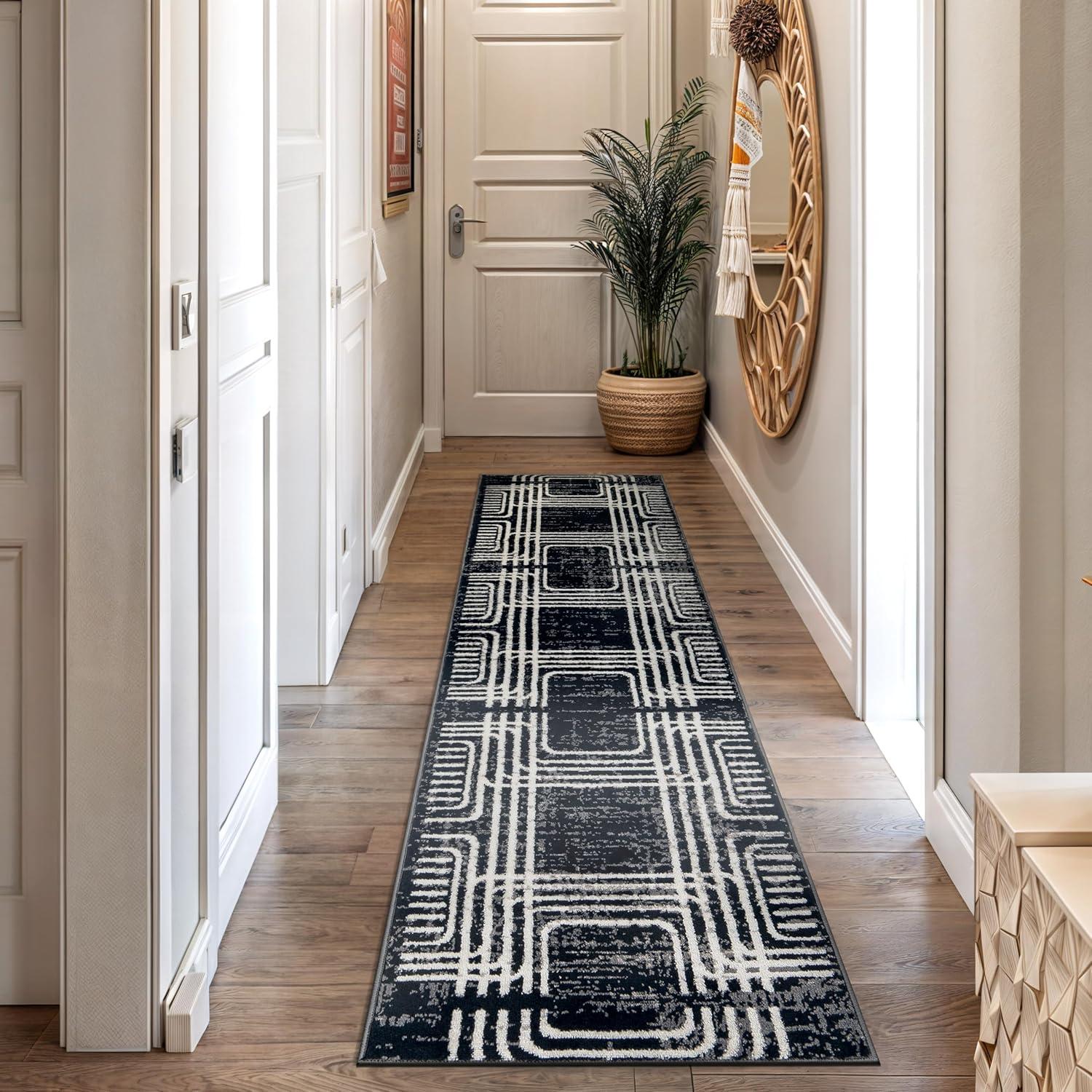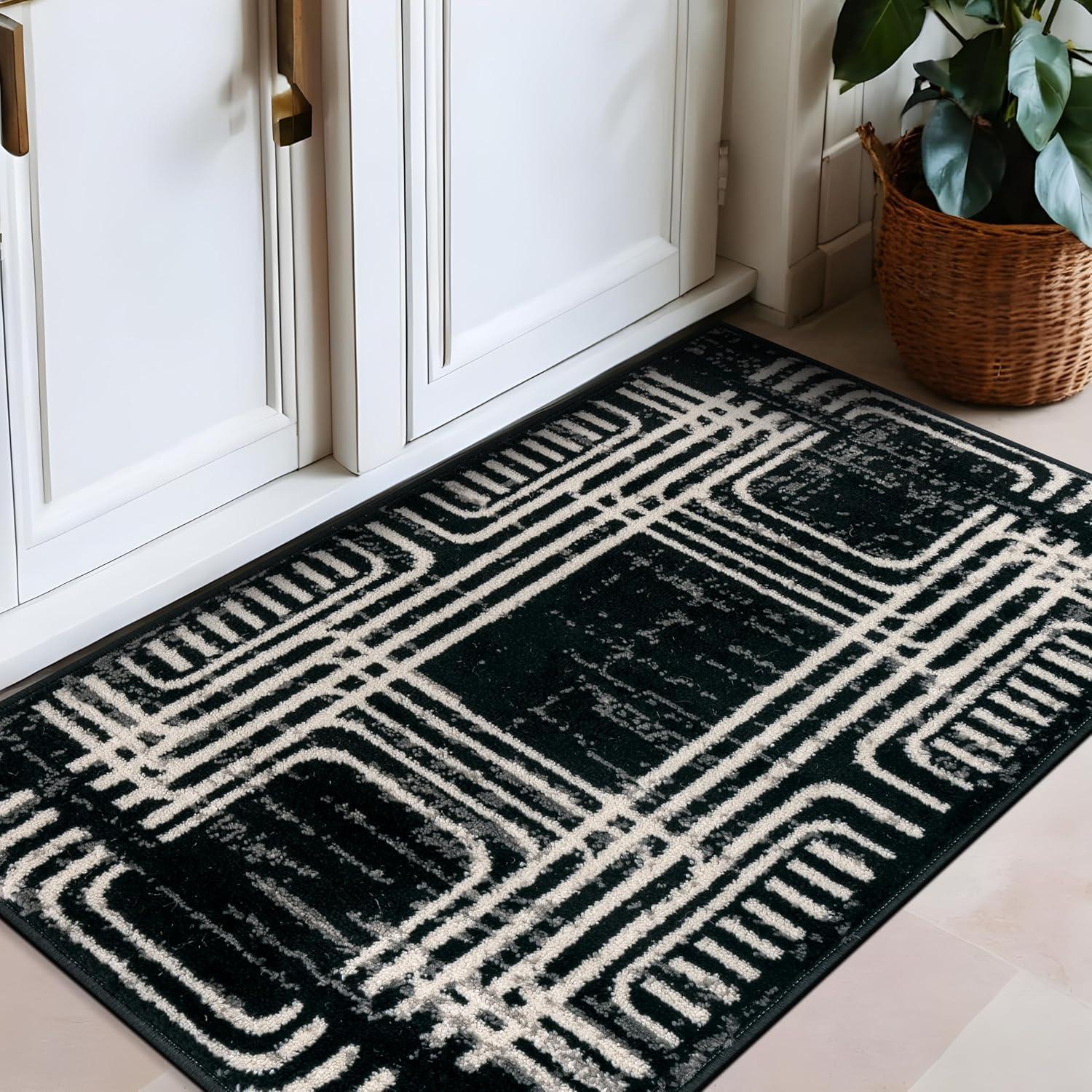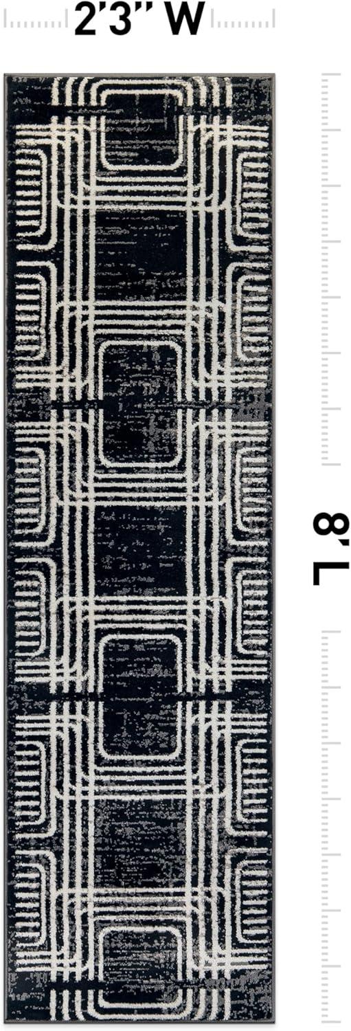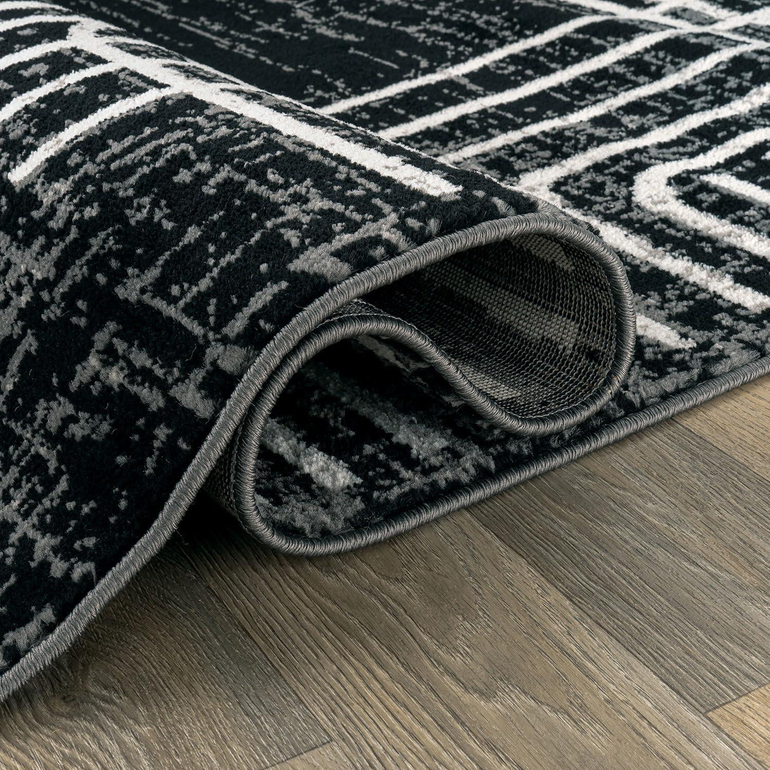 Enhance your décor with this modern geometric rug, designed to add structure and bold contrast to your space. The black and ivory color palette complements minimalist, contemporary, and modern interiors. Built for durability, it features a 0.39-inch pile height, making it easy to clean and perfect for busy households. The stain-resistant, no-shedding fibers ensure long-lasting beauty in any room.