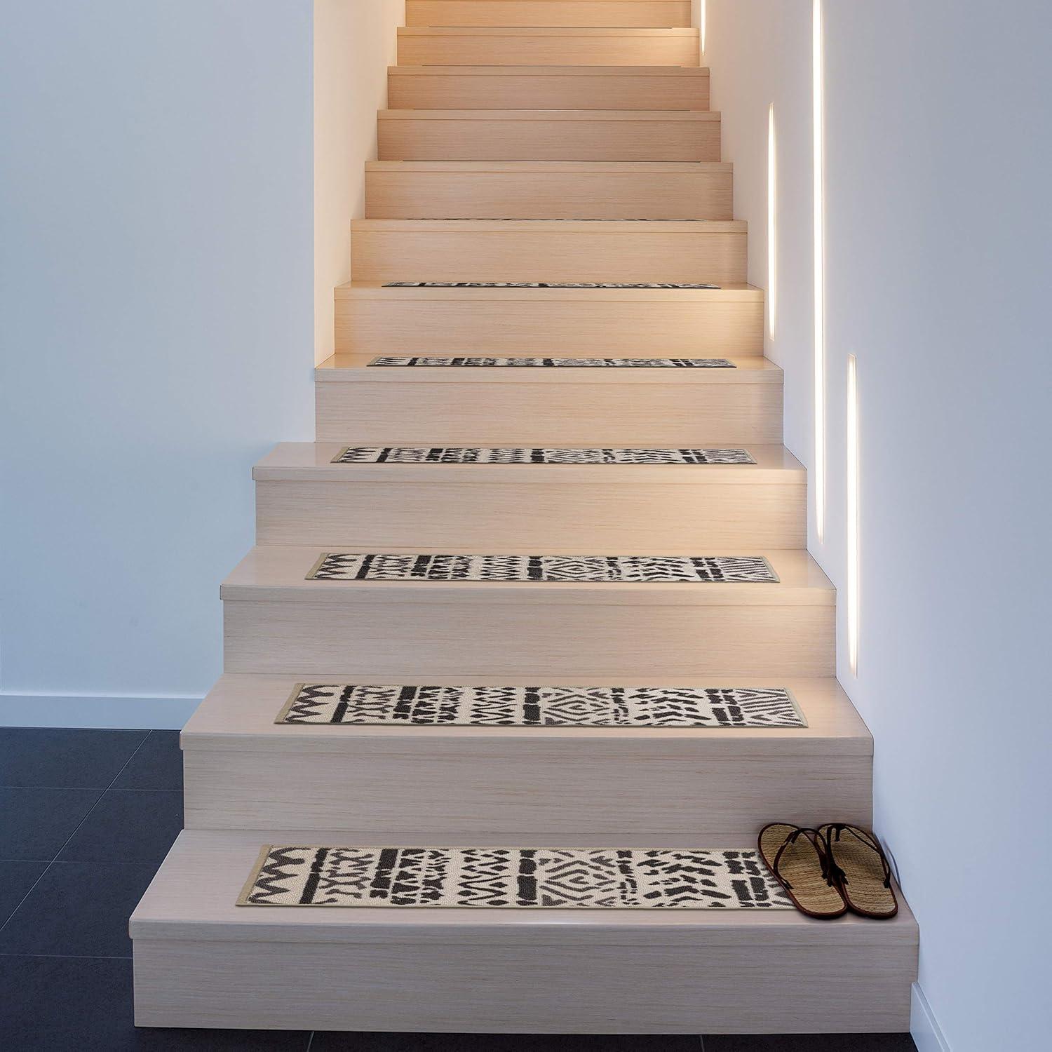 Enrich your stairs with these stunning, yet practical and decorative stair treads. The bohemian tribal design adds interest and style to every step. The rubber backing provides additional safety for climbing kids and pets. At 26 inches x 8. 6 inches, These machine washable treads are ideally sized for the majority of staircases.Features: Rubber Backed,Stain Resistant