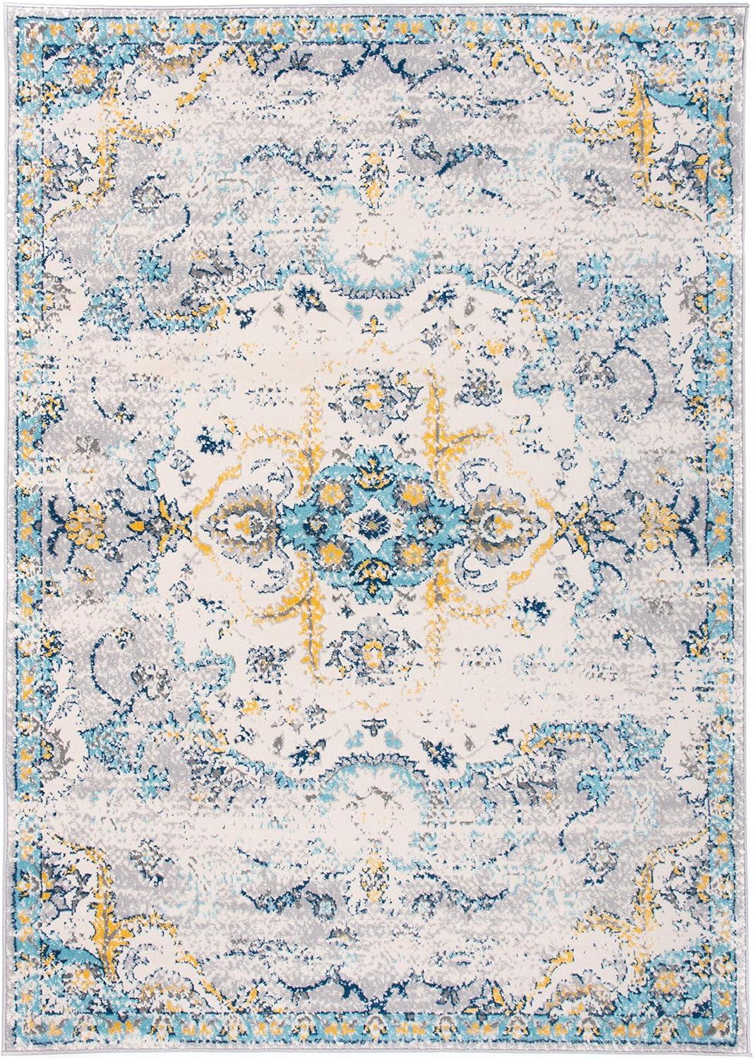 Rugshop Bohemian Distressed Design Area Rug 5′ x 7′ Blue(5′ x 7′ (Rectangular))