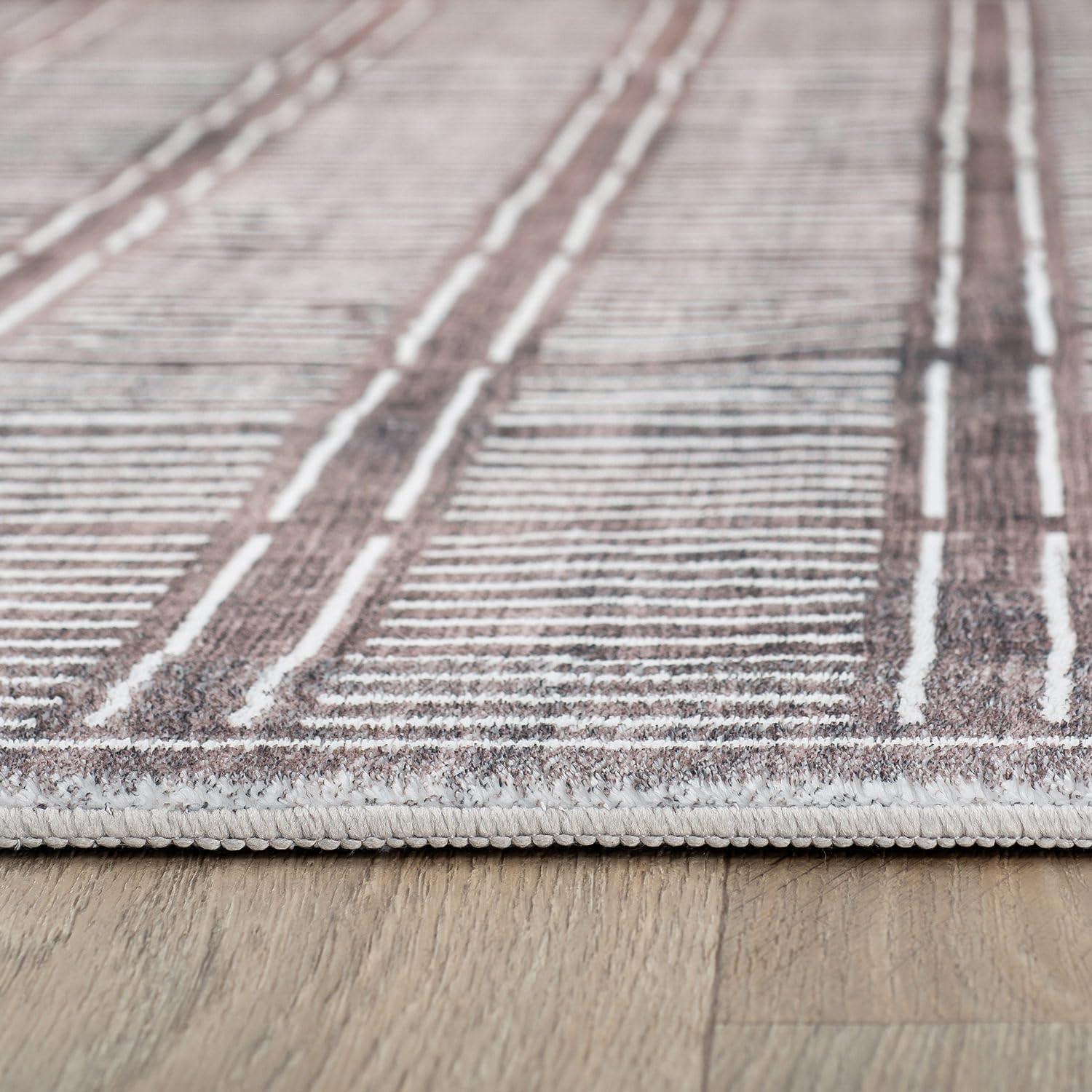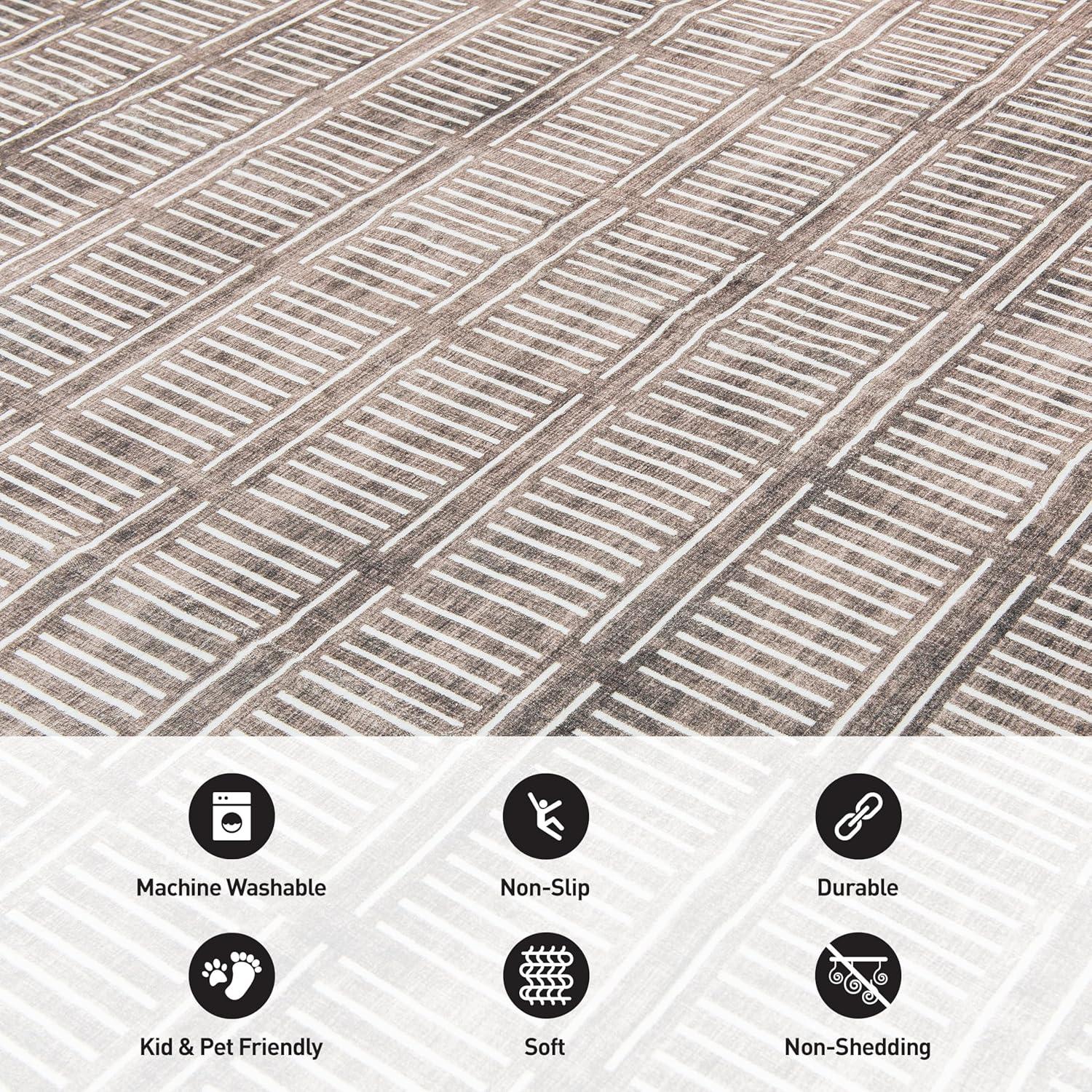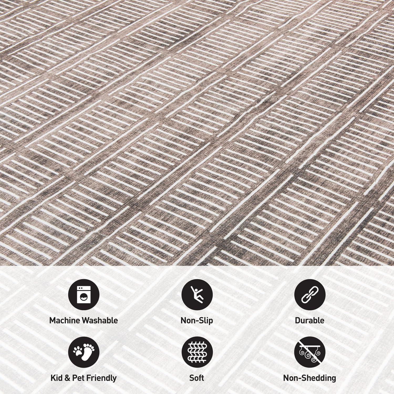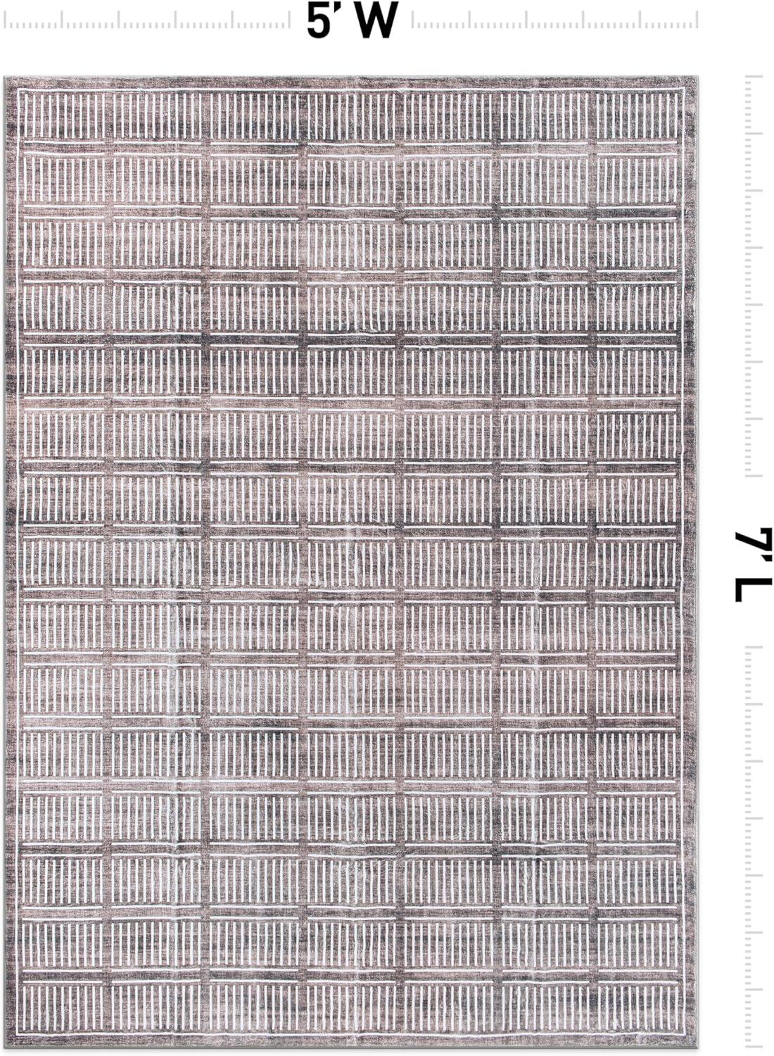 Rugshop Bohemian Stripe Lines Washable Non Slip Area Rug 5′ x 7′ Ivory(Brown)