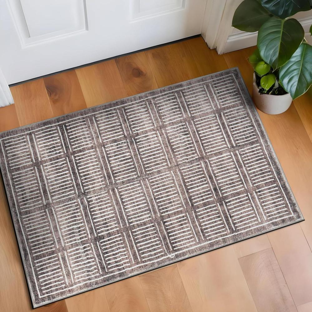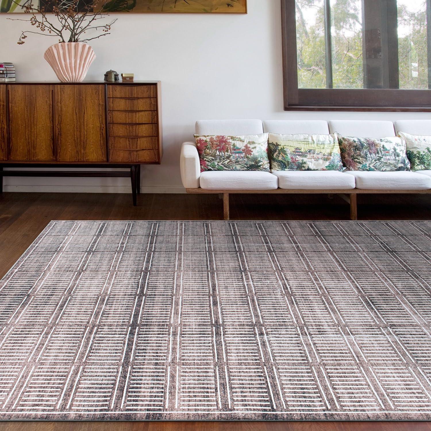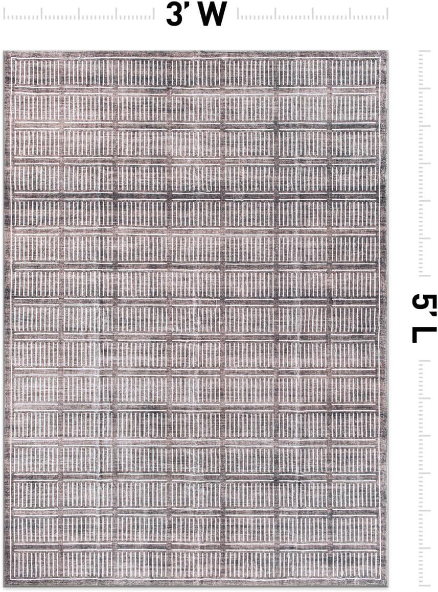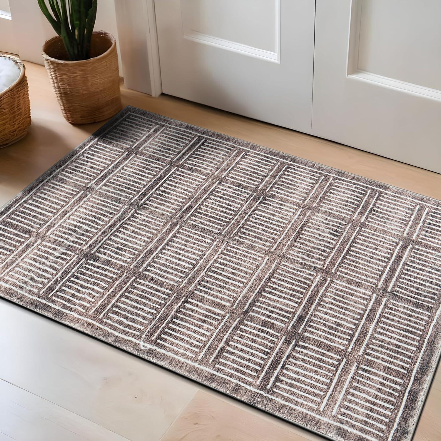 Rugshop Bohemian Stripe Lines Washable Non Slip Area Rug 5′ x 7′ Ivory(Brown)