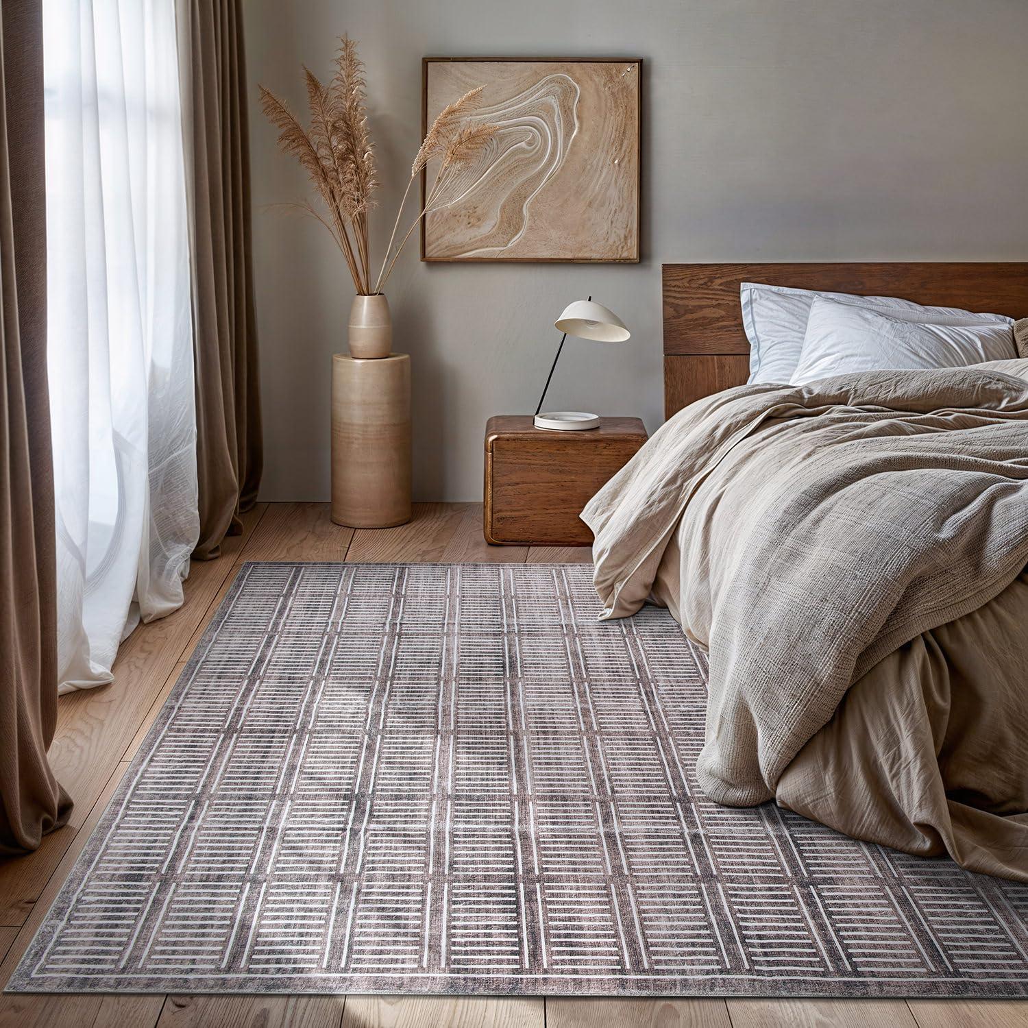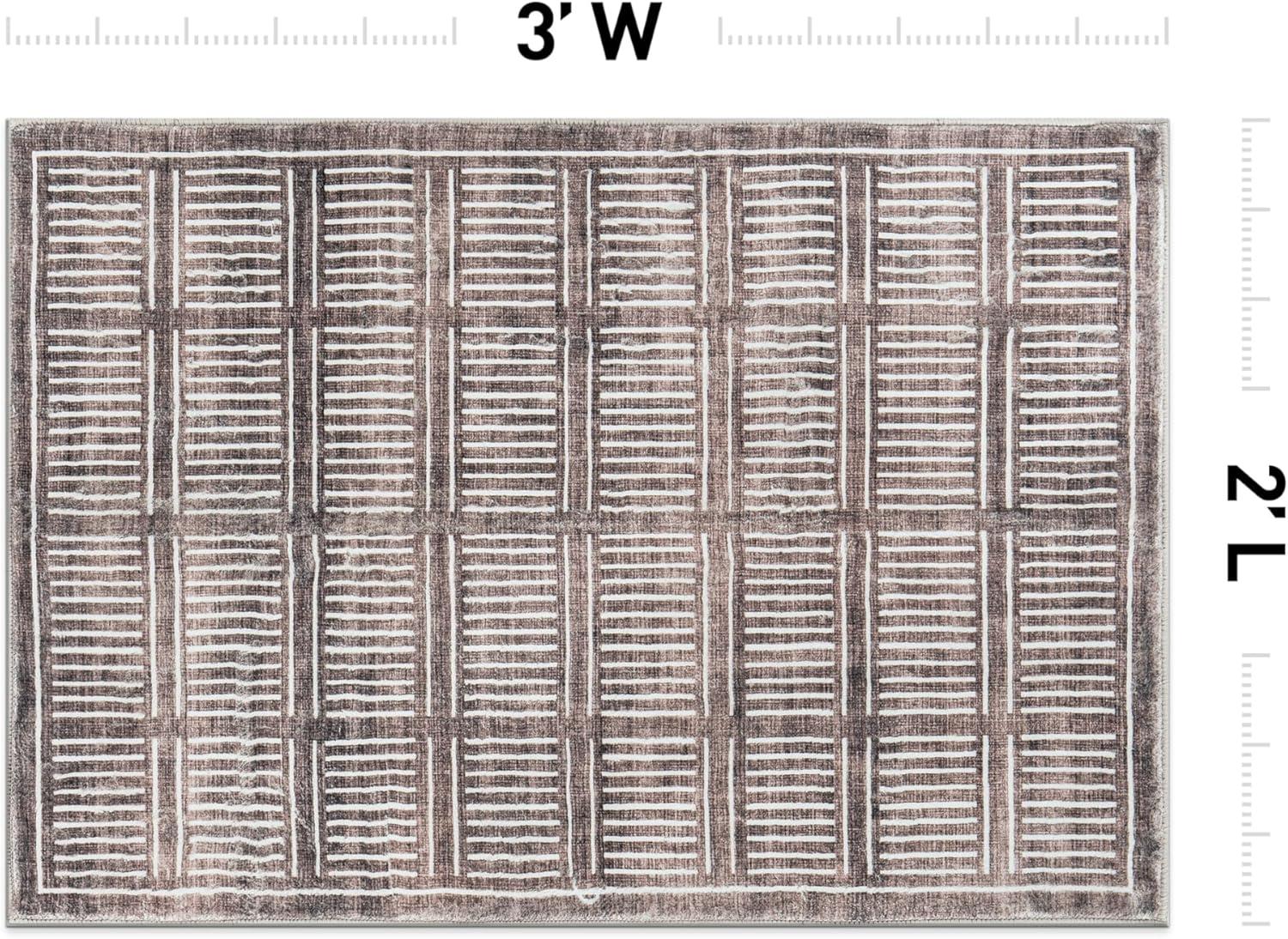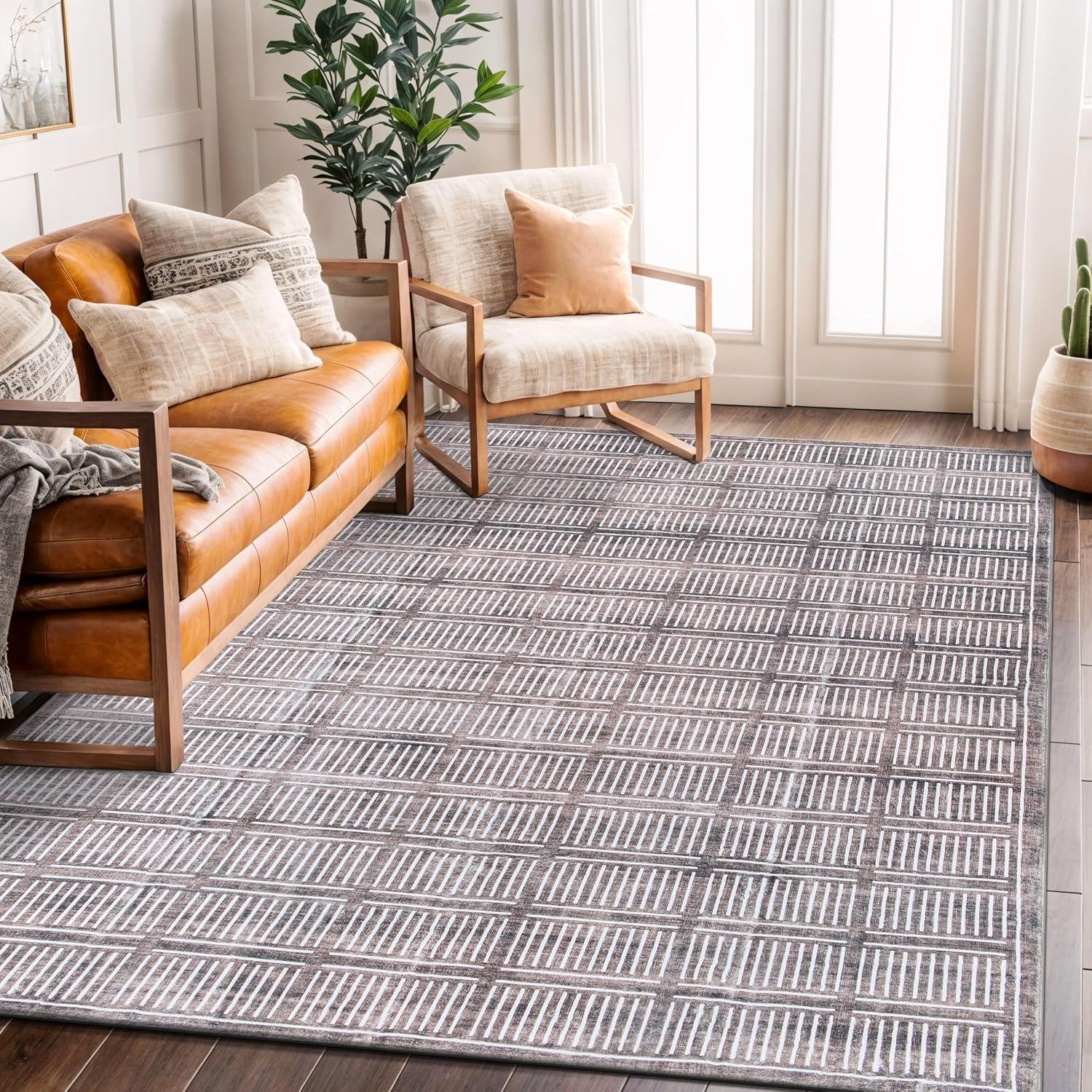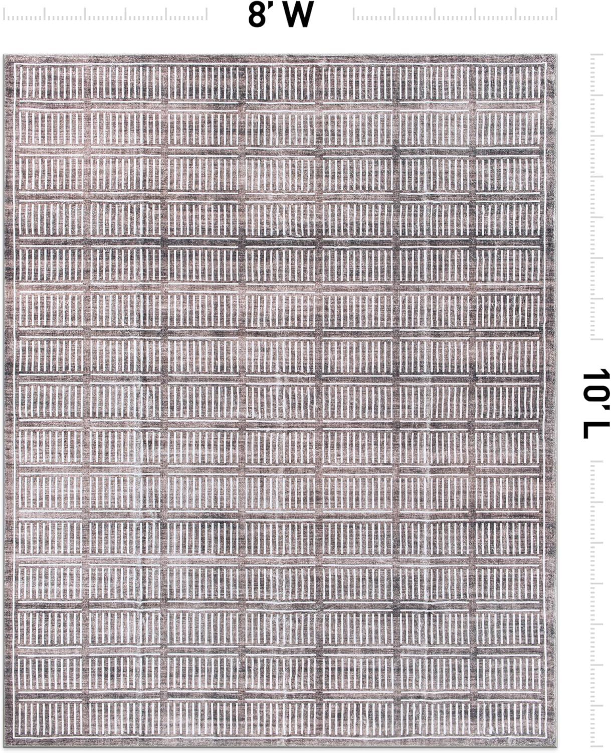 Rugshop Bohemian Stripe Lines Washable Non Slip Area Rug 5′ x 7′ Ivory(Brown)