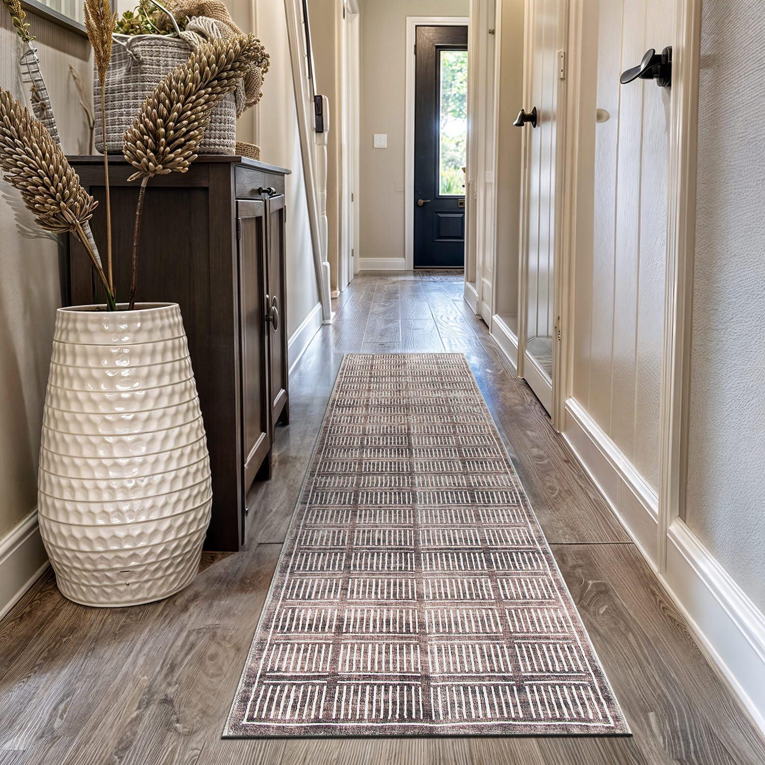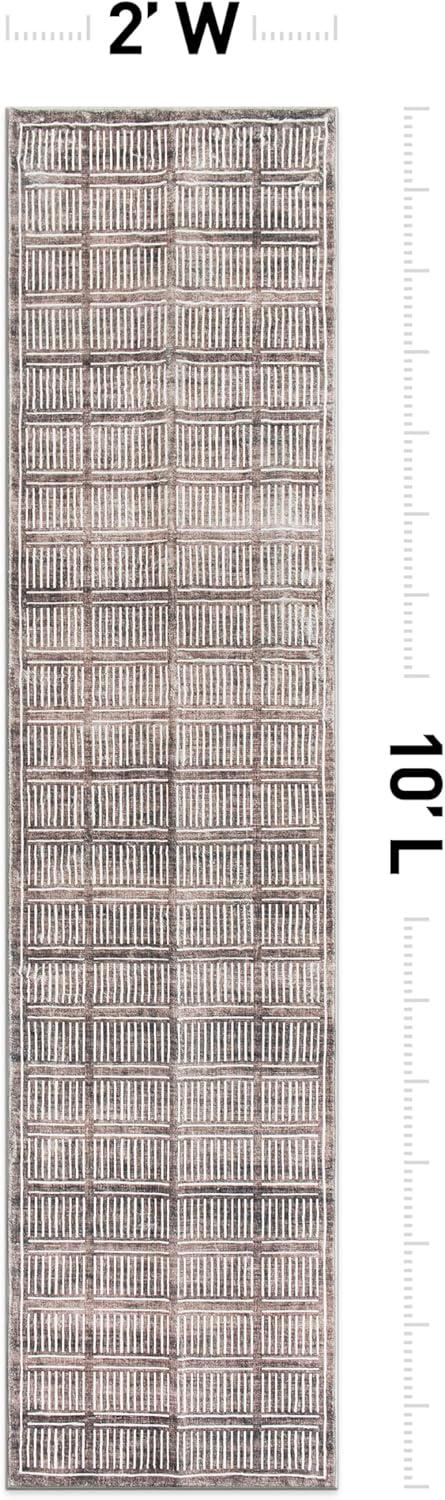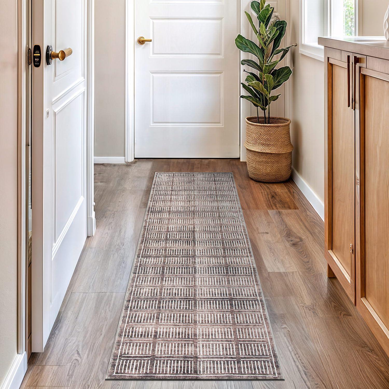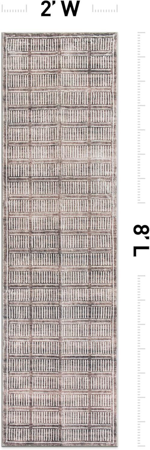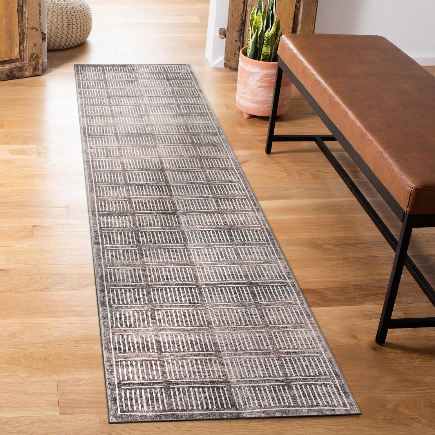Rugshop Bohemian Stripe Lines Washable Non Slip Area Rug 5′ x 7′ Ivory(Brown)