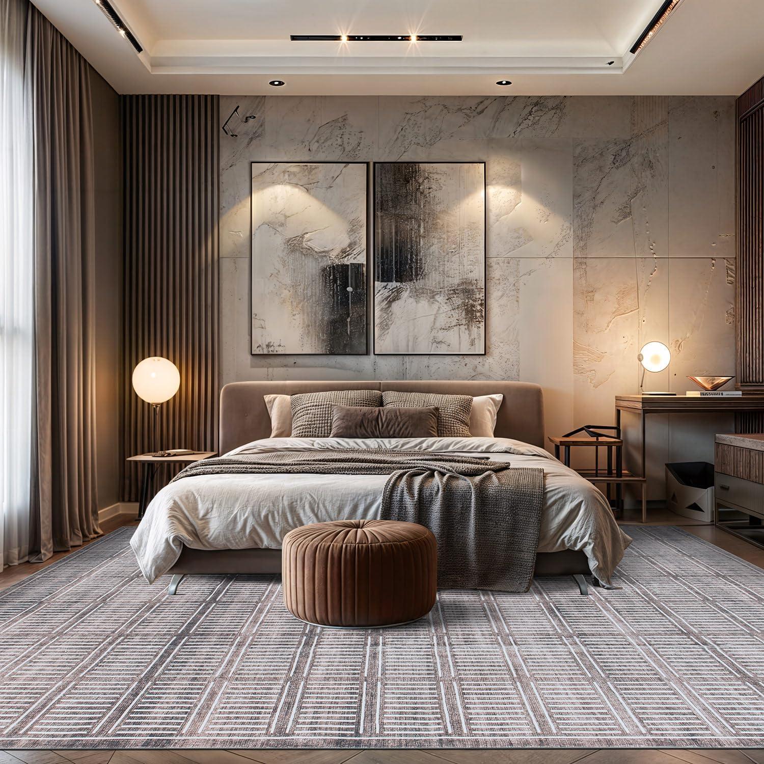 Step into modern sophistication with this geometric area rug, where crisp lines and bold contrasts create a visual statement. Crafted from plush yet durable polyester fibers, it delivers a soft, cozy feel underfoot while being built to withstand the demands of a busy home. With its machine-washable convenience and non-slip backing, this rug is a perfect blend of style and function.