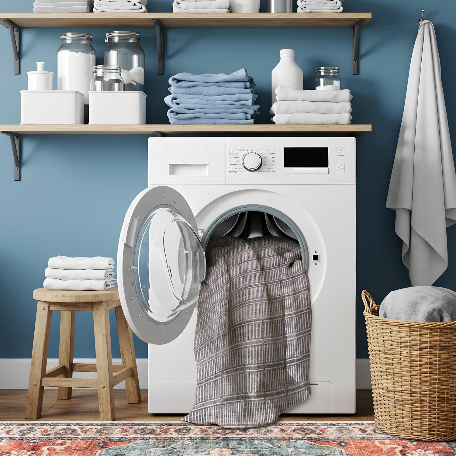 Machine Washable for Easy Care: No need for spot cleaning , simply place it in the washing machine for a quick refresh! Made from durable synthetic polyester, it stays soft and retains its shape. Small sizes fit in a home washer, while larger rugs may require a commercial machine.