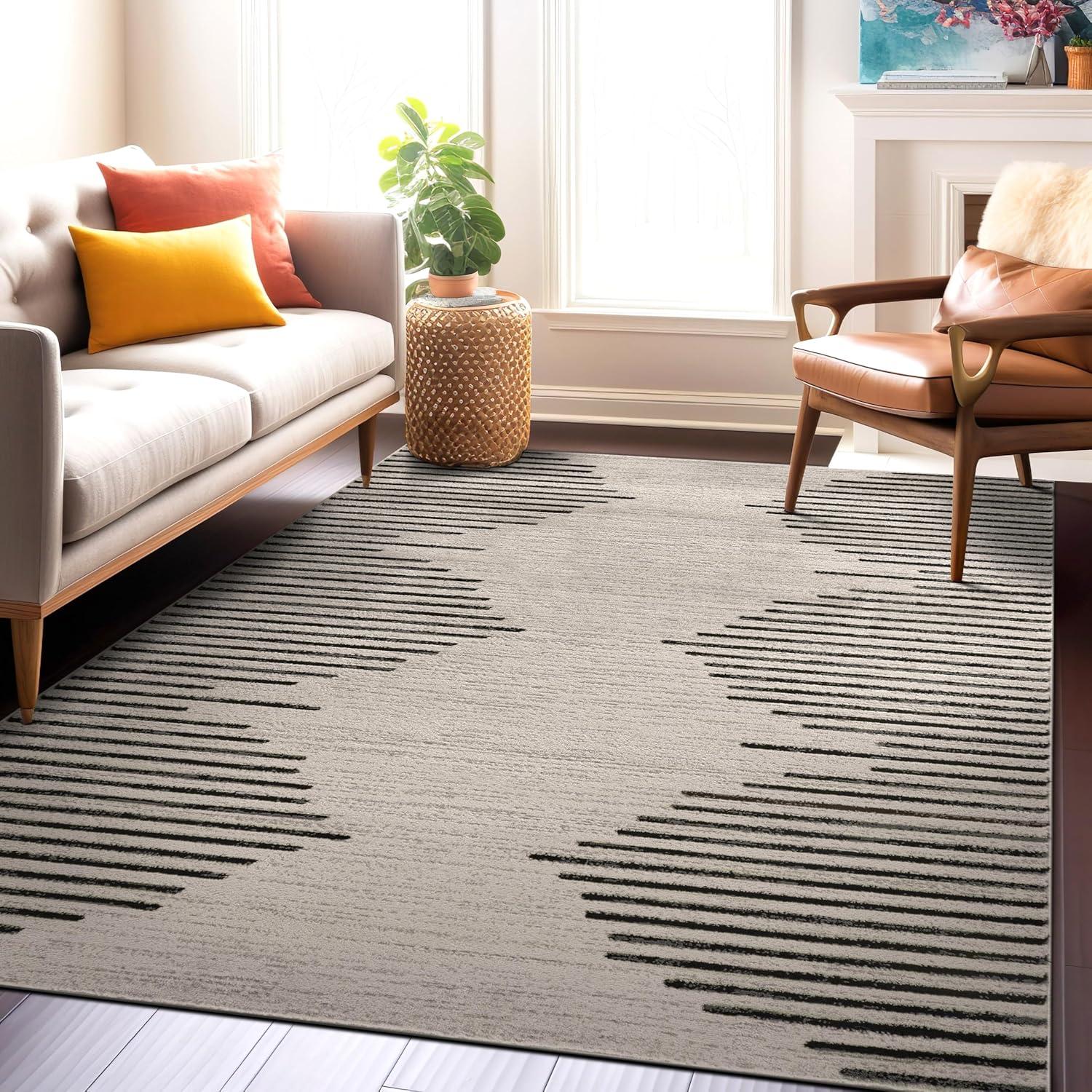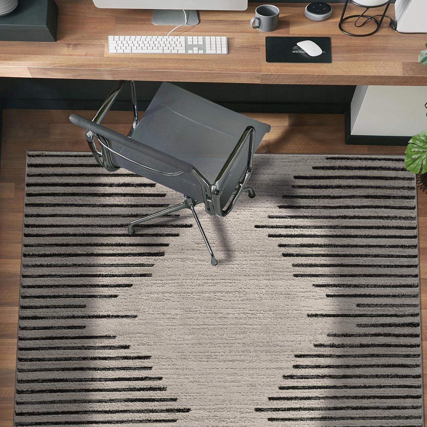Rugshop Bohemian Stripe Stain Resistant High Traffic Living Room Kitchen Bedroom Dining Home Office Area Rug 5′ x 7′ Cream