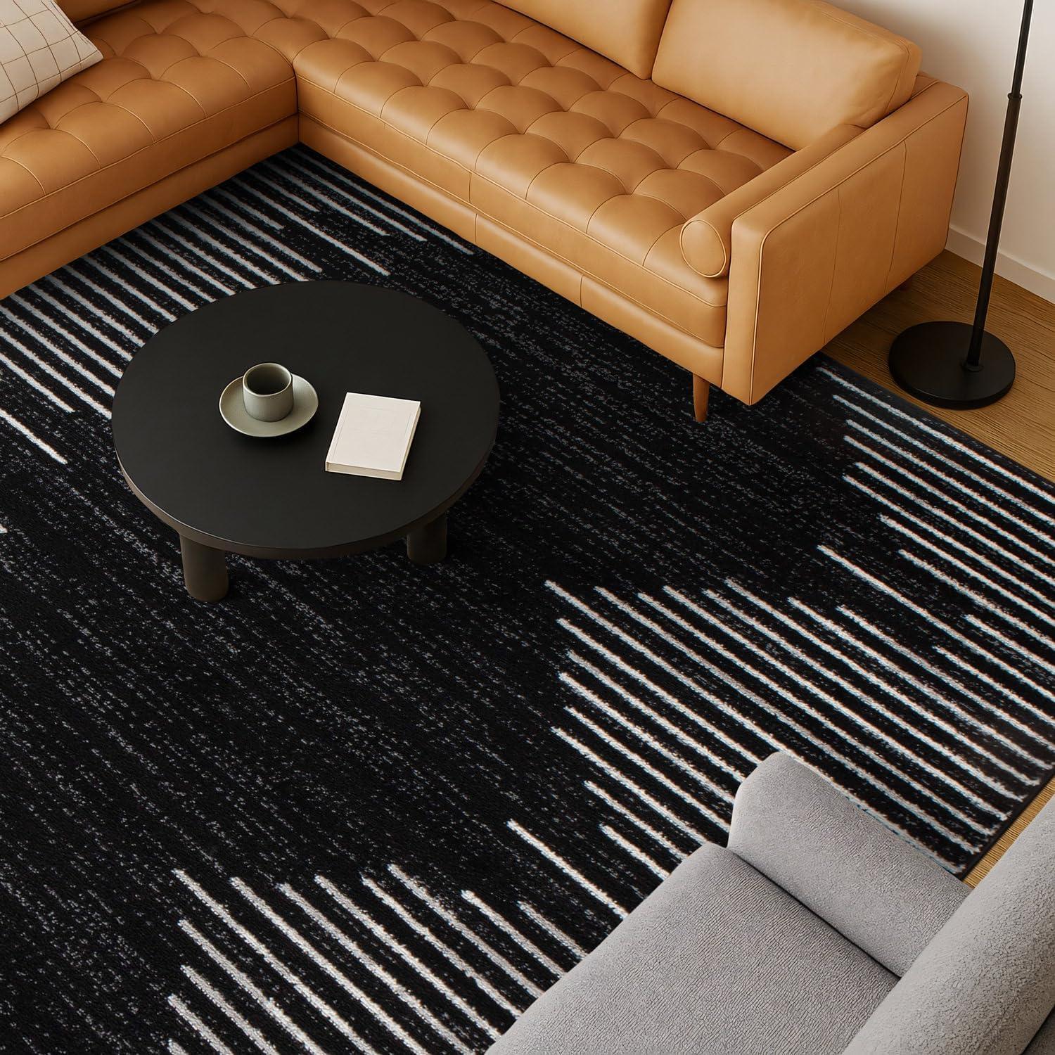 Rugshop Bohemian Stripe Stain Resistant High Traffic Living Room Kitchen Bedroom Dining Home Office Area Rug 8′ x 12′ Black