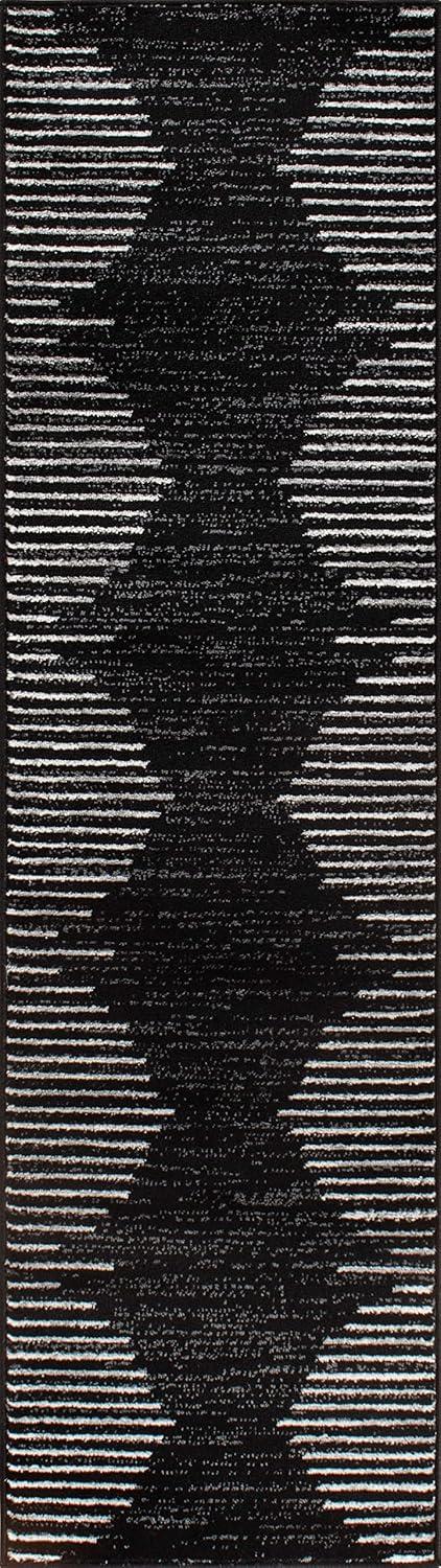 Rugshop Bohemian Stripe Stain Resistant High Traffic Living Room Kitchen Bedroom Dining Home Office Runner Rug 2′ x 7′ Black