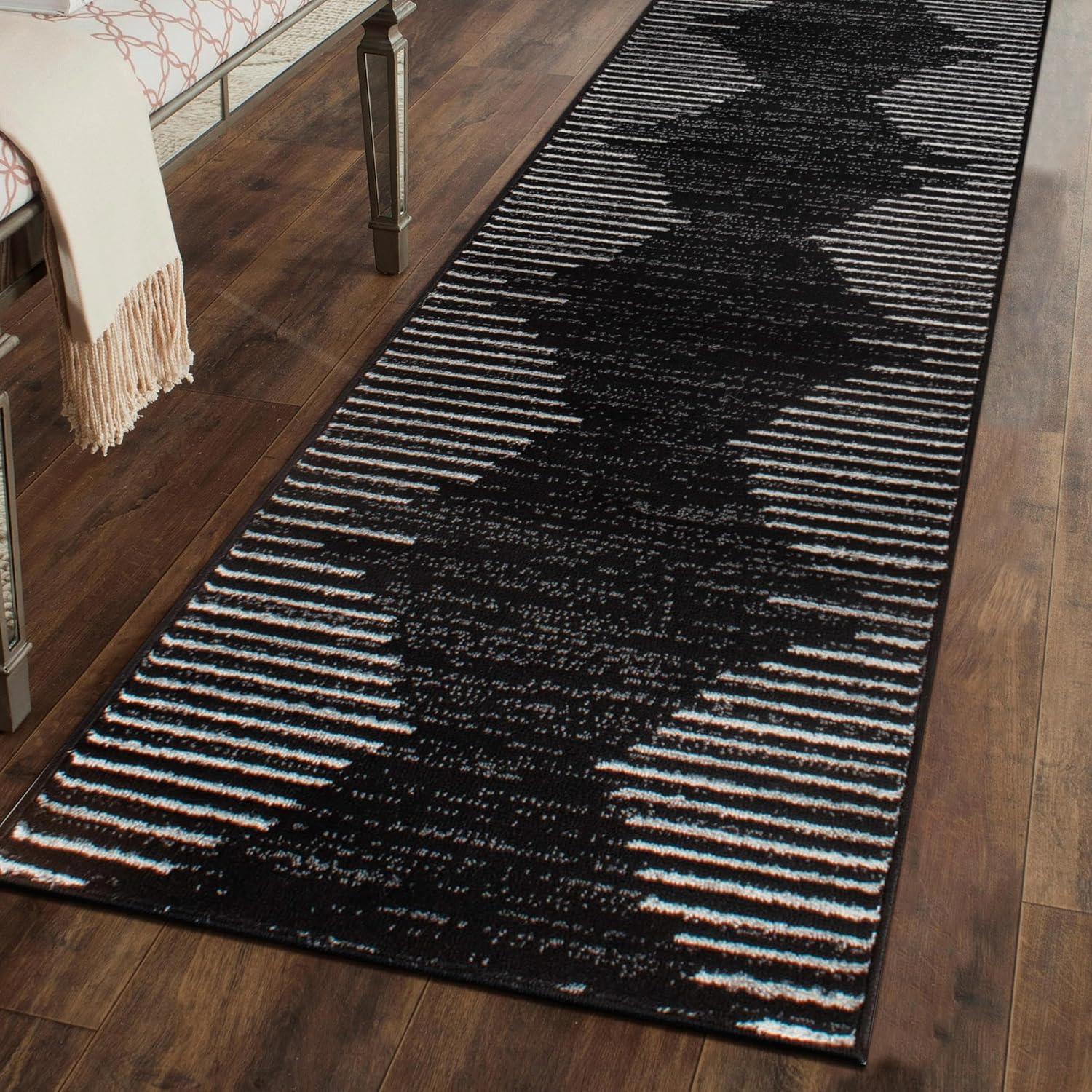 Rugshop Bohemian Stripe Stain Resistant High Traffic Living Room Kitchen Bedroom Dining Home Office Runner Rug 2’7″ x 6′ Black