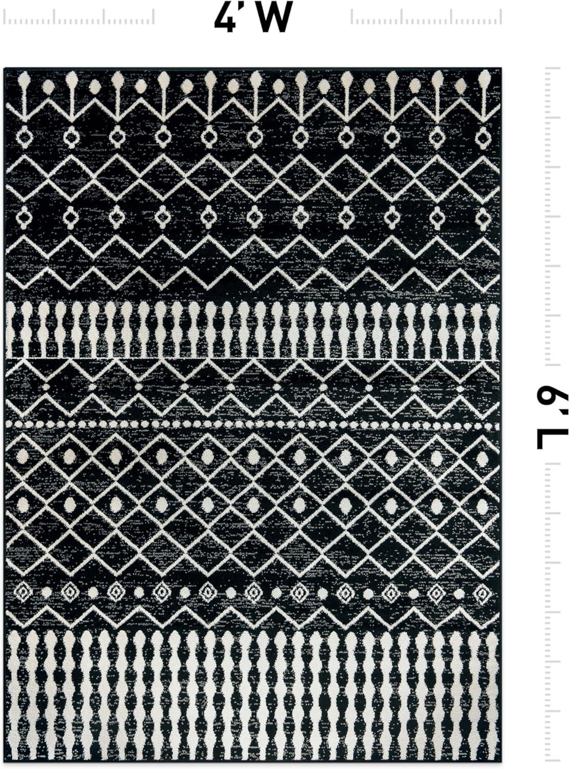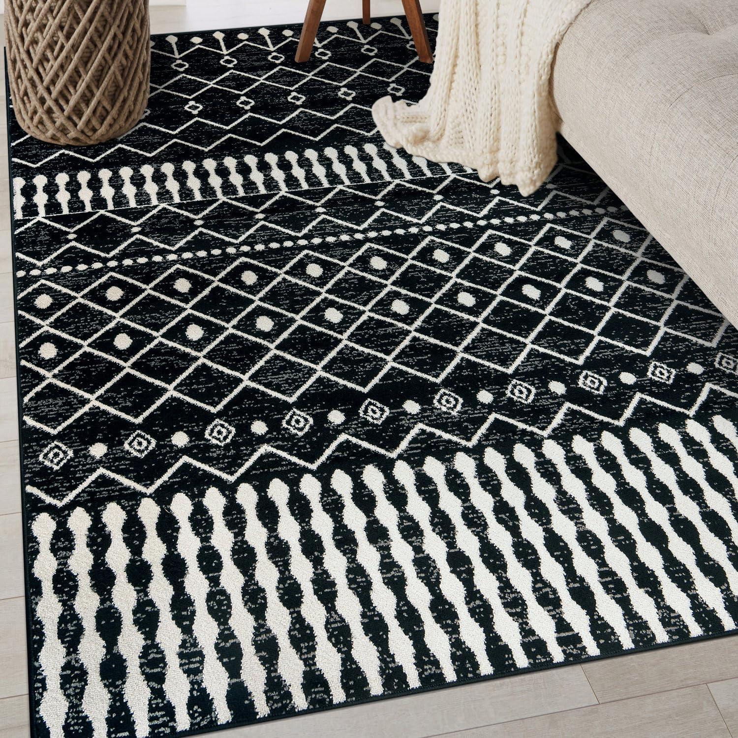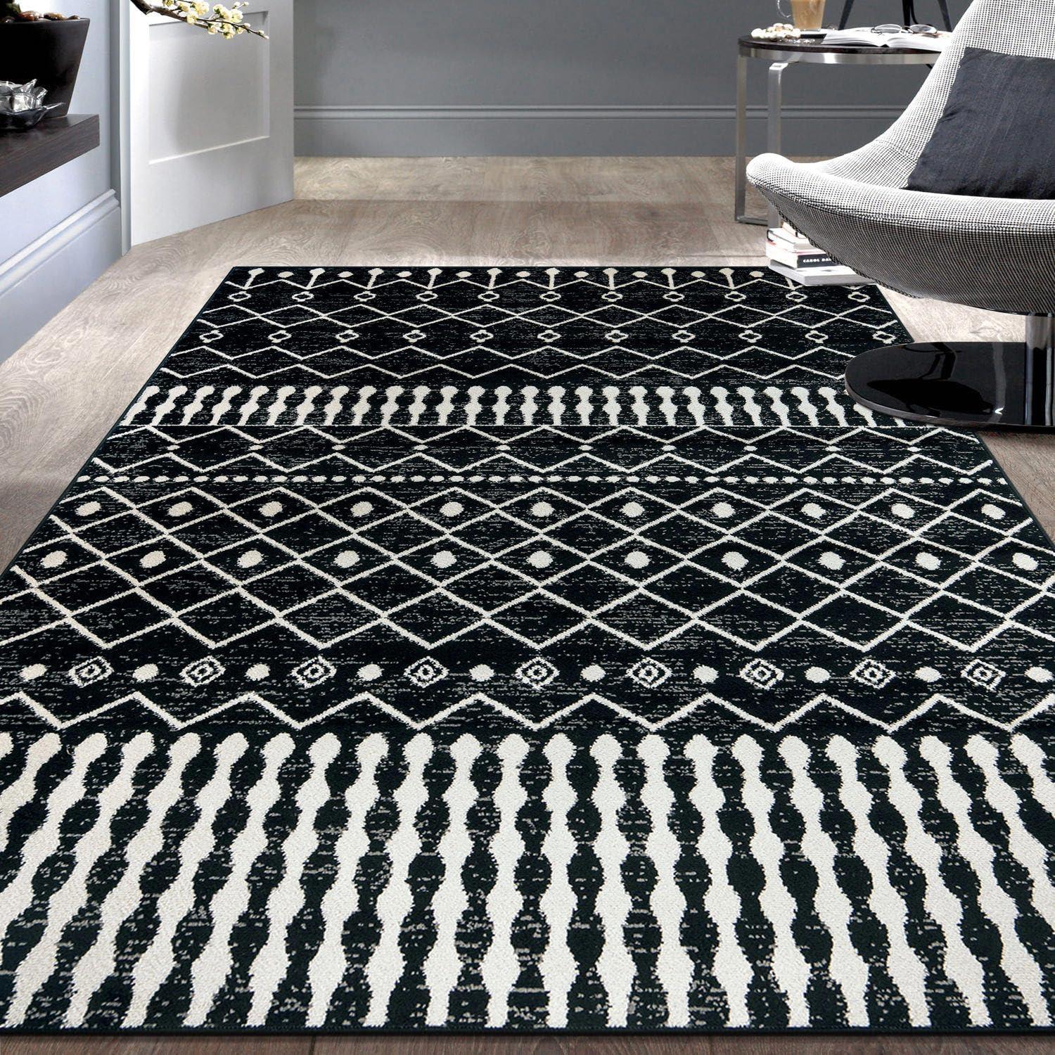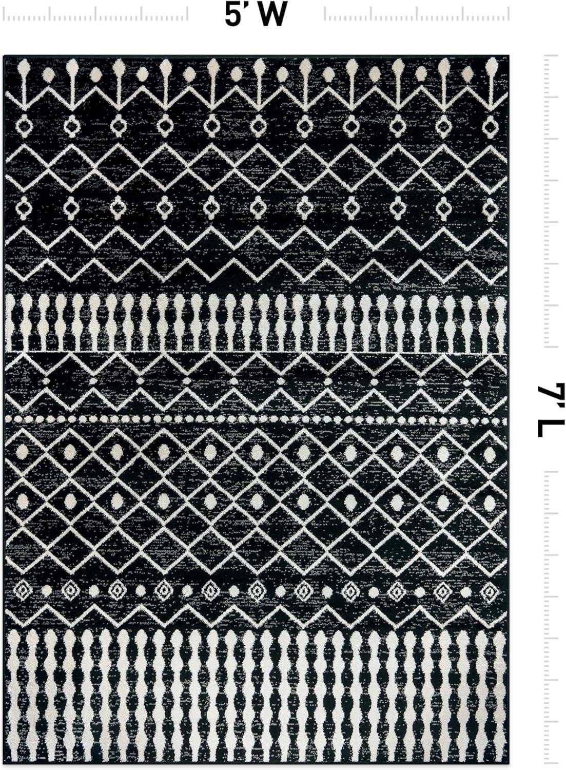 Rugshop Boho Black and White Tribal Area Rug – Geometric Diamond and Stripe Pattern Carpet for Living Room, Bedroom, or Entryway – Soft Modern Bohemian Floor Décor 5′ x 7′ Black(Black)