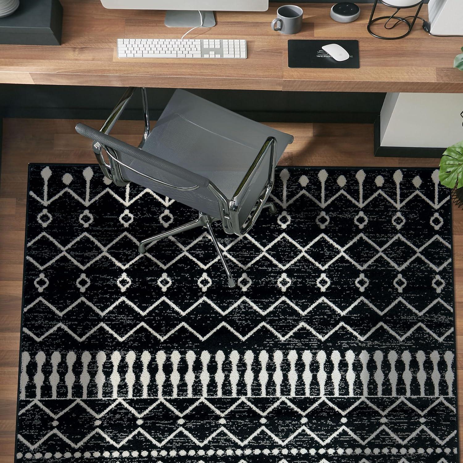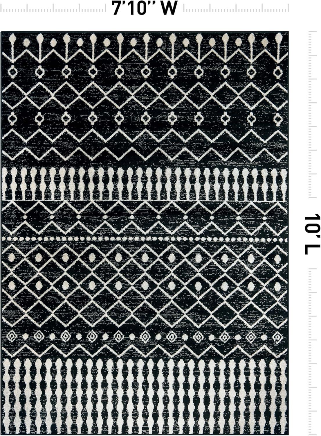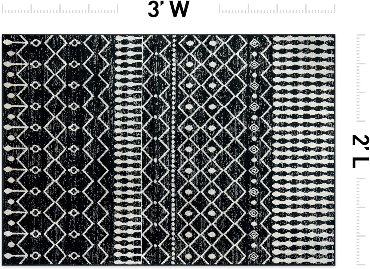 Rugshop Boho Black and White Tribal Area Rug – Geometric Diamond and Stripe Pattern Carpet for Living Room, Bedroom, or Entryway – Soft Modern Bohemian Floor Décor 5′ x 7′ Black(Black)