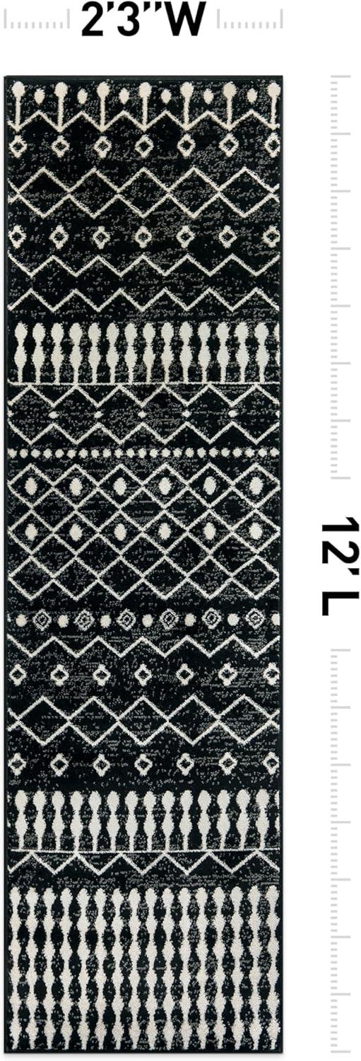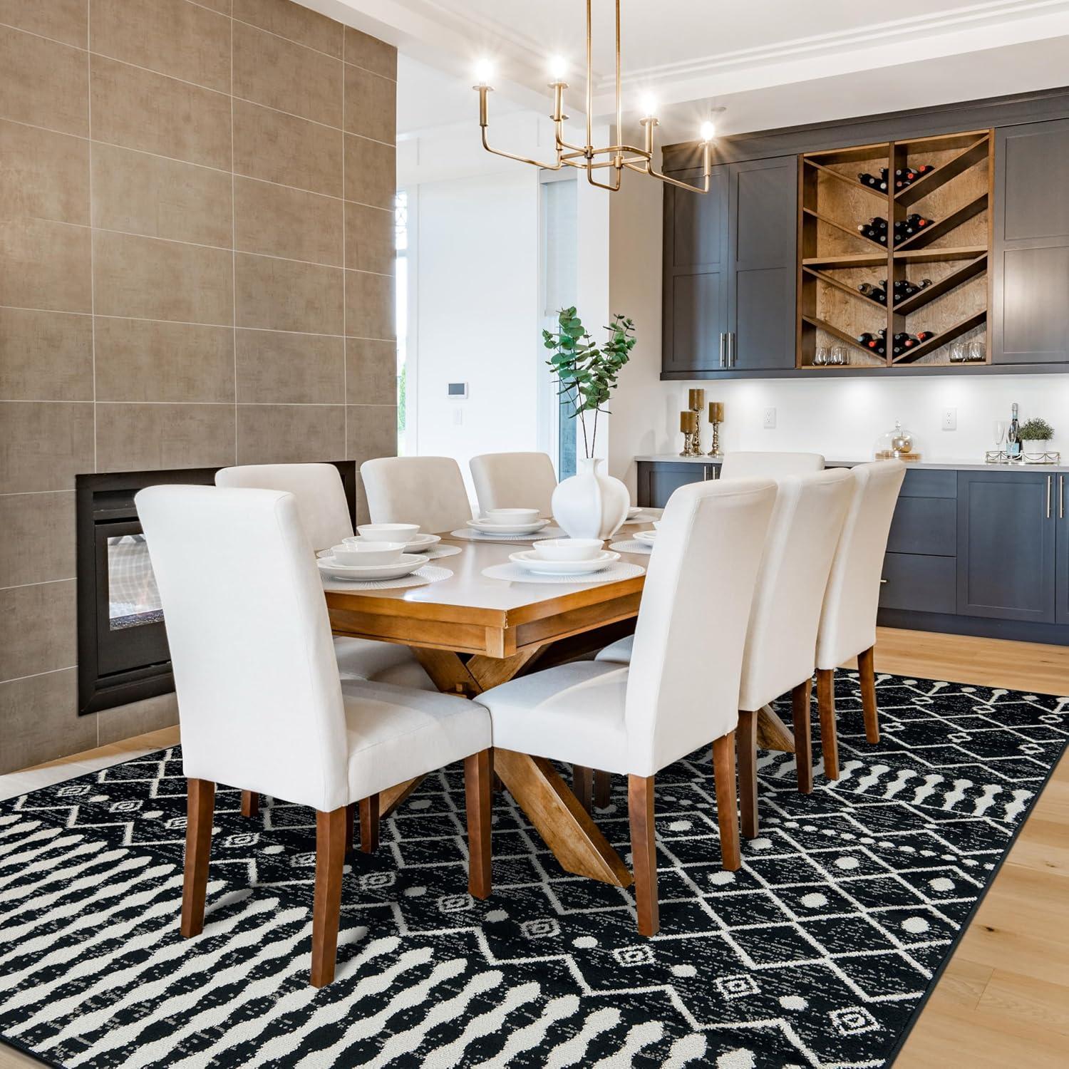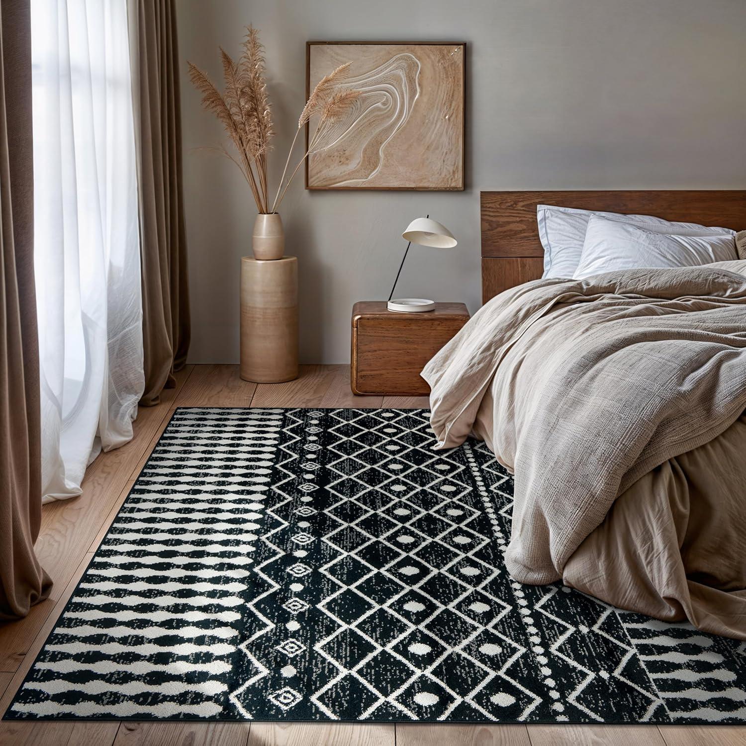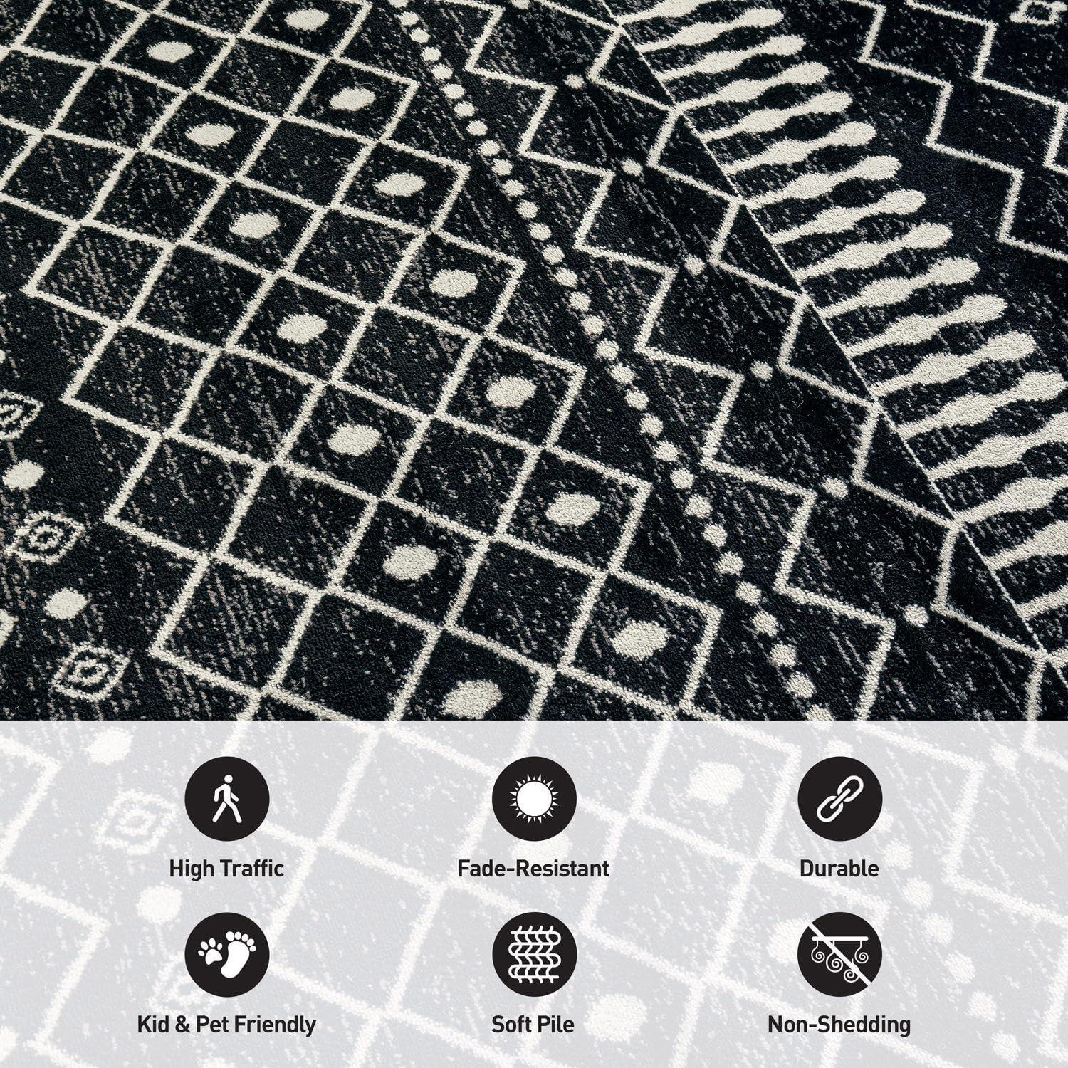 Rugshop Boho Black and White Tribal Area Rug – Geometric Diamond and Stripe Pattern Carpet for Living Room, Bedroom, or Entryway – Soft Modern Bohemian Floor Décor 5′ x 7′ Black(Black)