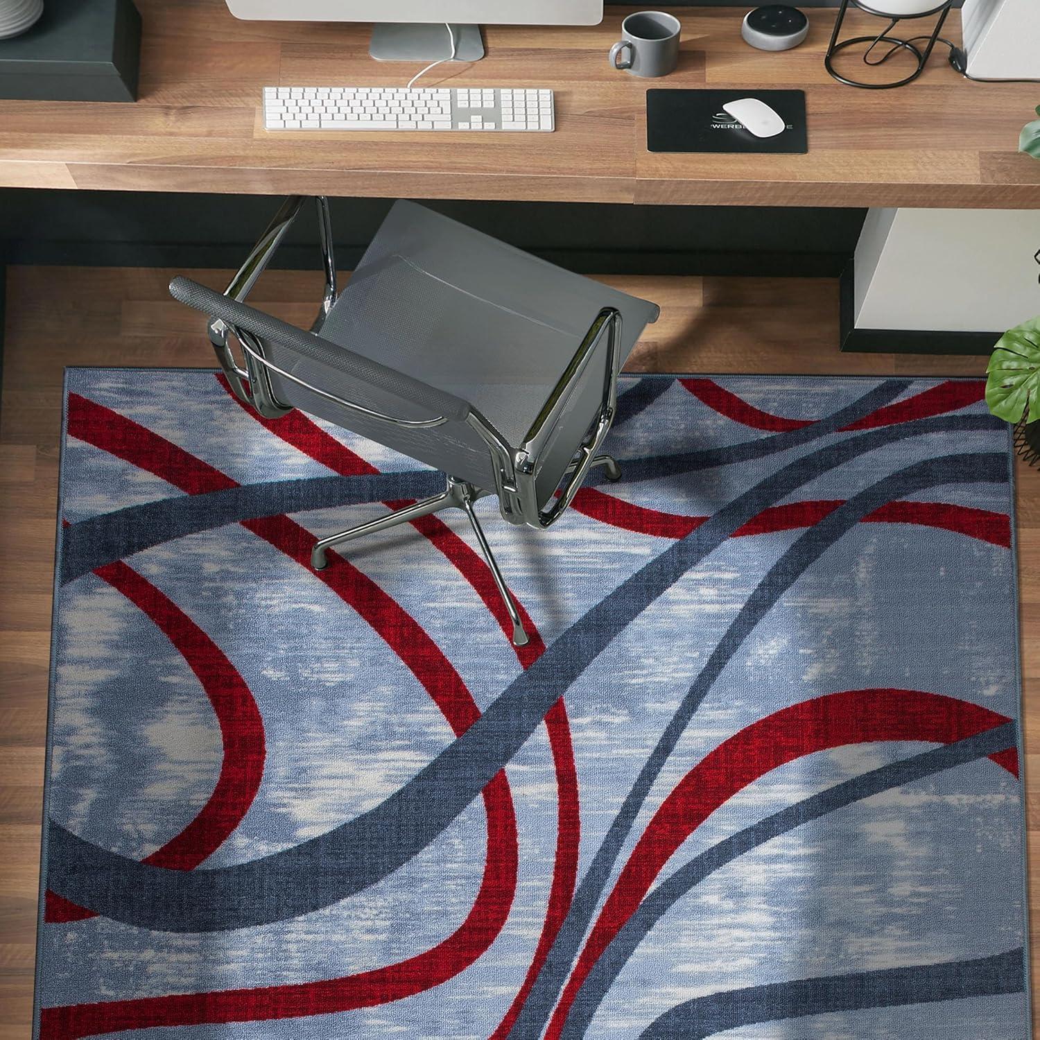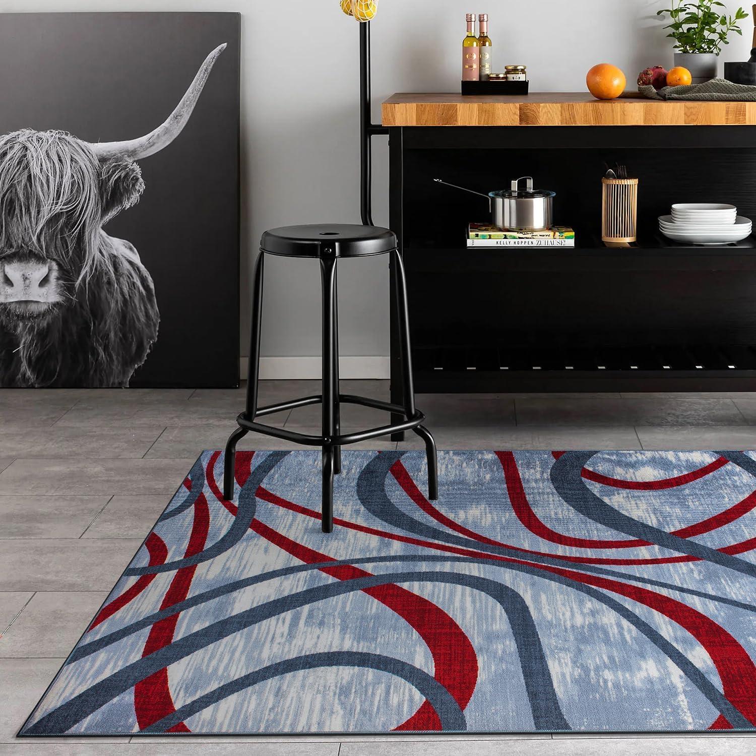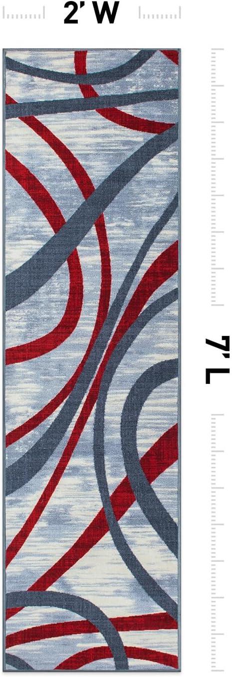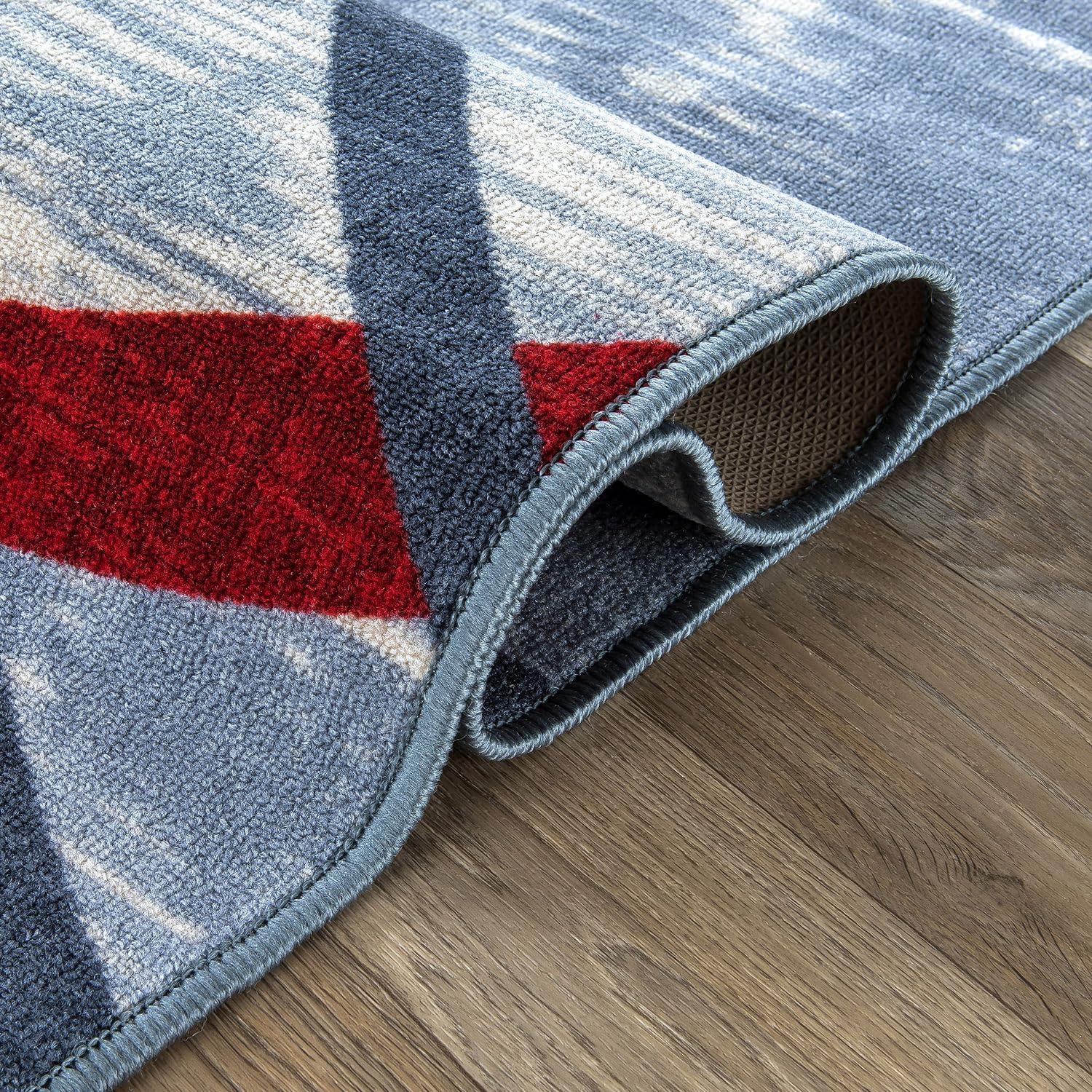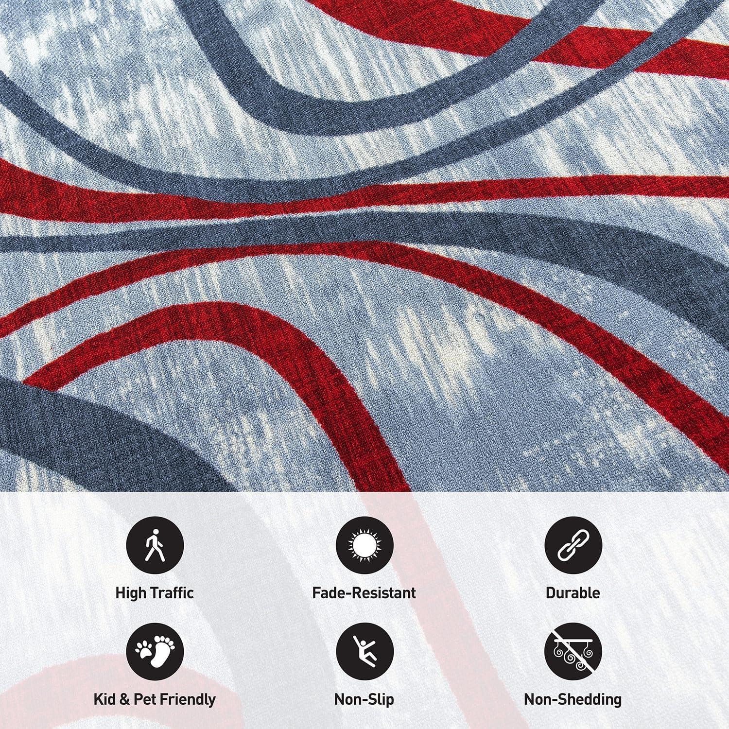 Rugshop Contemporary Distressed Abstract Lines High Traffic Living Room,Bedroom,Kitchen, Home Office Non Slip Area Rug 5′ x 7′ Blue(Red)