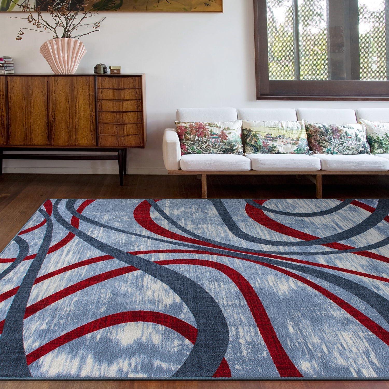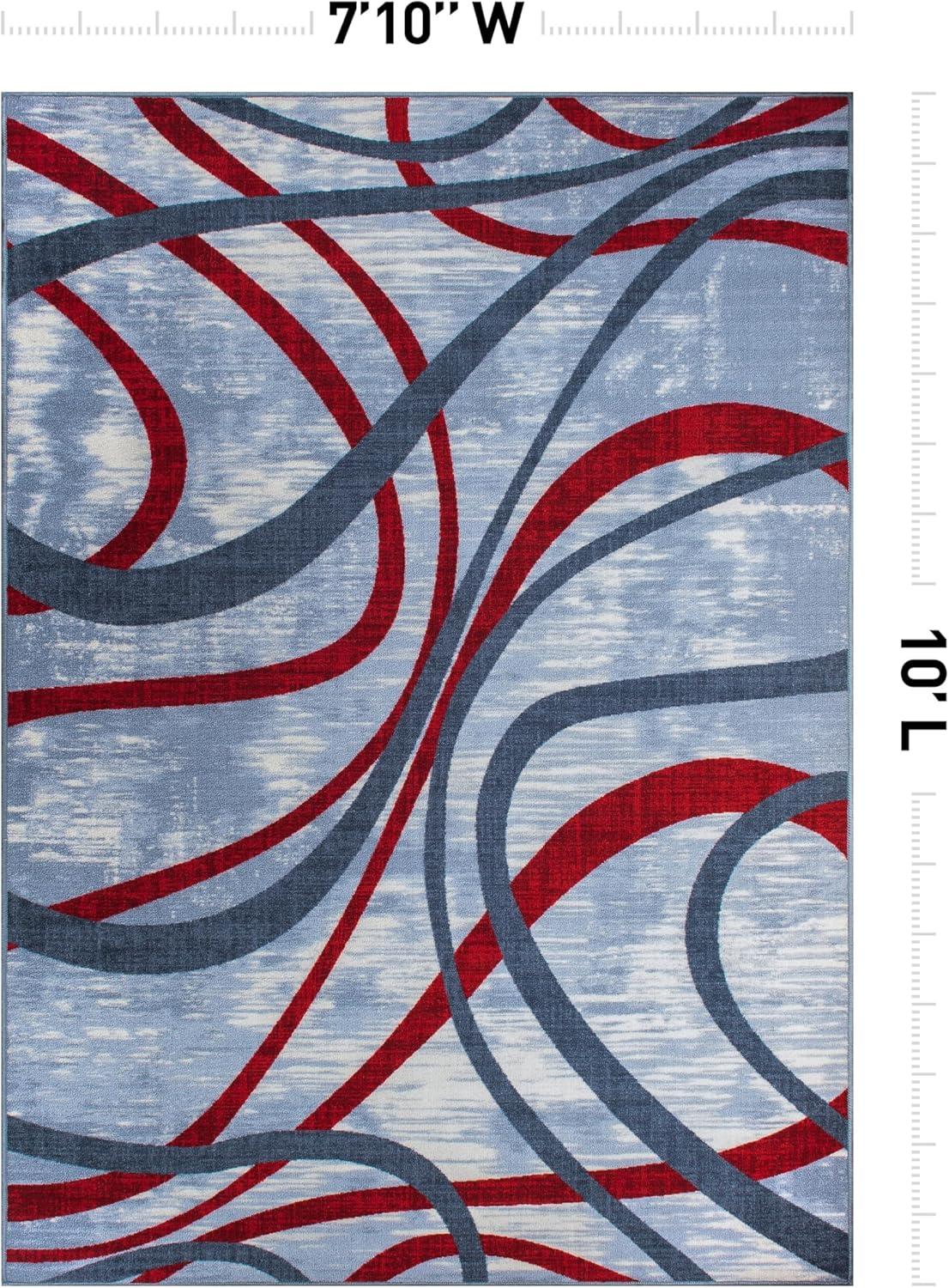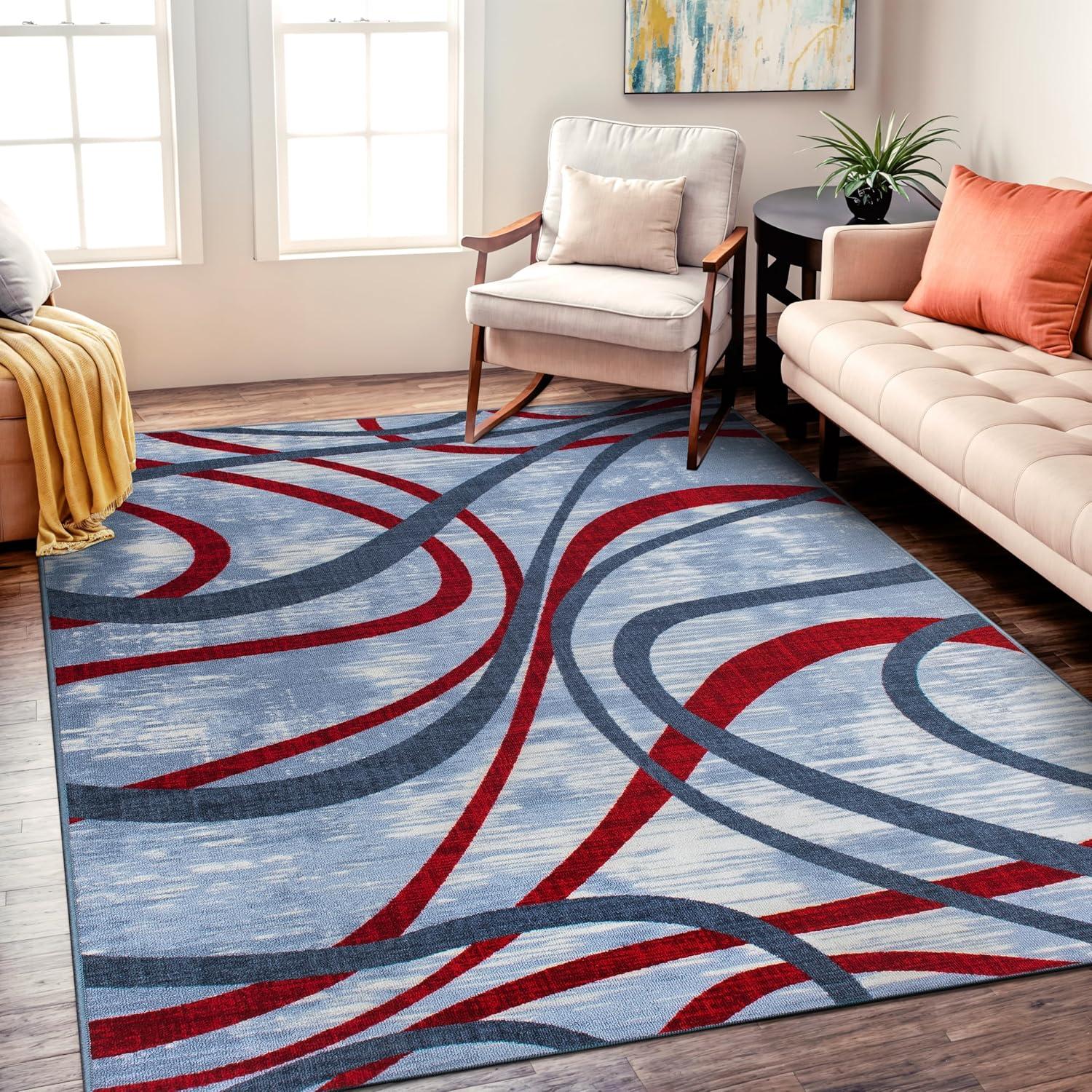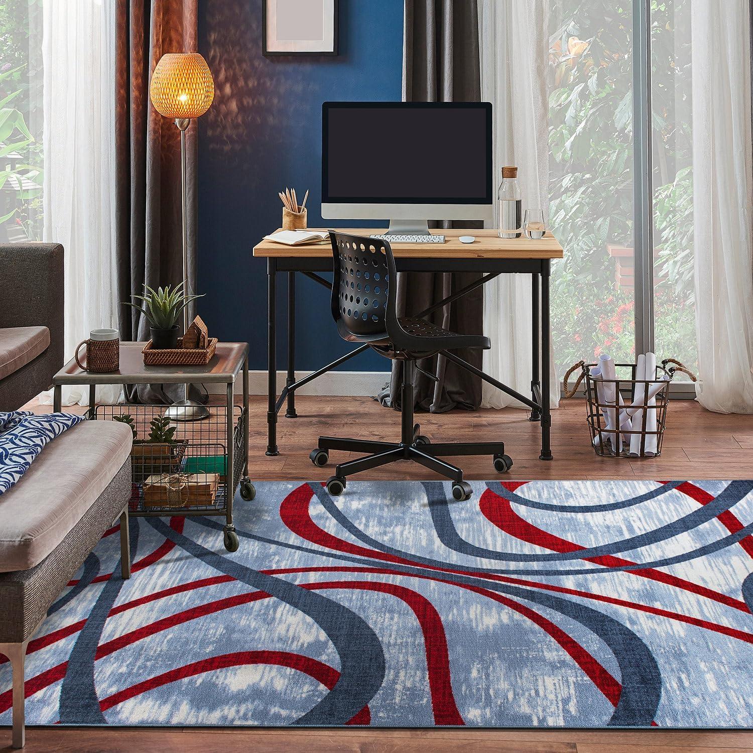 Rugshop Contemporary Distressed Abstract Lines High Traffic Living Room,Bedroom,Kitchen, Home Office Non Slip Area Rug 5′ x 7′ Blue(Red)