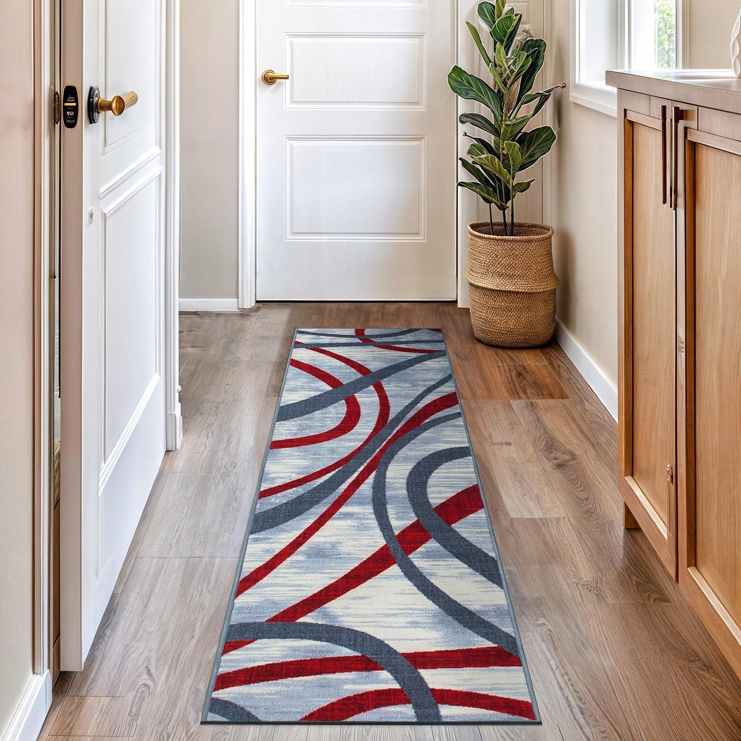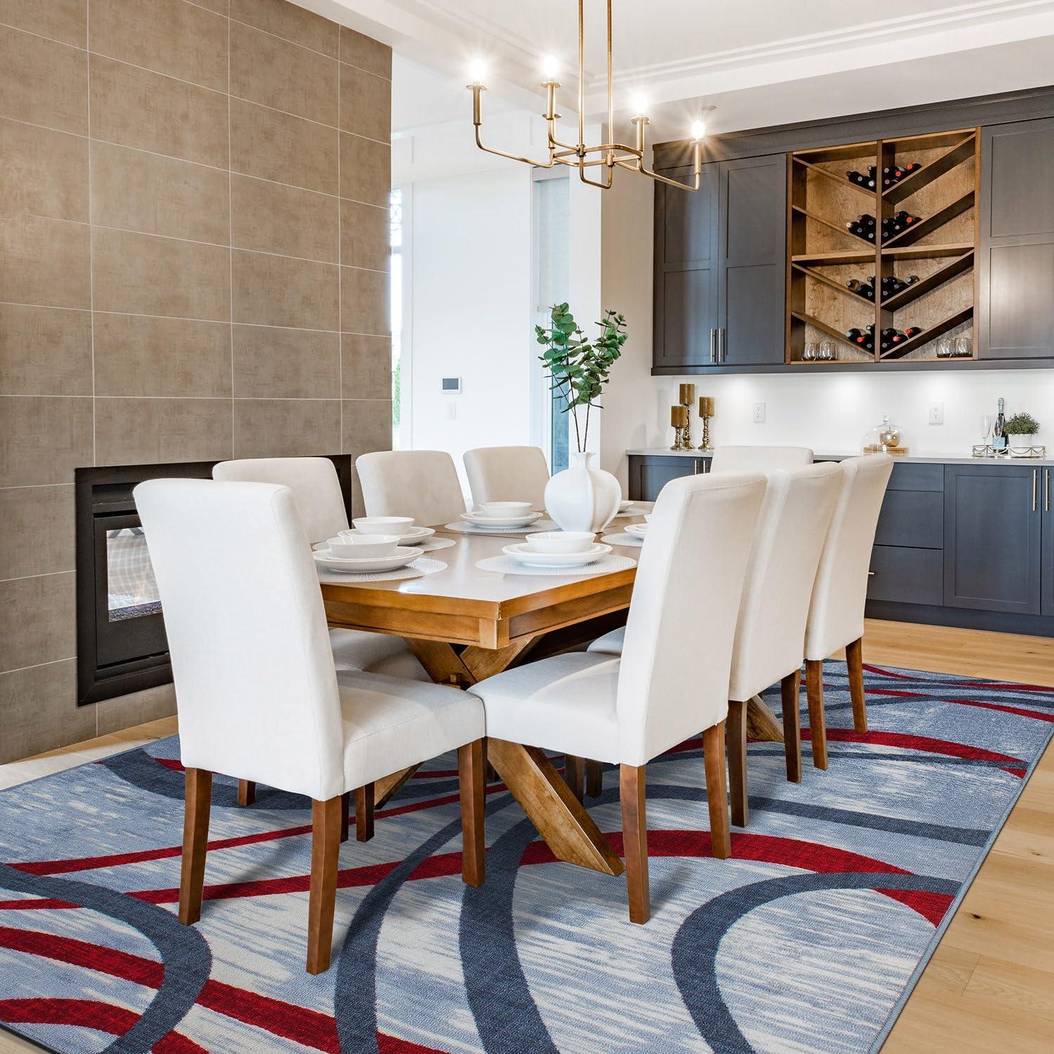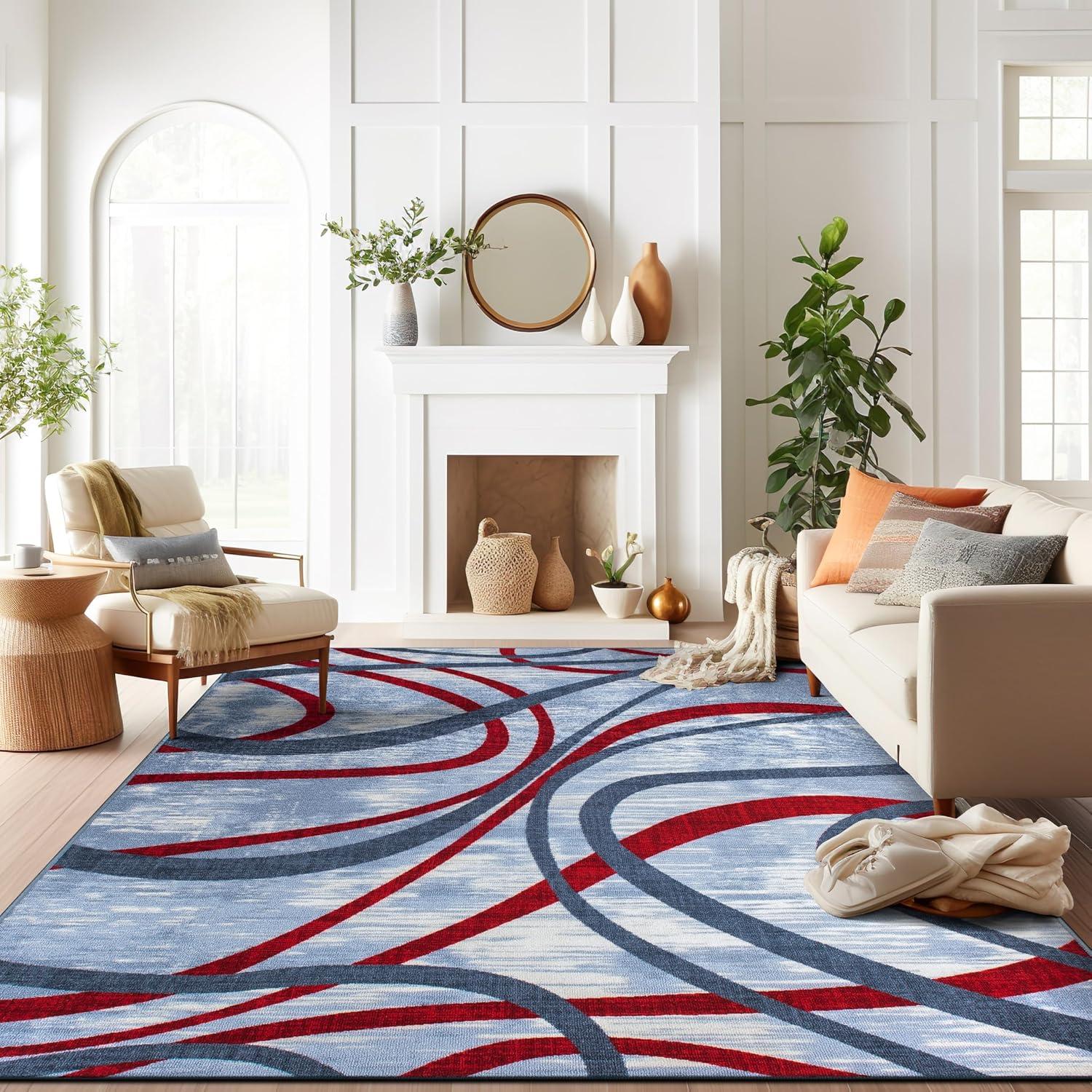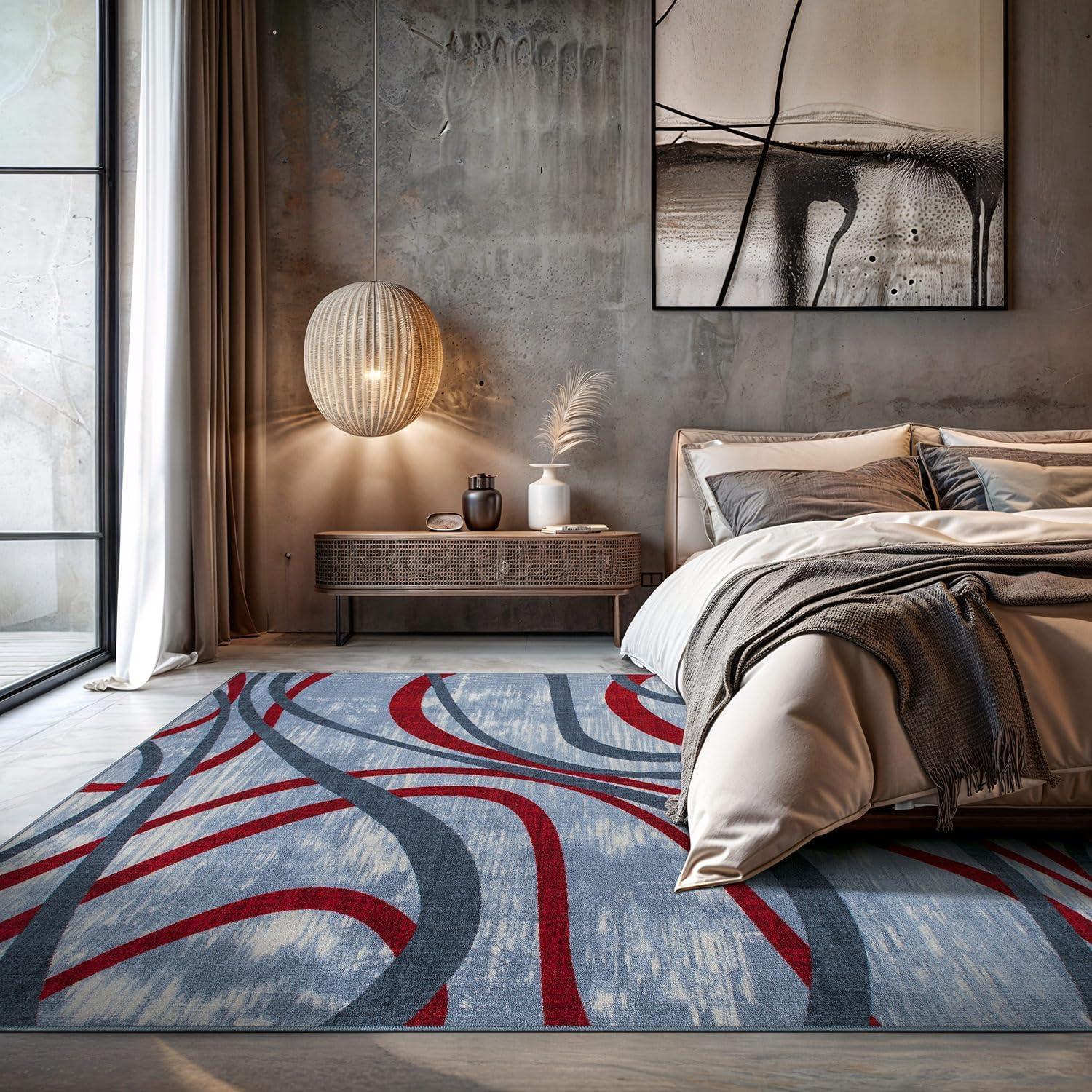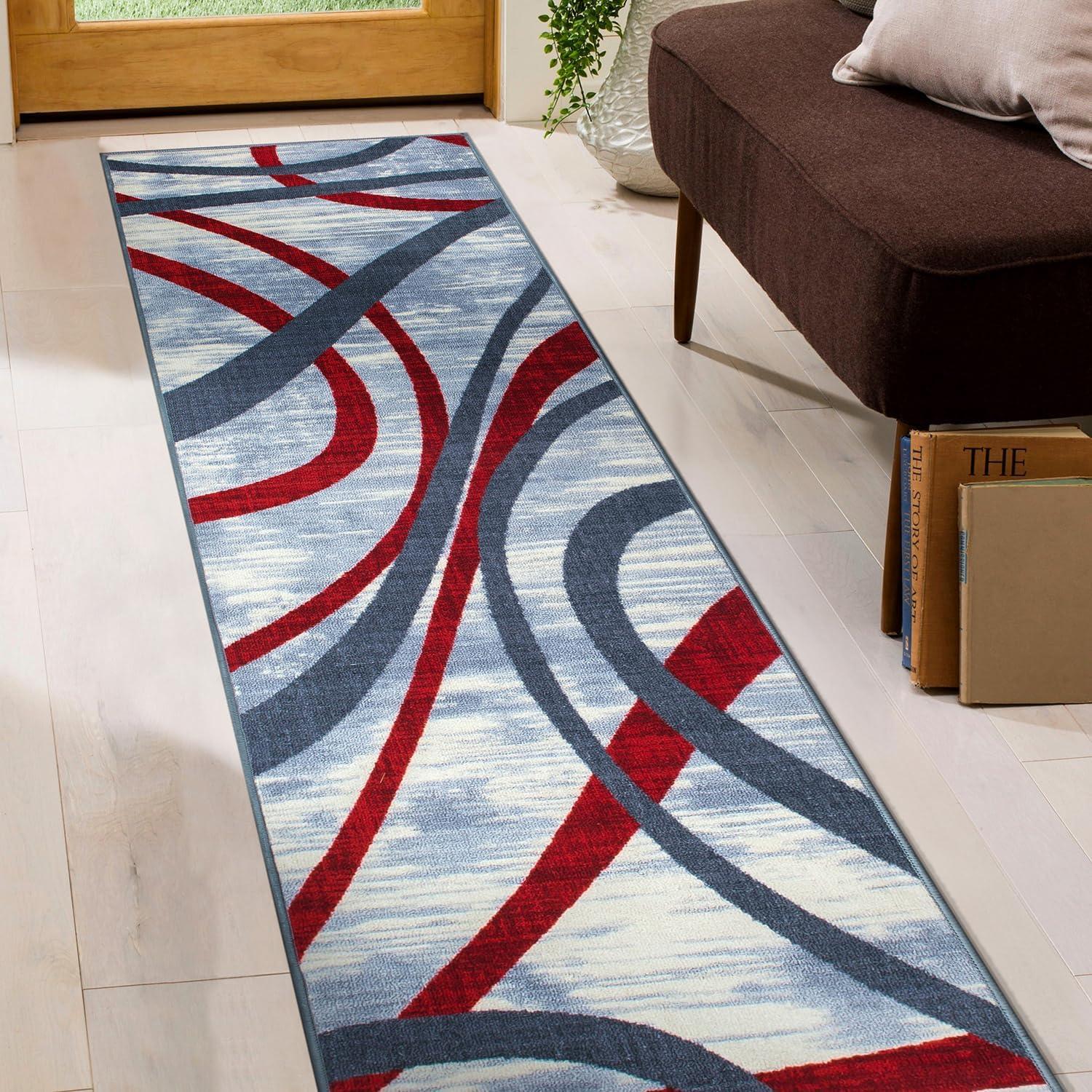 Rugshop Contemporary Distressed Abstract Lines High Traffic Living Room,Bedroom,Kitchen, Home Office Non Slip Area Rug 5′ x 7′ Blue(Red)