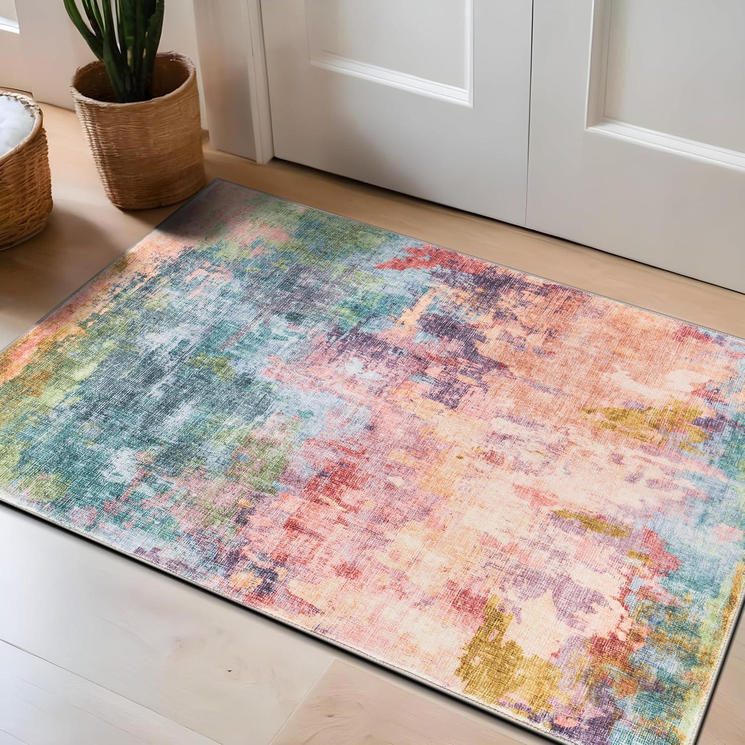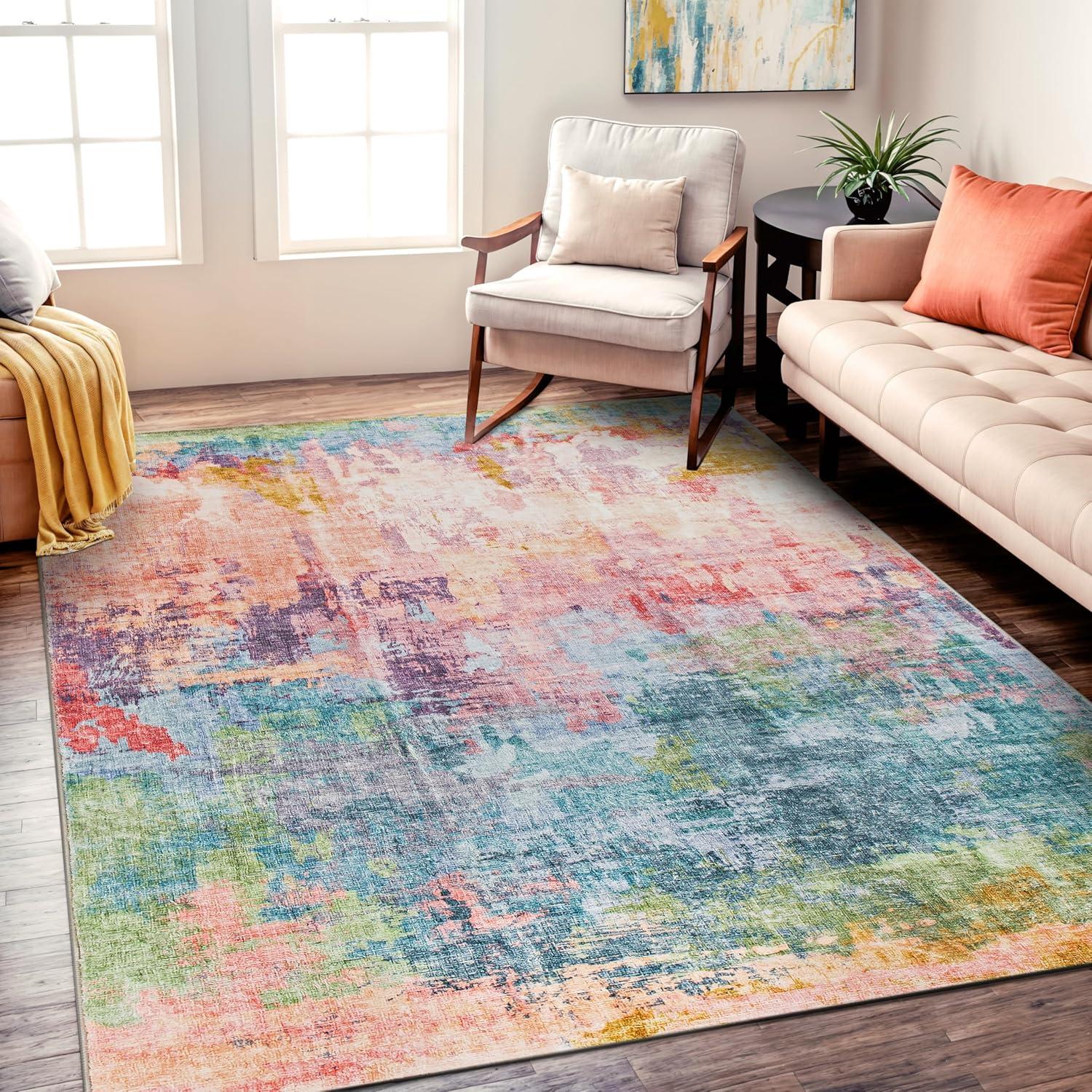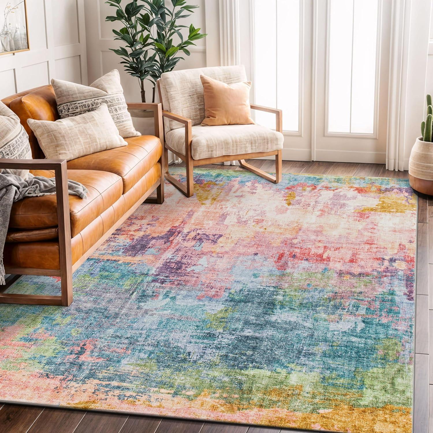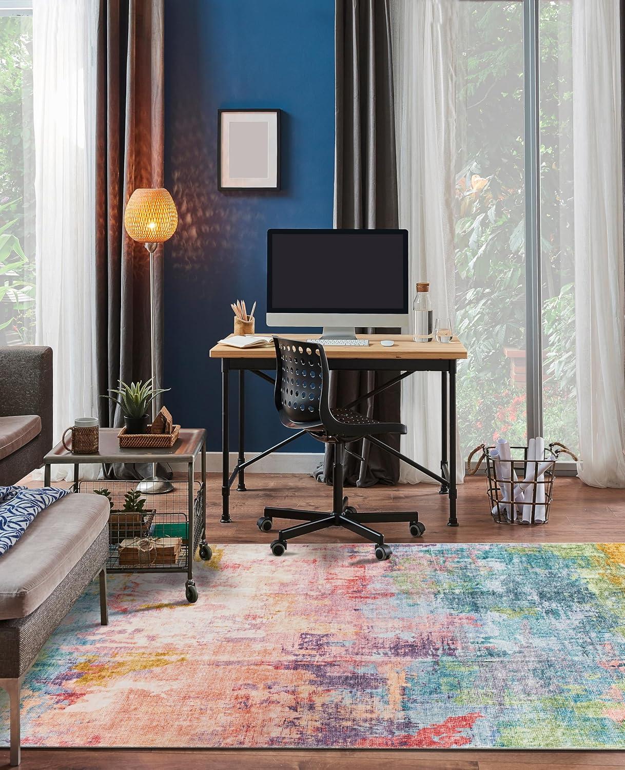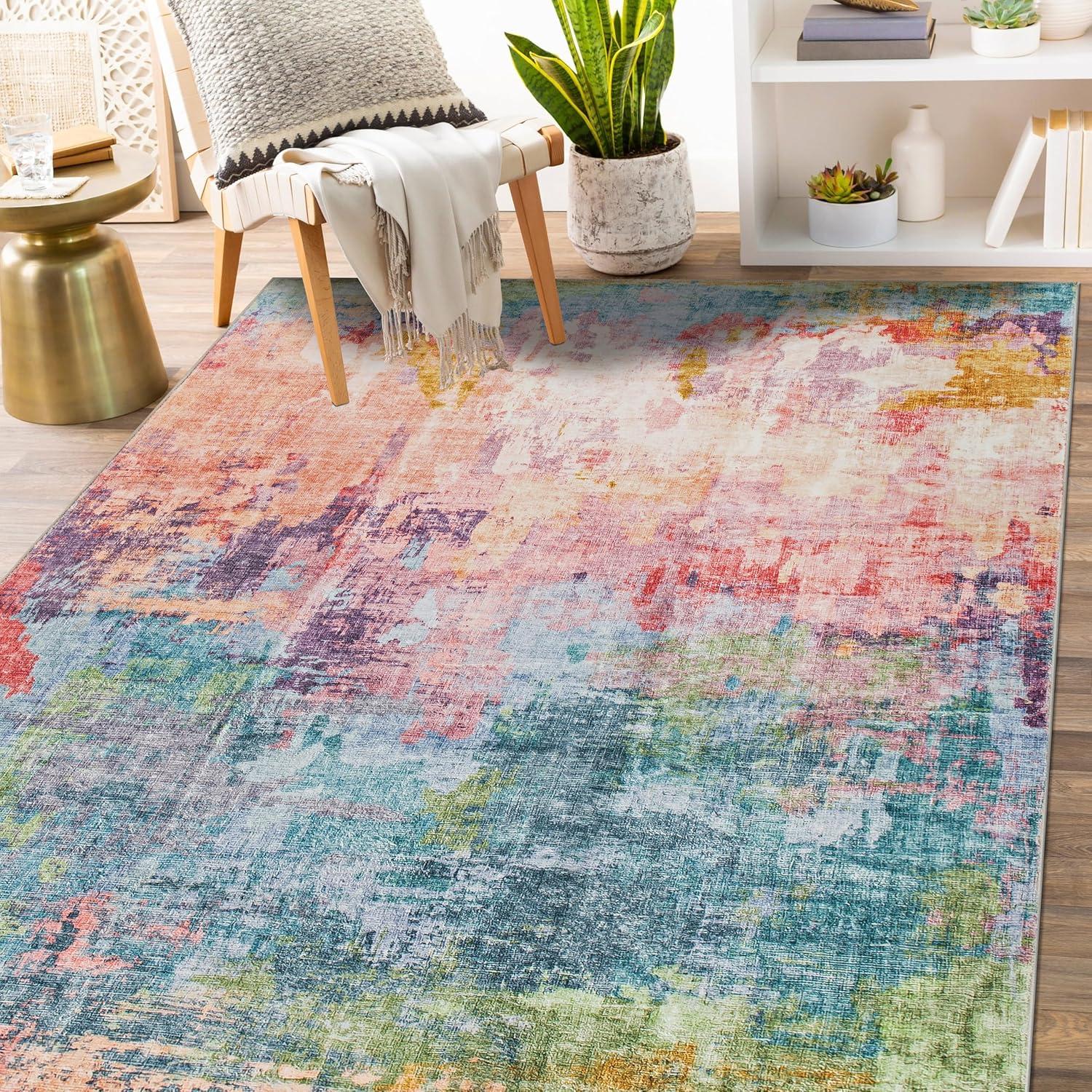 Infuse your space with bold expression and dynamic color with this multi-colored abstract rug. Featuring rich, fluid patterns that blend modern artistry with everyday functionality, this rug is designed for homes that embrace creativity. The soft, plush pile delivers luxurious comfort underfoot, while its machine-washable polyester fibers make upkeep effortless. A non-slip backing ensures it stays in place, making it a stunning and practical addition to contemporary interiors.
