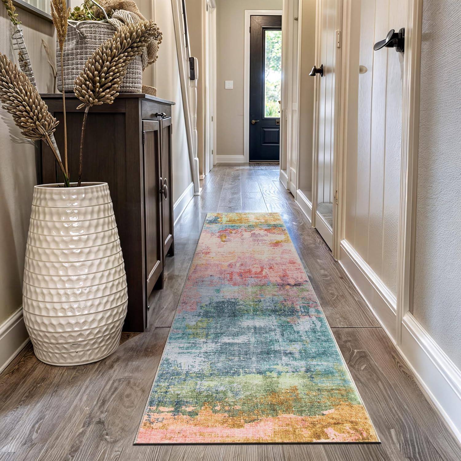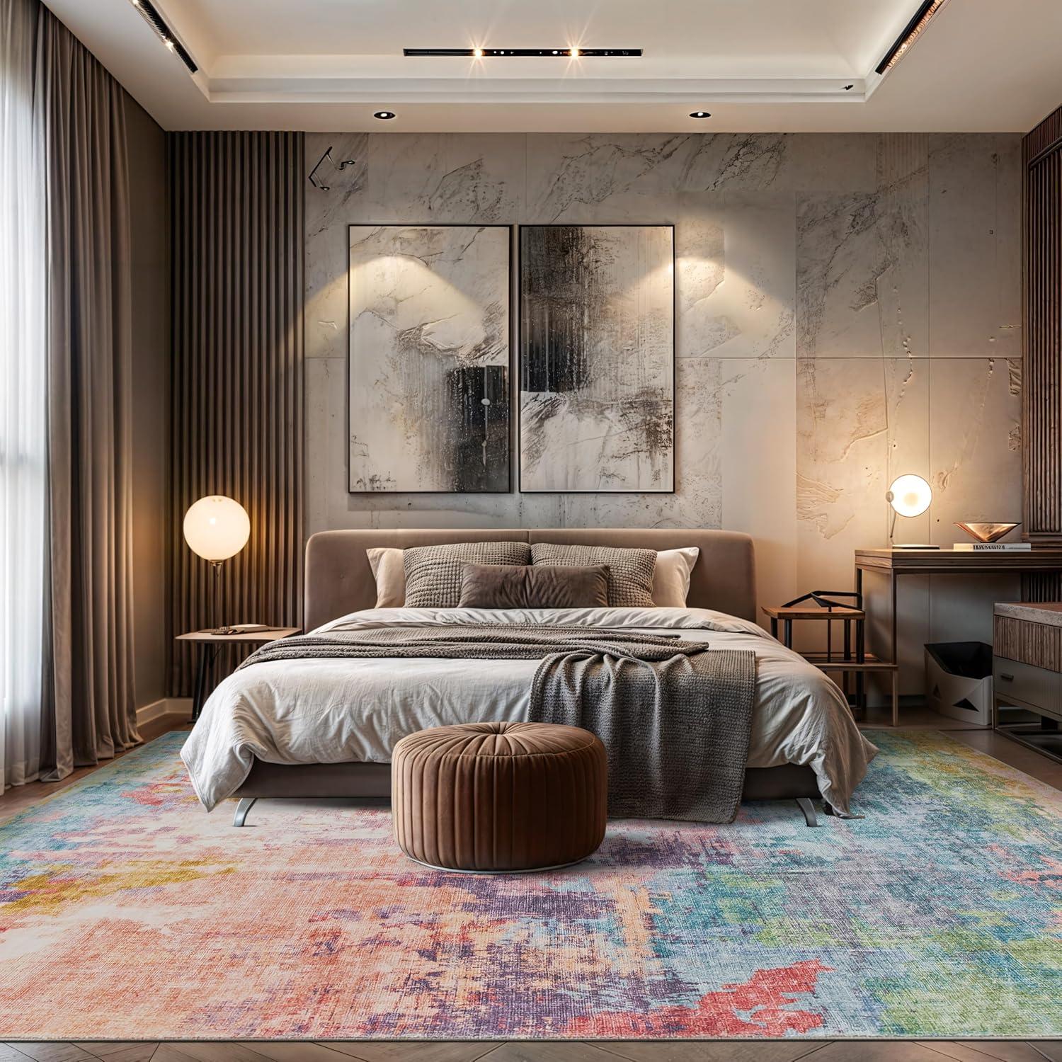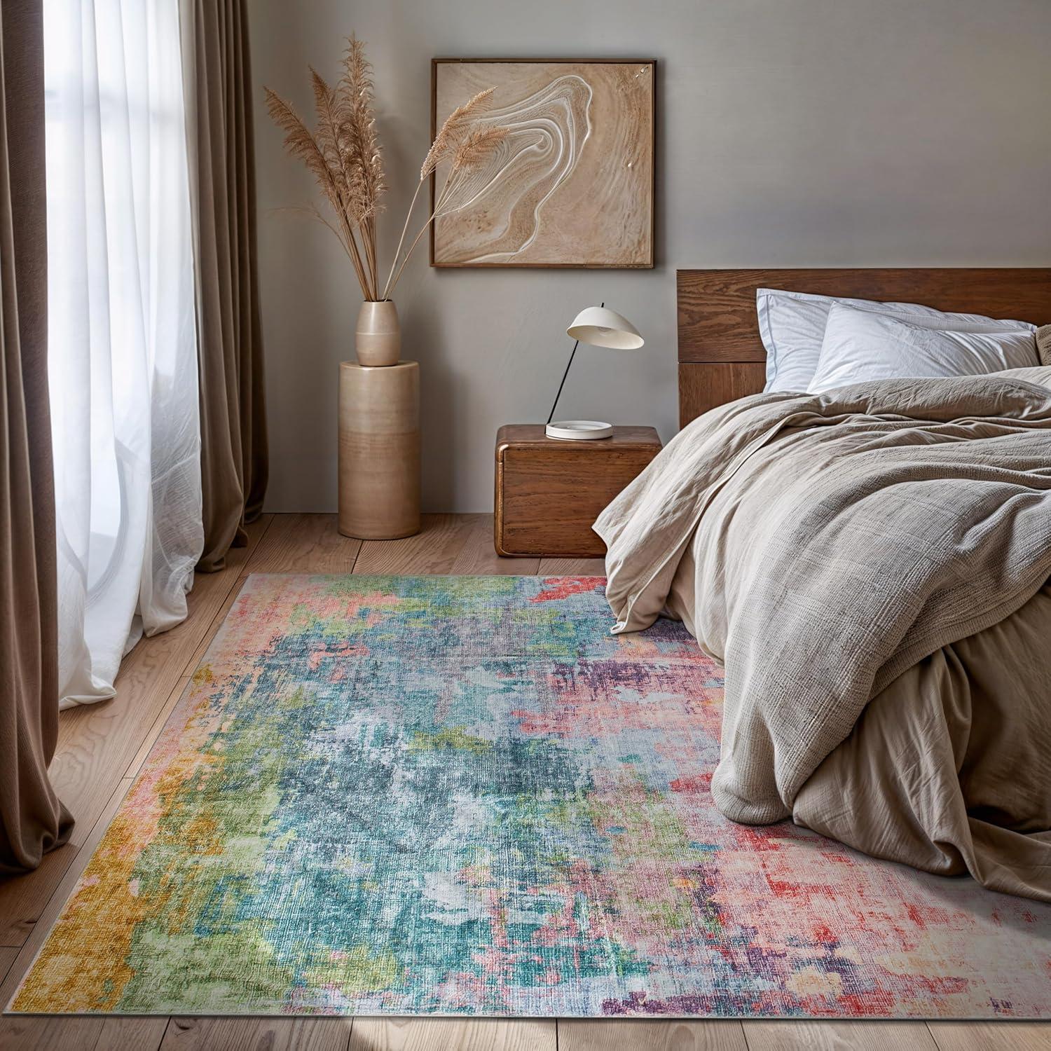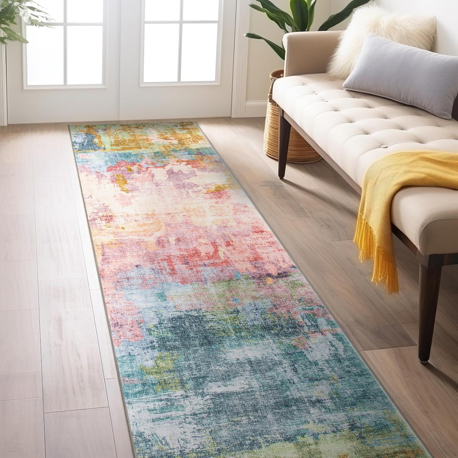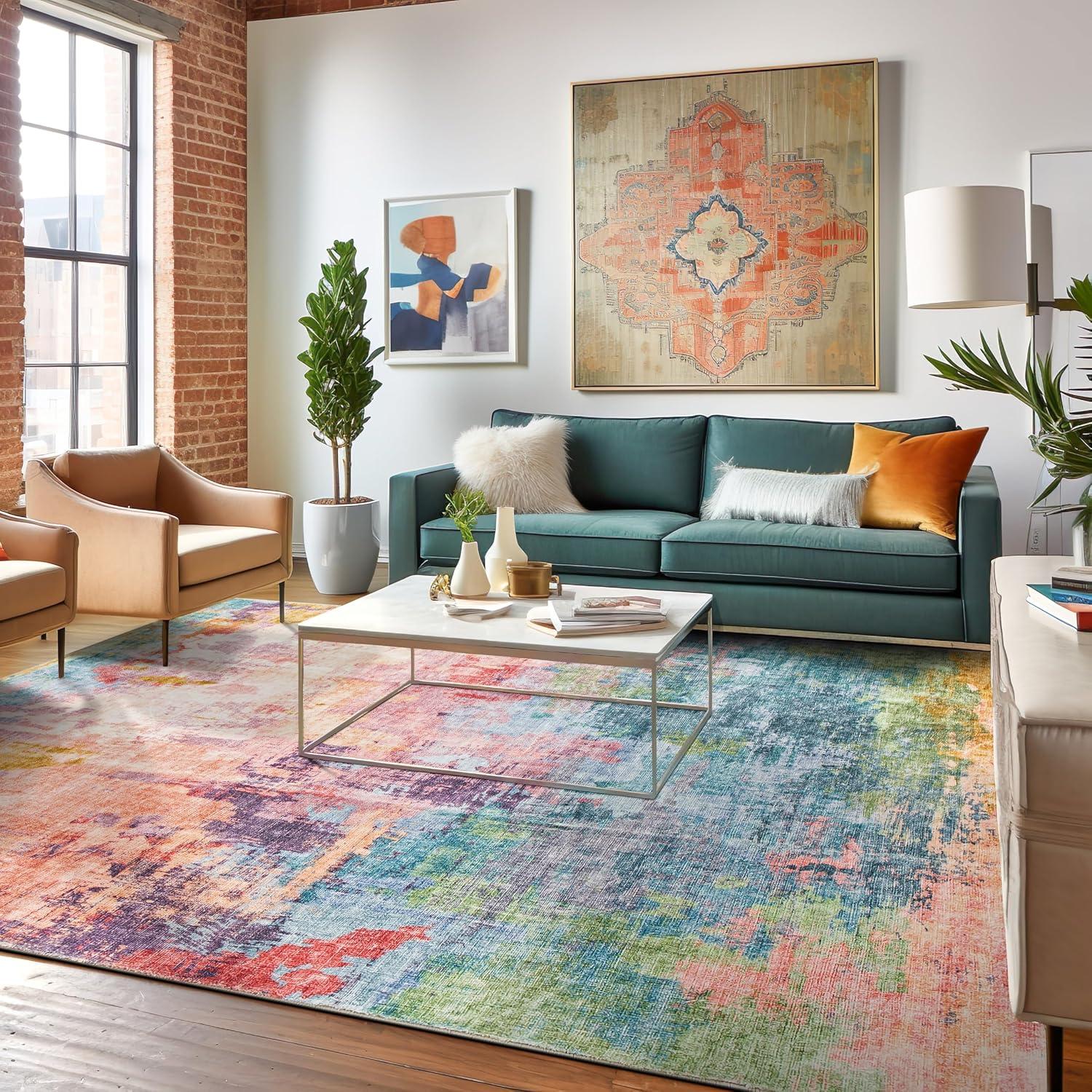 Infuse your space with bold expression and dynamic color with this multi-colored abstract rug. Featuring rich, fluid patterns that blend modern artistry with everyday functionality, this rug is designed for homes that embrace creativity. The soft, plush pile delivers luxurious comfort underfoot, while its machine-washable polyester fibers make upkeep effortless. A non-slip backing ensures it stays in place, making it a stunning and practical addition to contemporary interiors.
