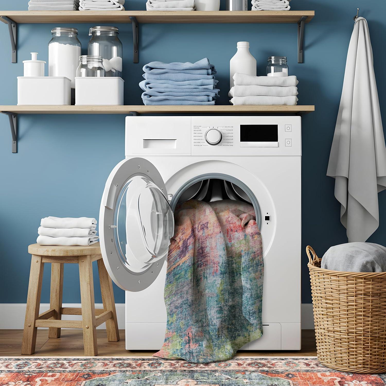 Machine Washable for Easy Care: No need for spot cleaning , simply place it in the washing machine for a quick refresh! Made from durable synthetic polyester, it stays soft and retains its shape. Small sizes fit in a home washer, while larger rugs may require a commercial machine.