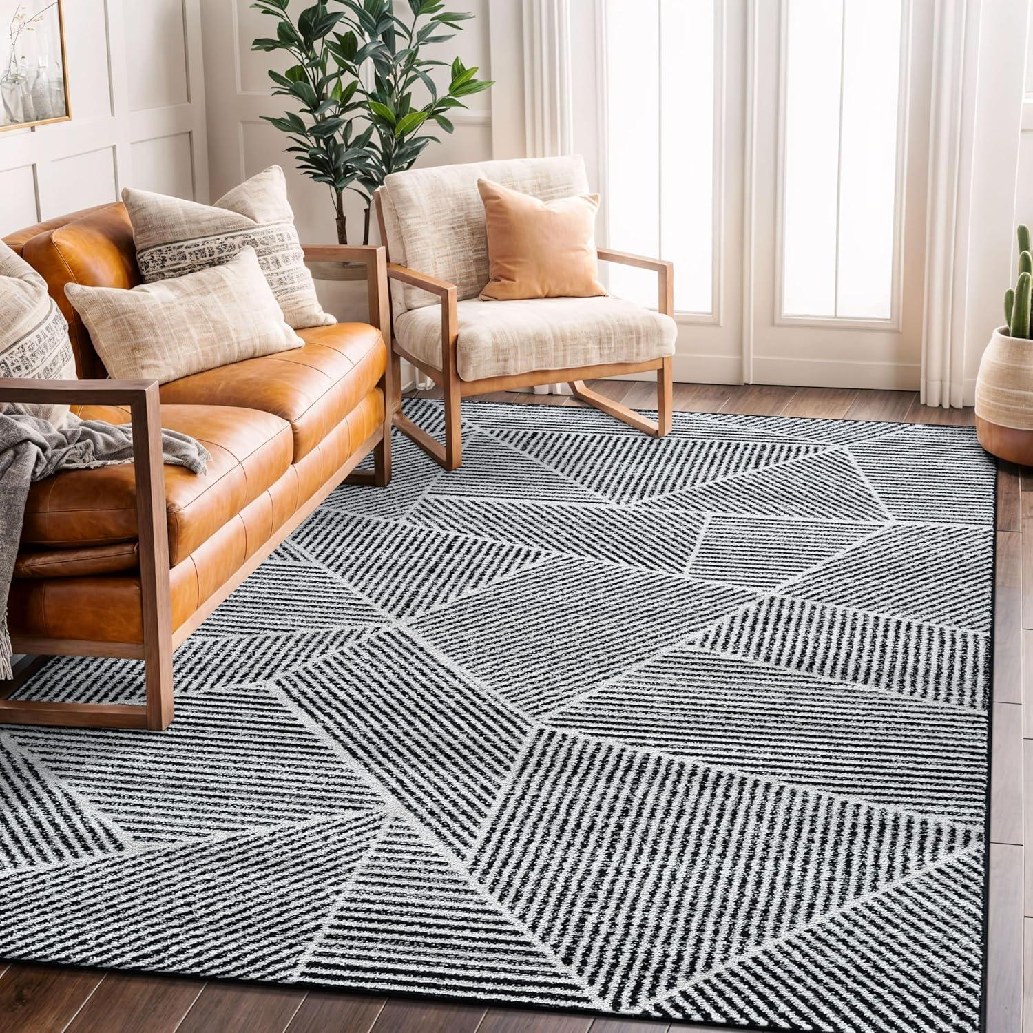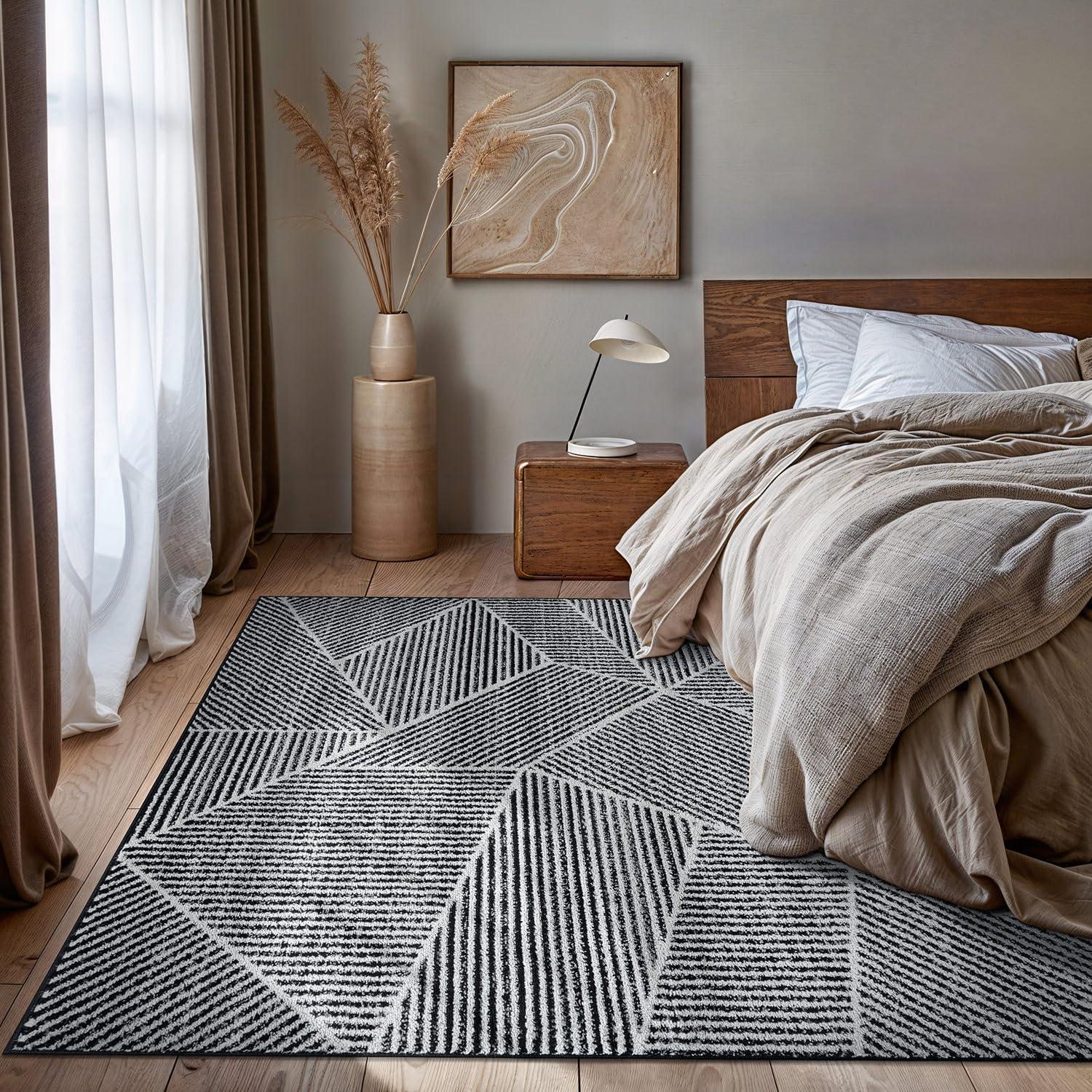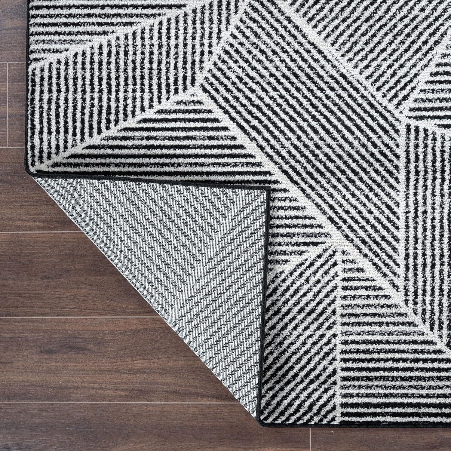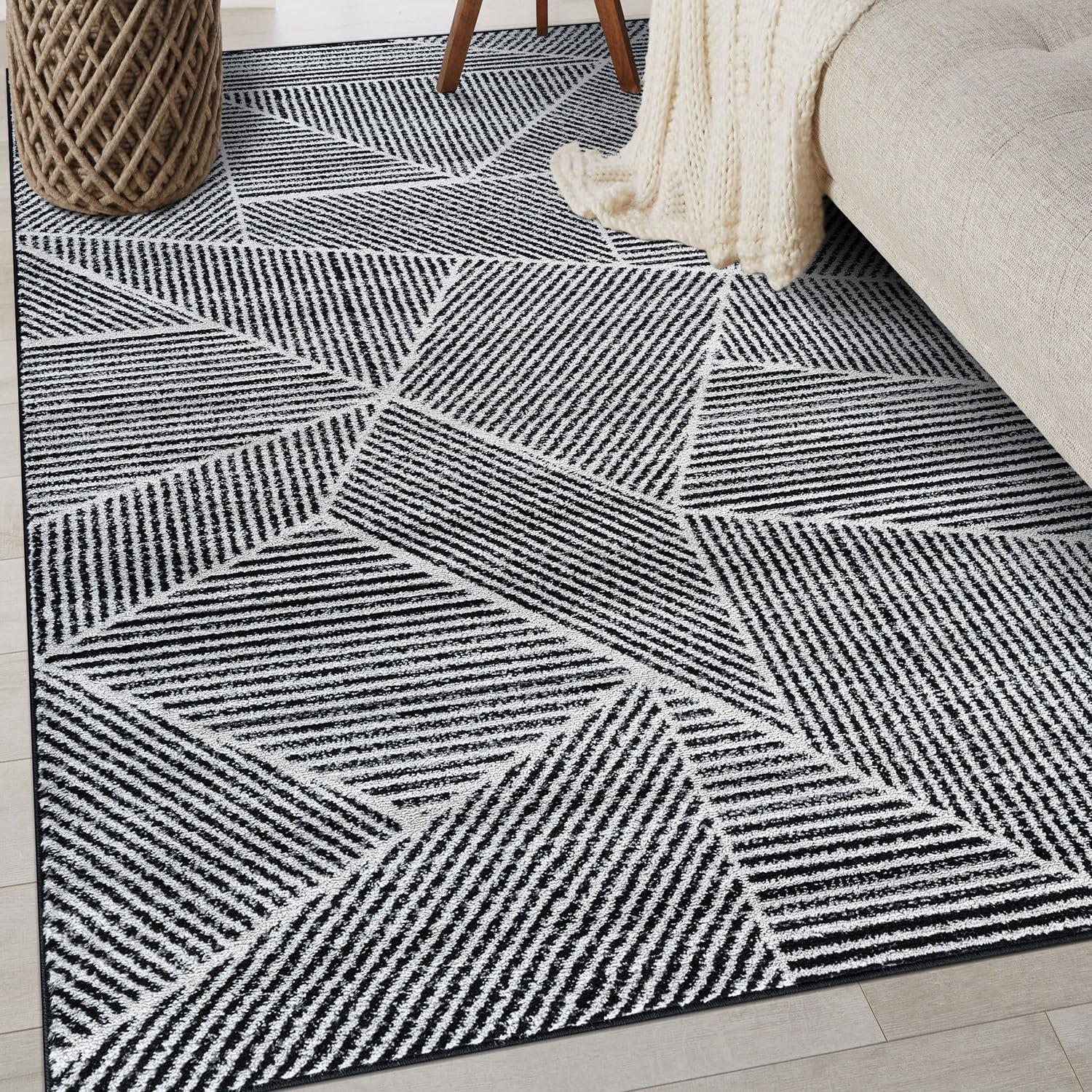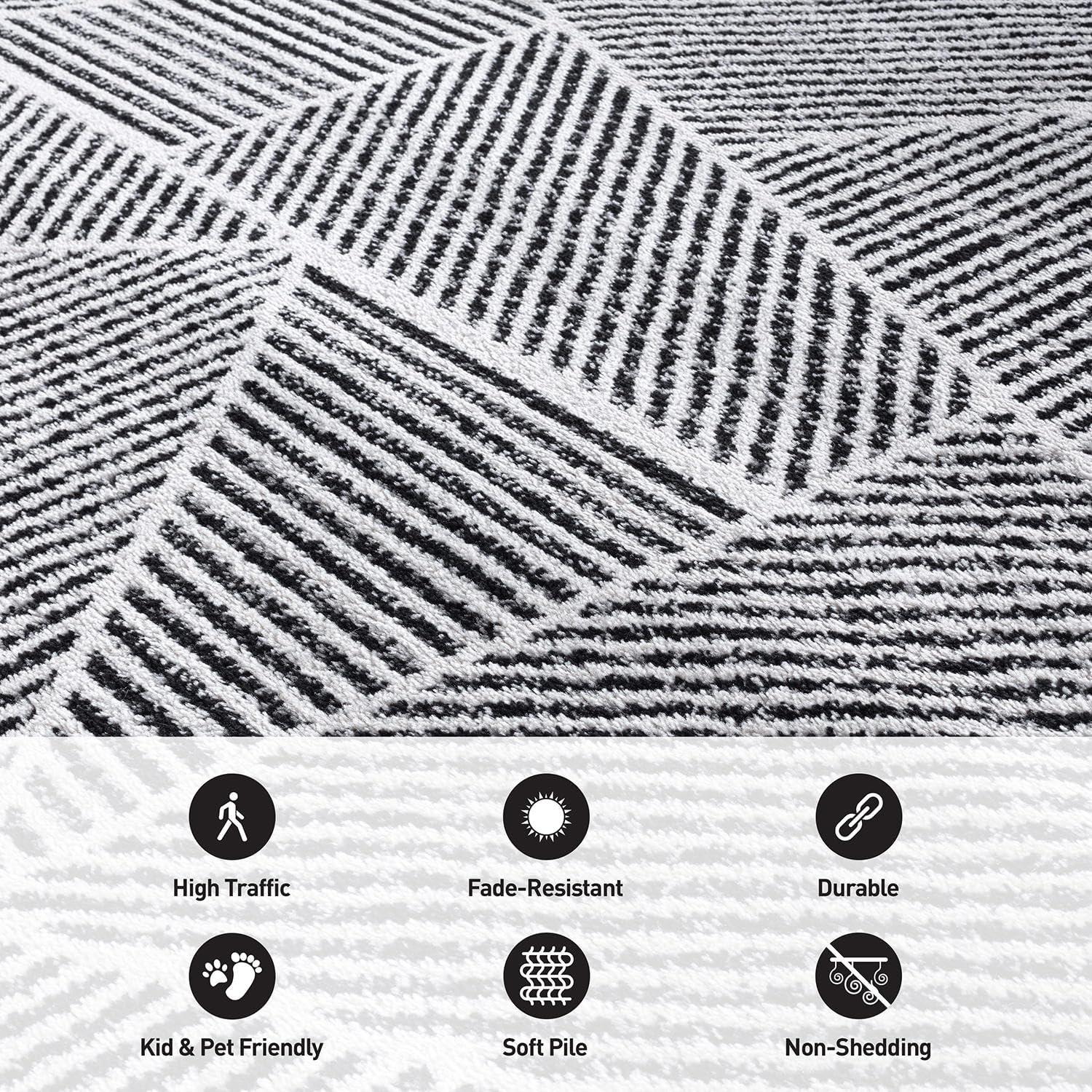 Rugshop Contemporary Geometric Stripe High Traffic Living Room,Bedroom,Kitchen, Home Office Area Rug 5′ x 7′ Cream(Black)