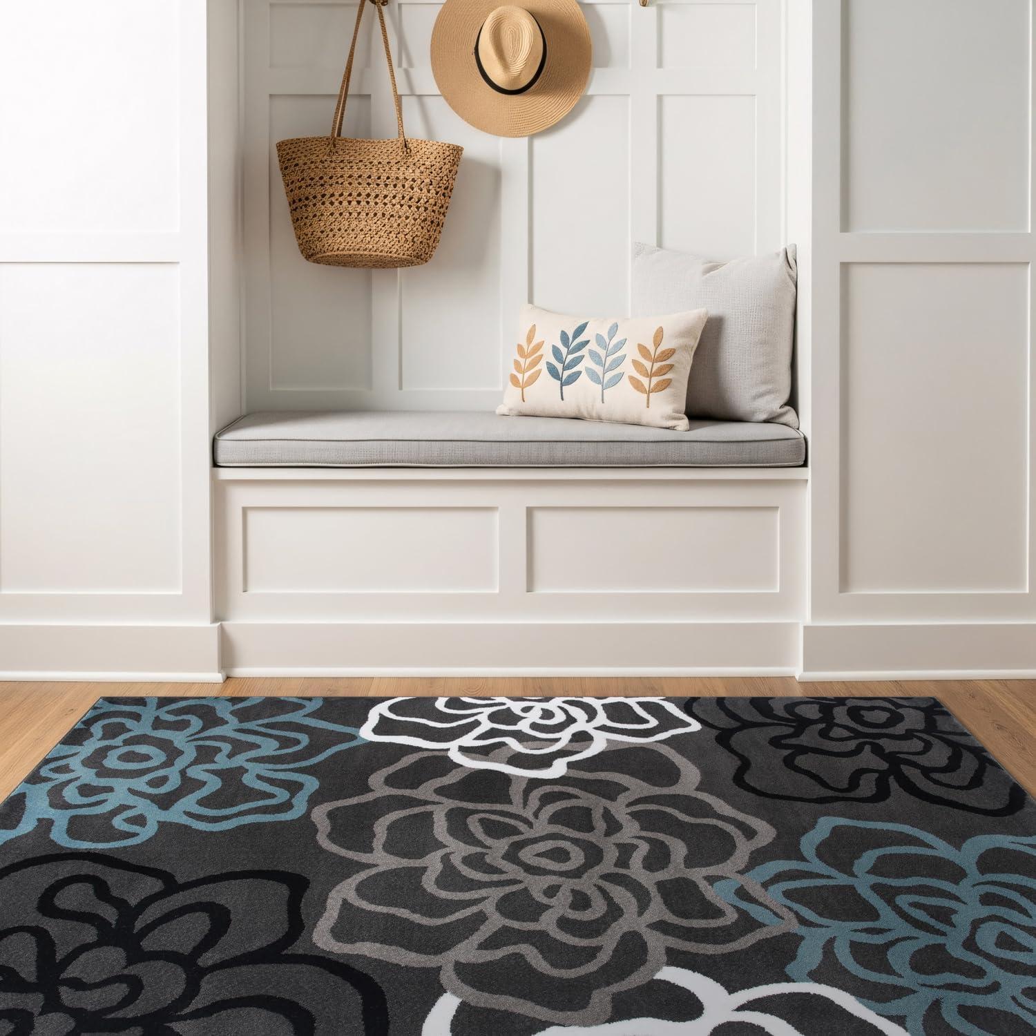 Exquisite Floral Design: Elevate your space with the Rugshop Contemporary Modern Floral Abstract Flowers Area Rug. Measuring 2' x 3', this gray rug showcases a stunning floral pattern, ideal for adding a touch of elegance to small areas like entryways or beside your bed.