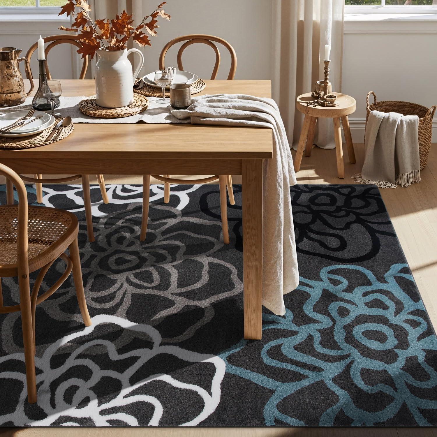 Rugshop Contemporary Modern Floral Abstract Flowers Easy Maintenance for Home Office, Living Room, Bedroom, Kitchen Soft Area Rug 5′ 3″ X 7′ 3″ Gray(Grey)