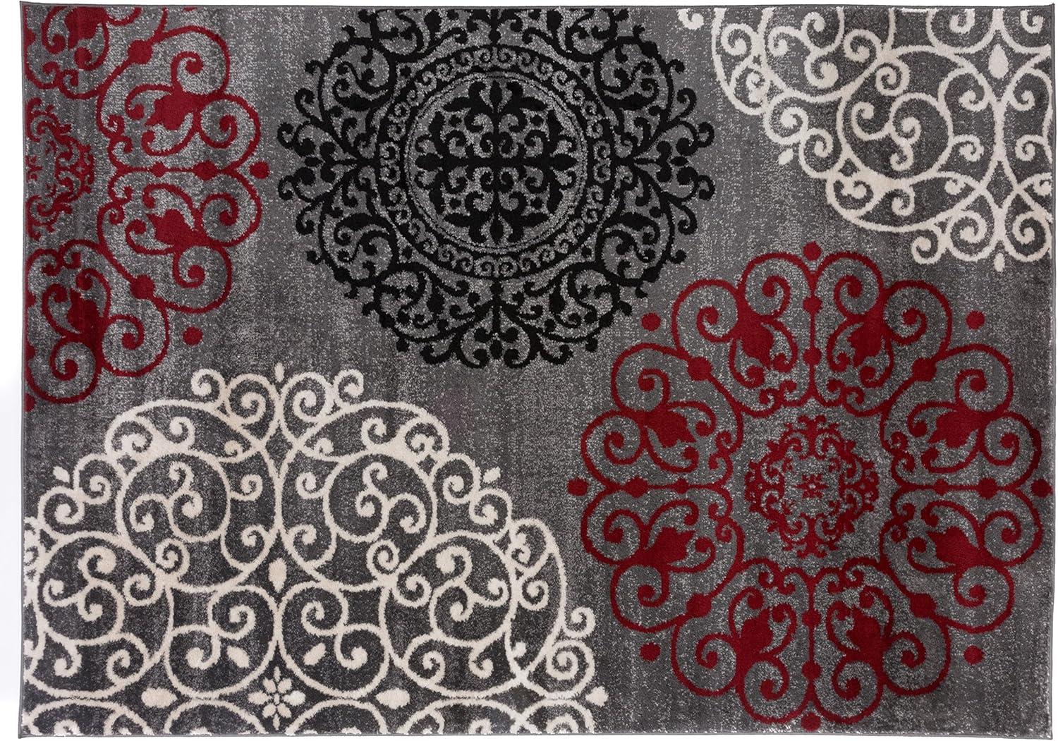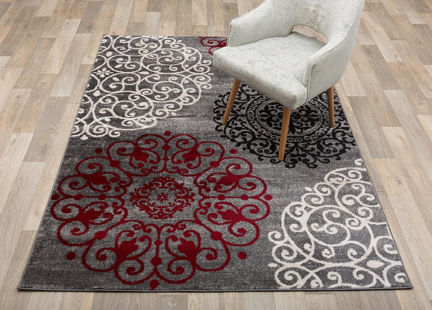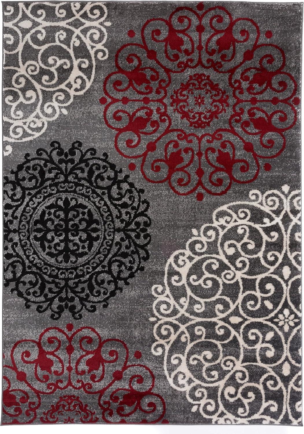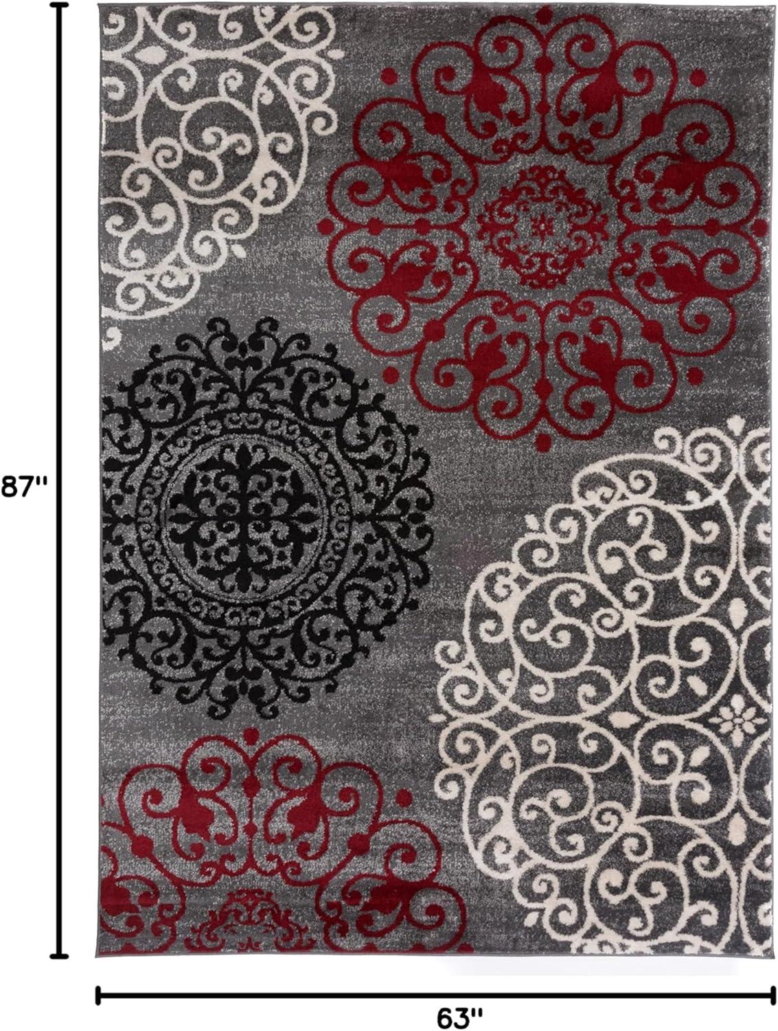 Rugshop Contemporary Modern Floral Perfect for high Traffic Areas of Your Living Room,Bedroom,Home Office,Kitchen Area Rug 5’3″ x 7’3″ Gray(Red)