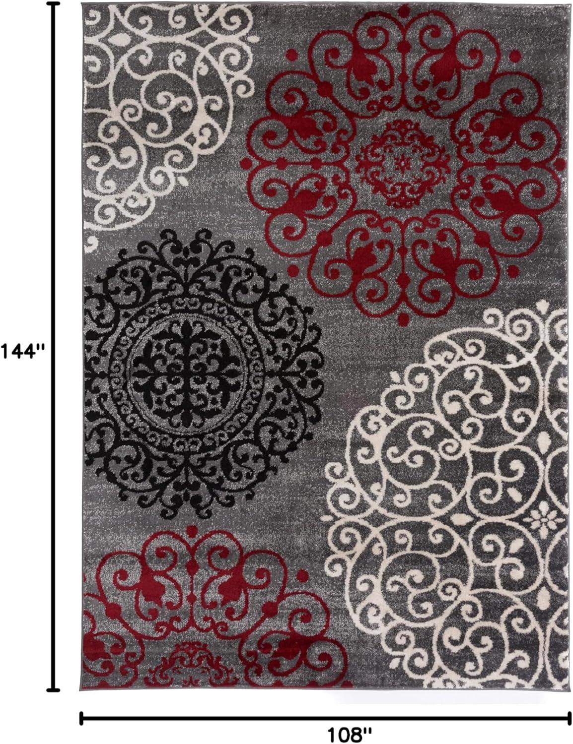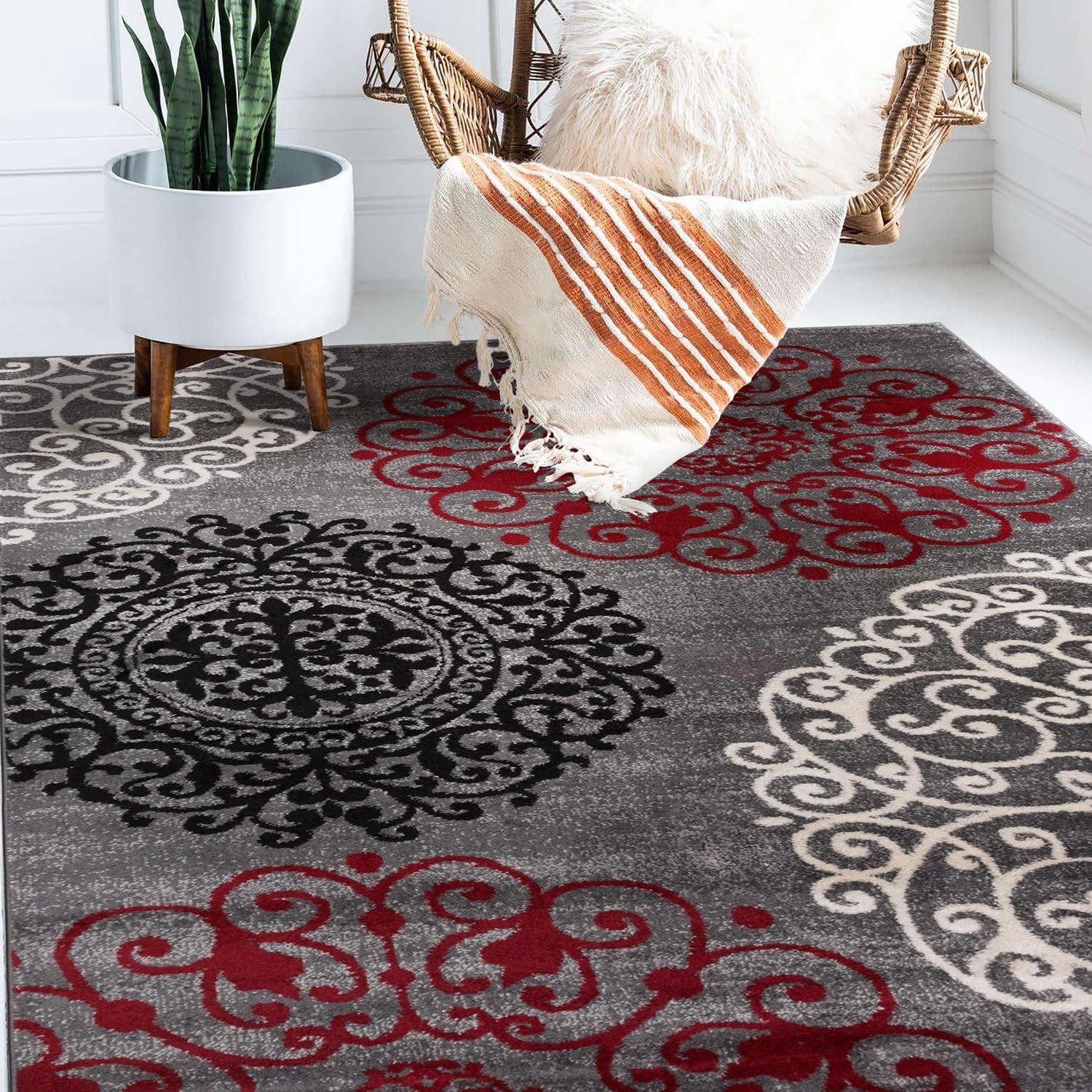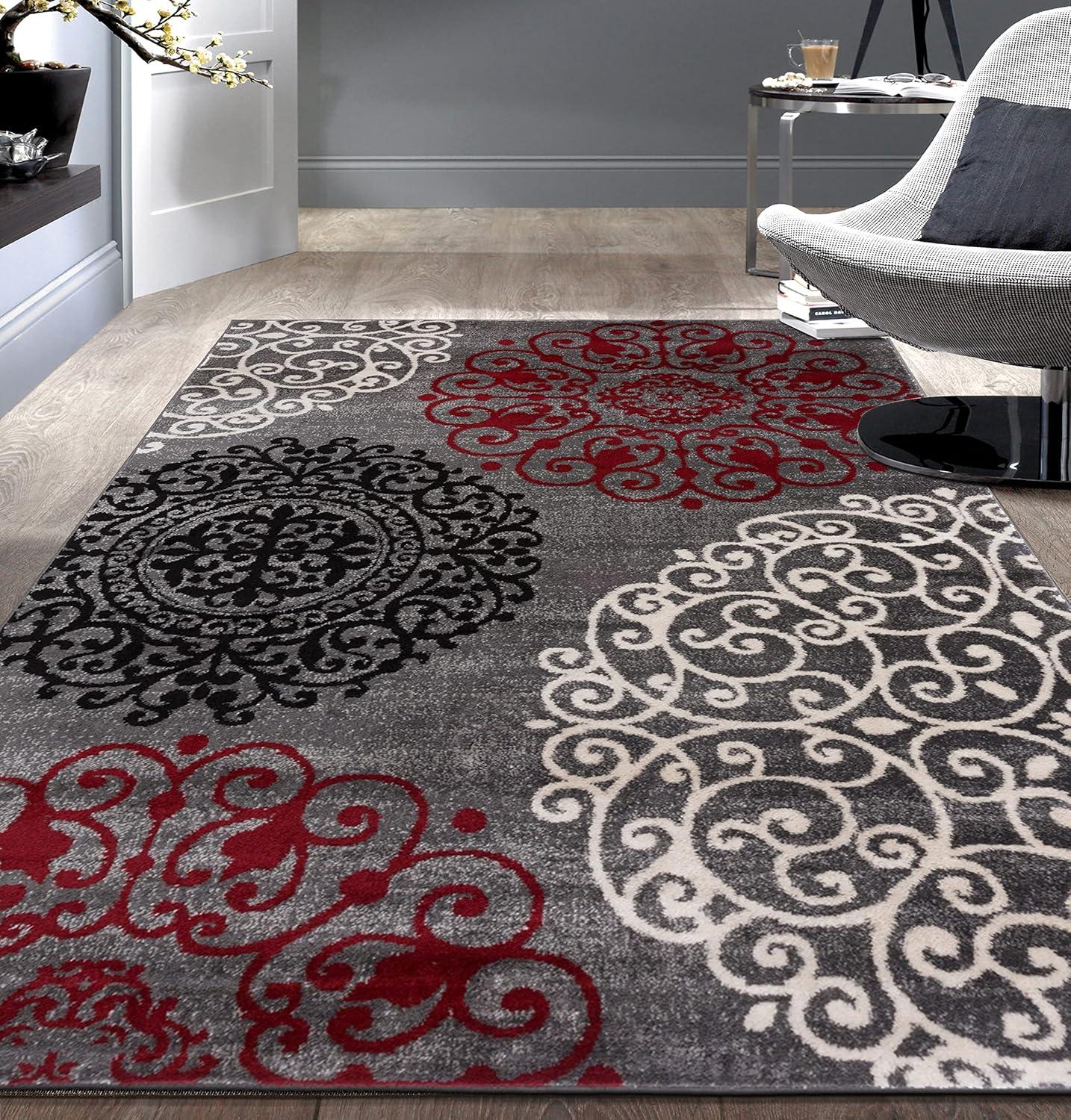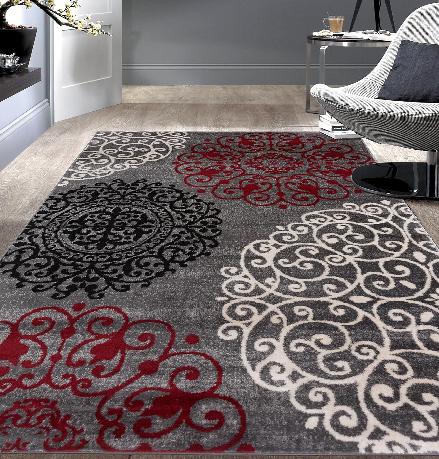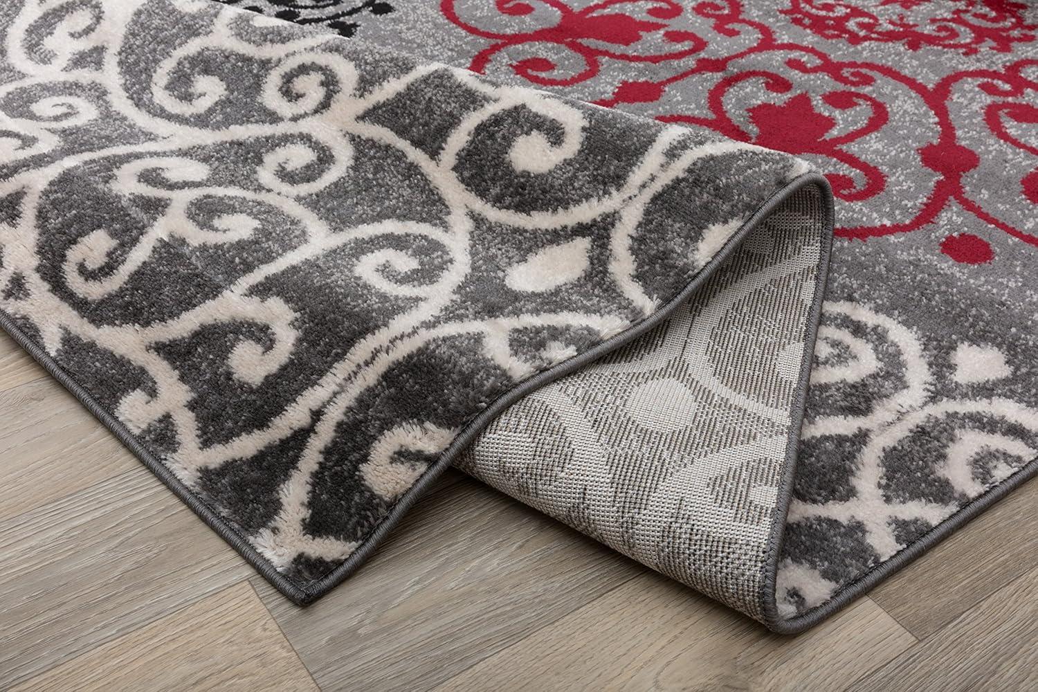Rugshop Contemporary Modern Floral Perfect for high Traffic Areas of Your Living Room,Bedroom,Home Office,Kitchen Area Rug 5’3″ x 7’3″ Gray(Red)