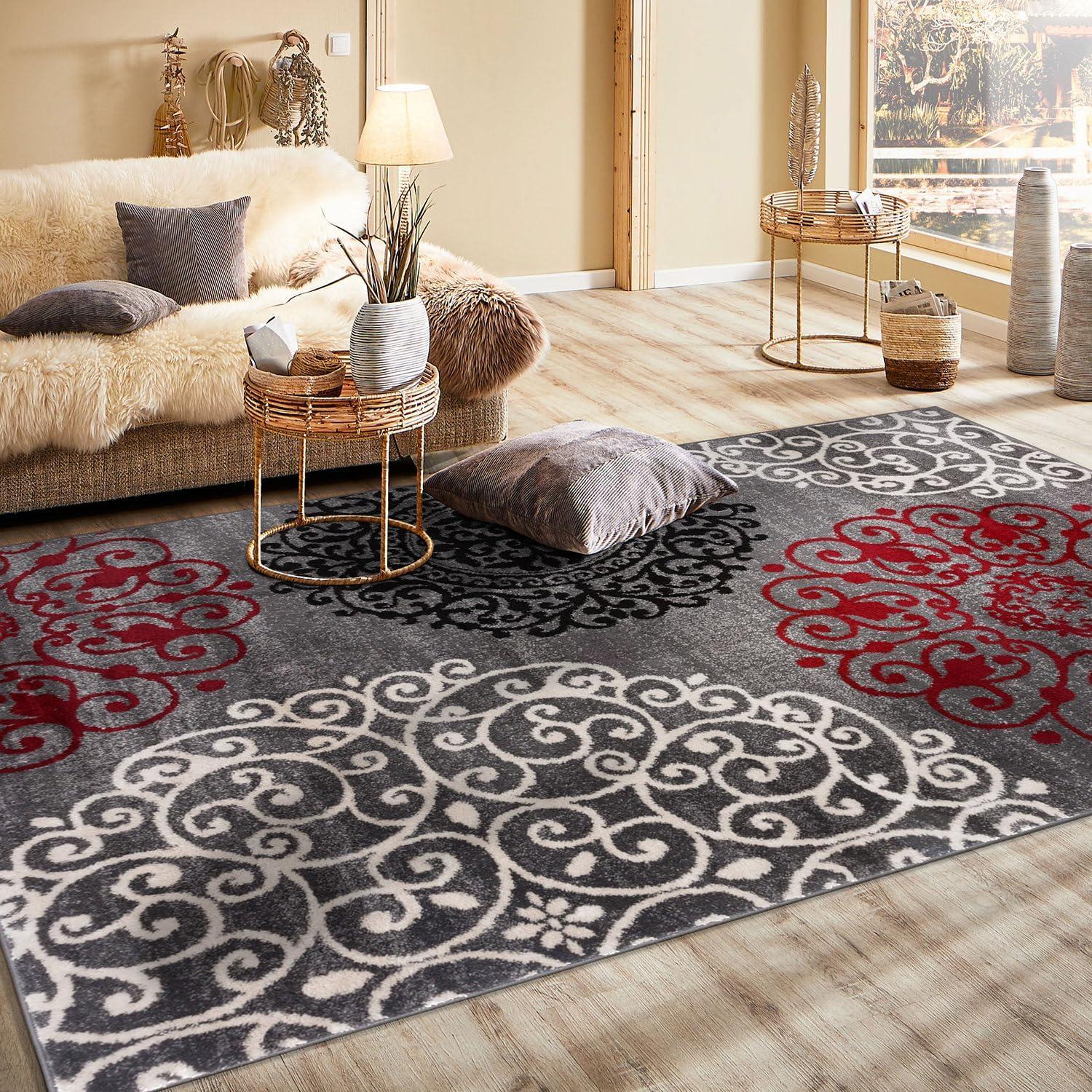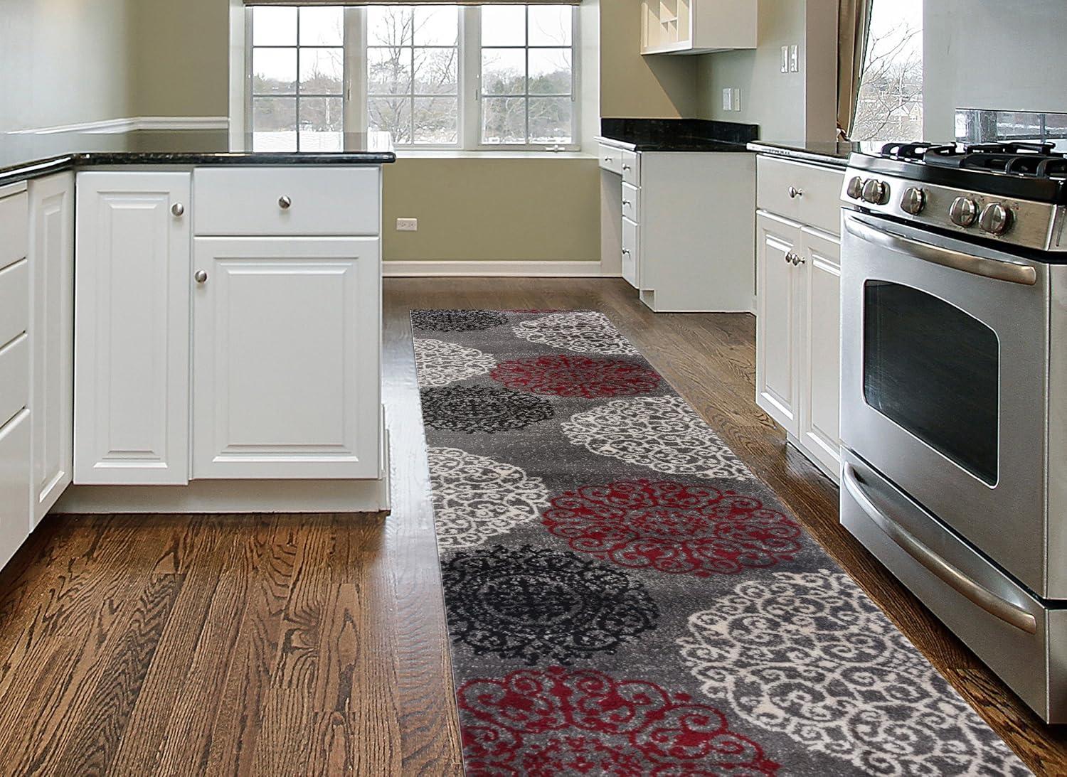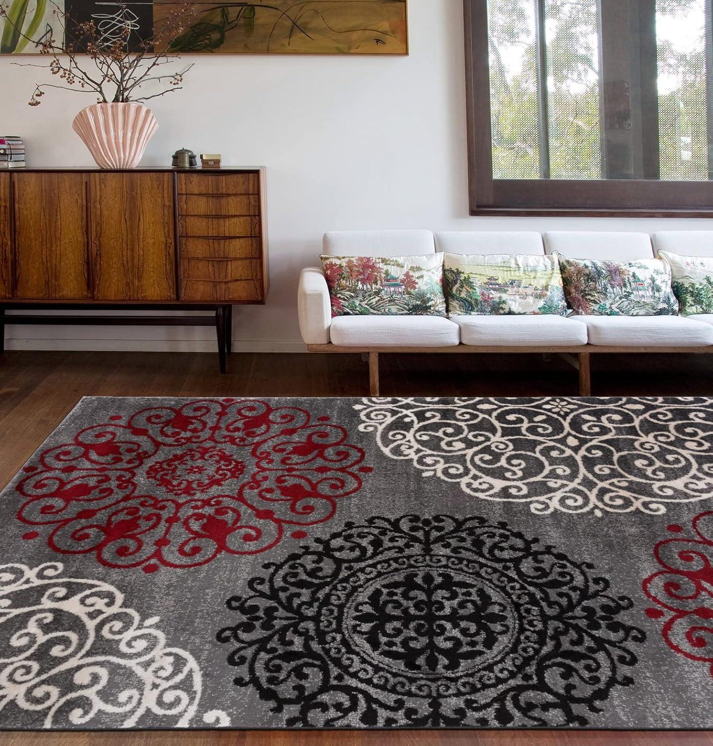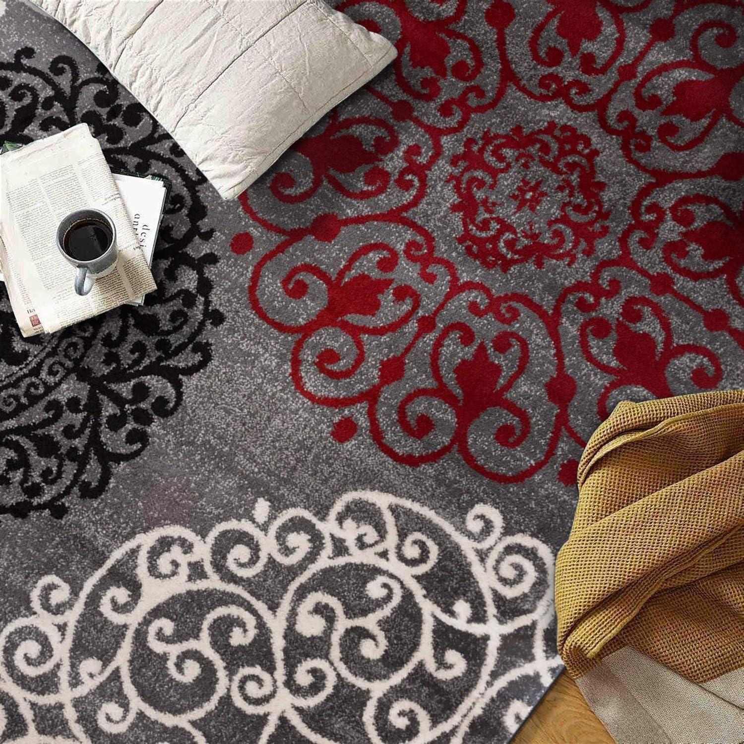 Rugshop Contemporary Modern Floral Perfect for high Traffic Areas of Your Living Room,Bedroom,Home Office,Kitchen Area Rug 5’3″ x 7’3″ Gray(Red)