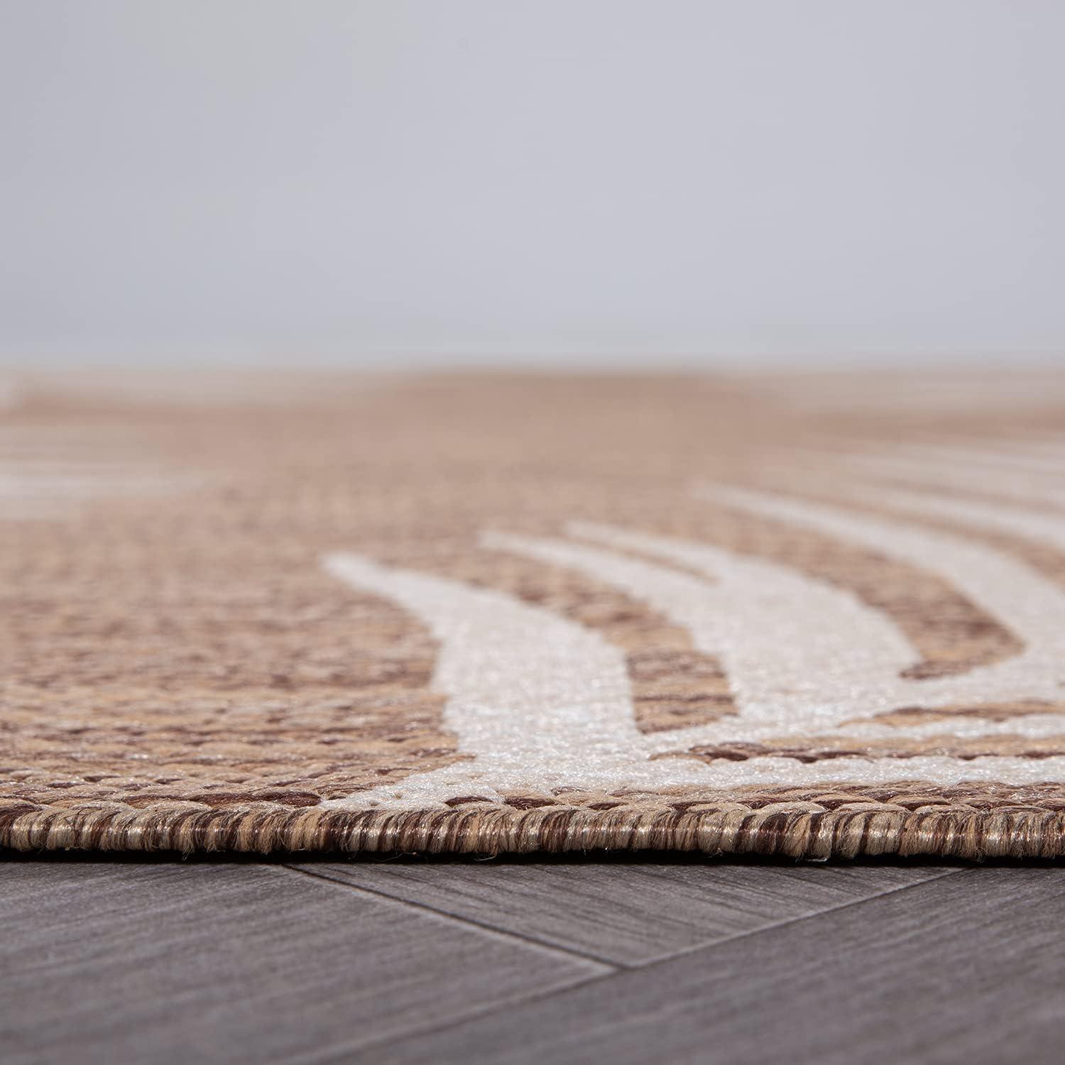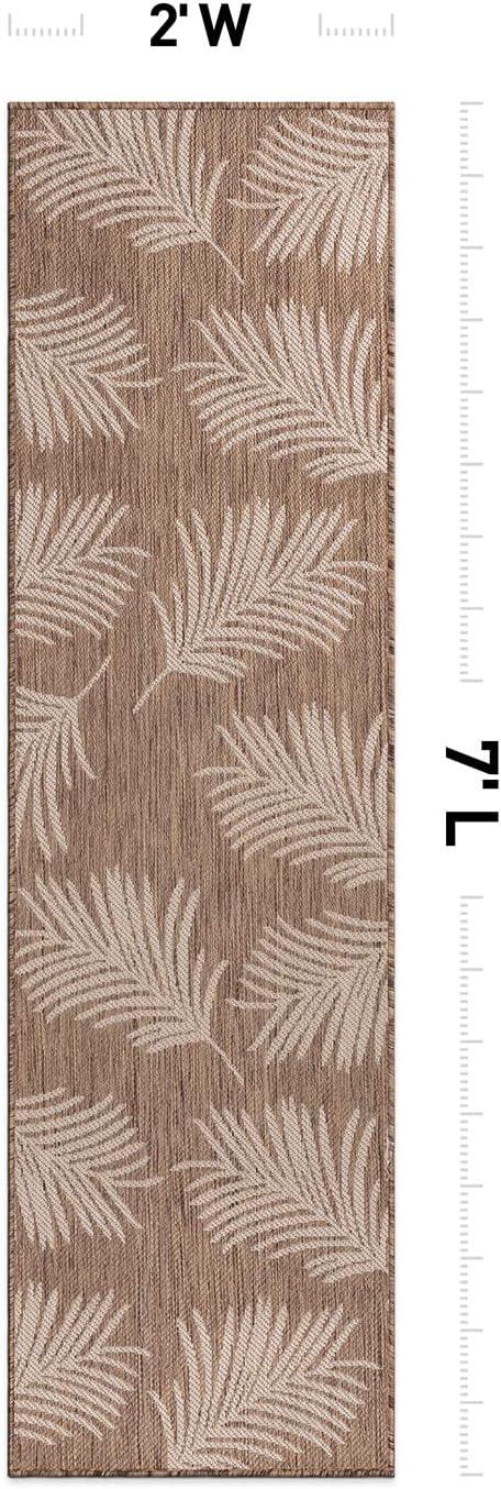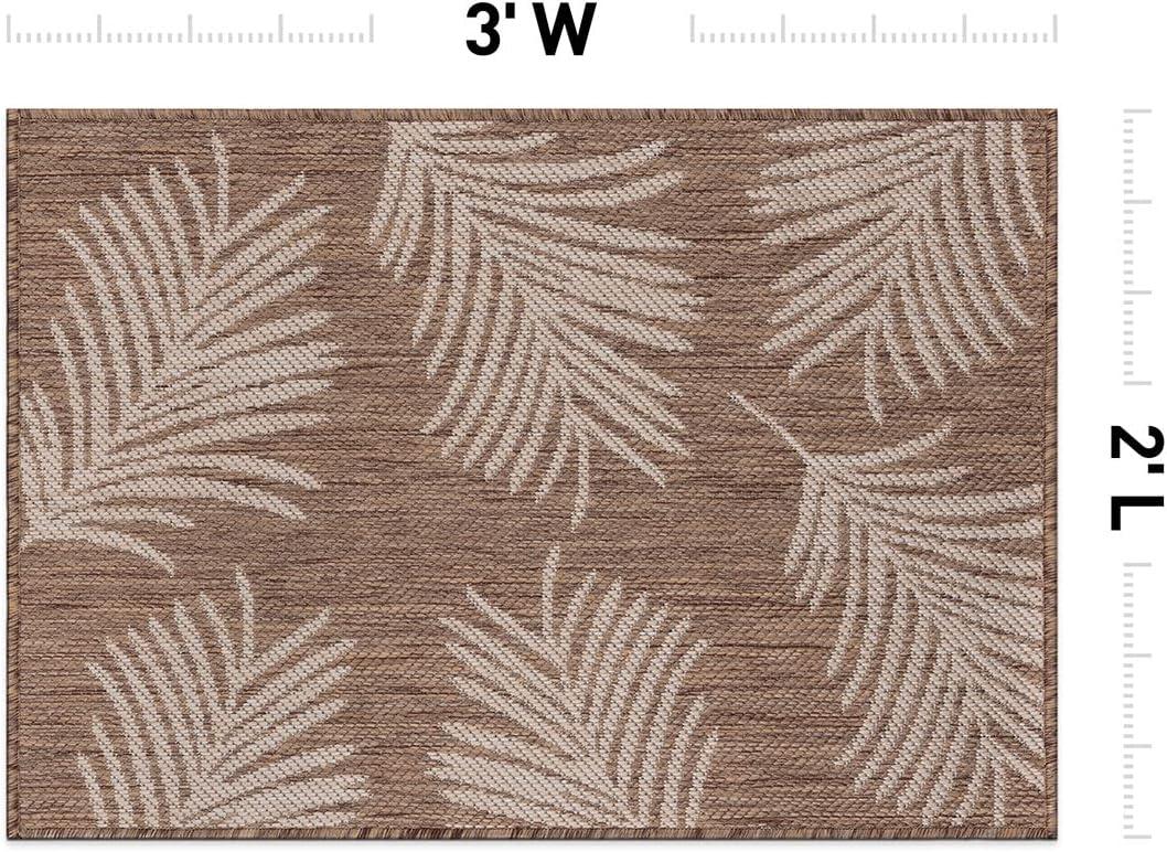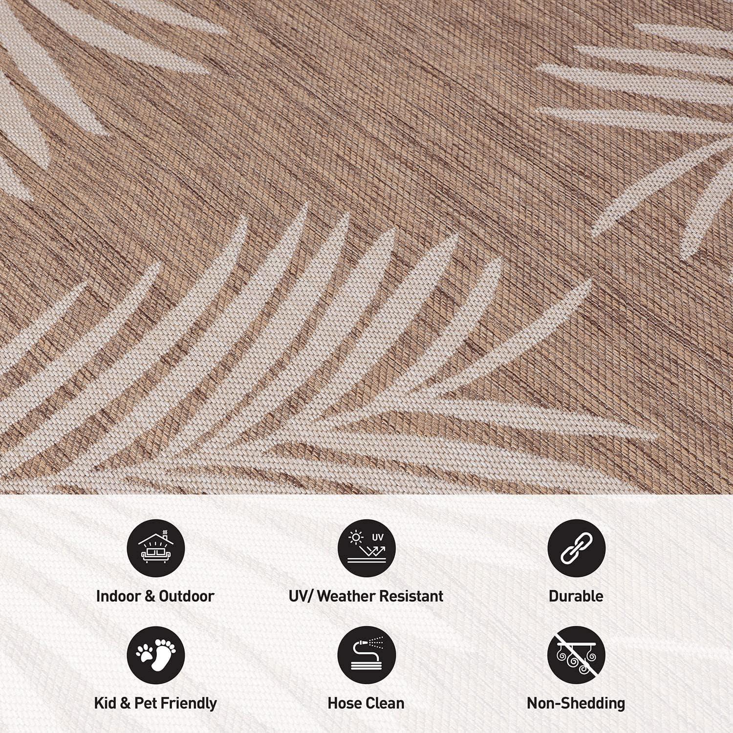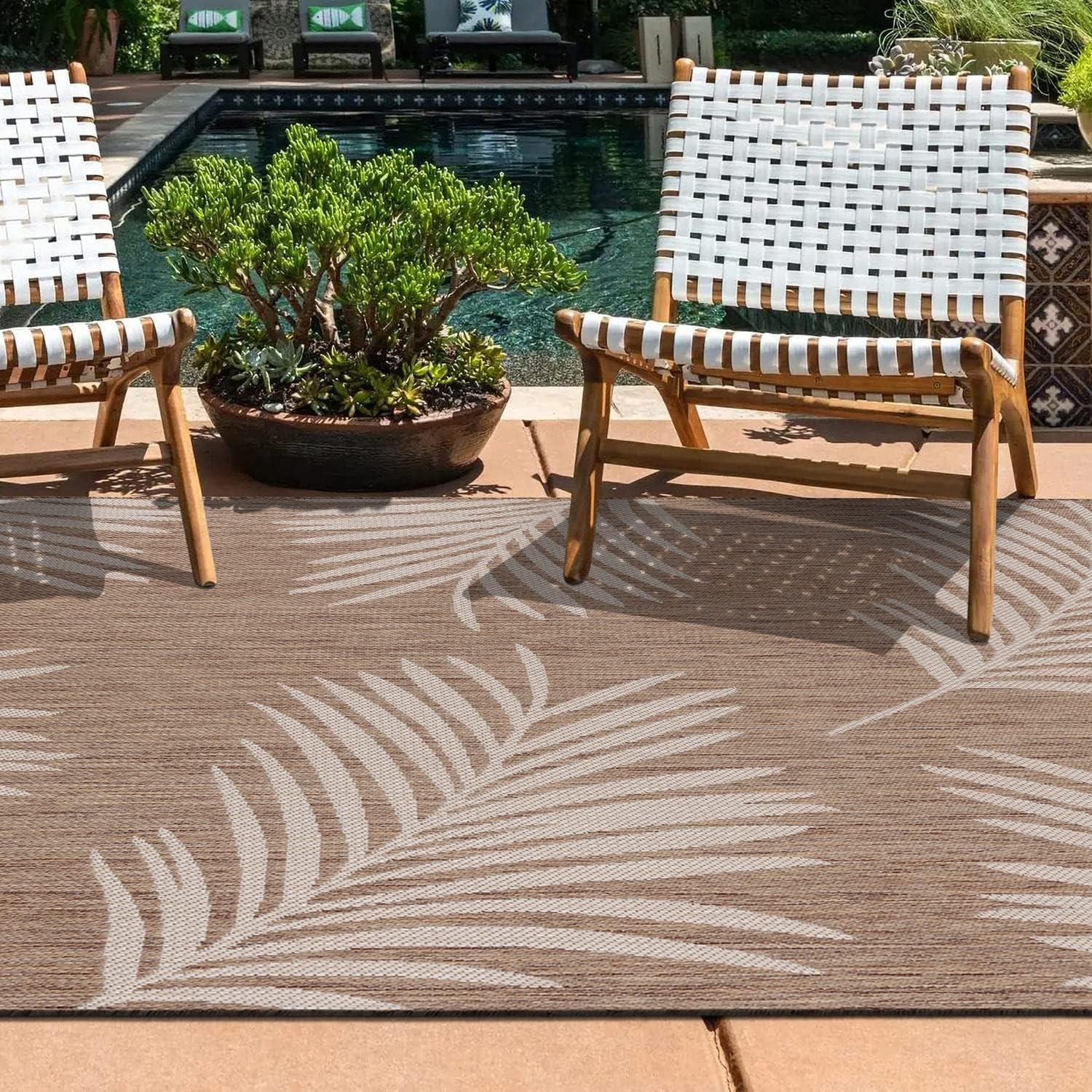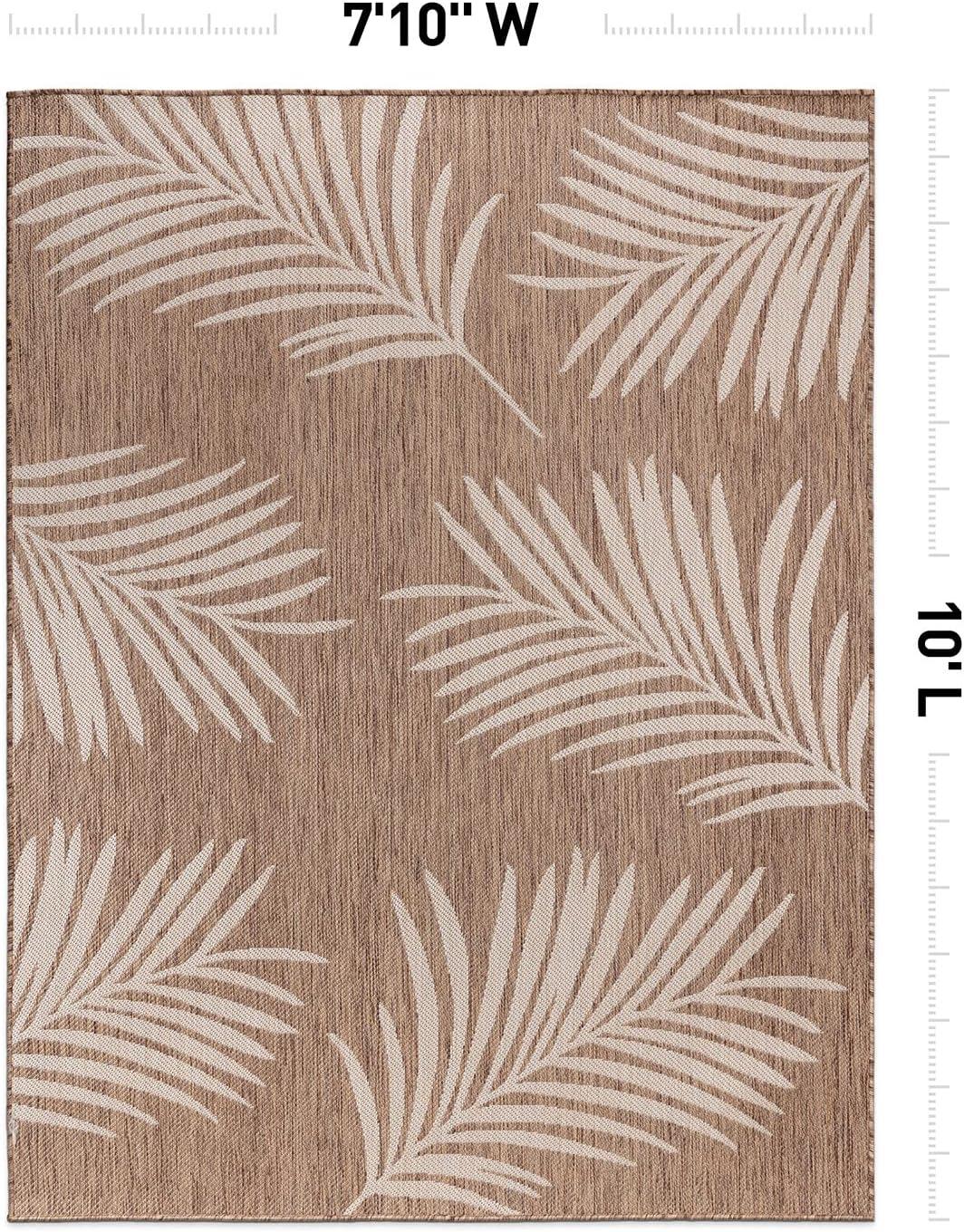 Rugshop Contemporary Palm Leaves Textured Flat Weave Easy Cleaning Outdoor Rugs for Deck,Patio,Backyard Indoor/Outdoor Area Rug 5′ x 7′ Navy(Brown)