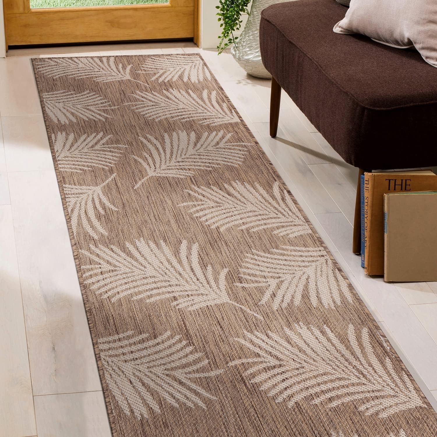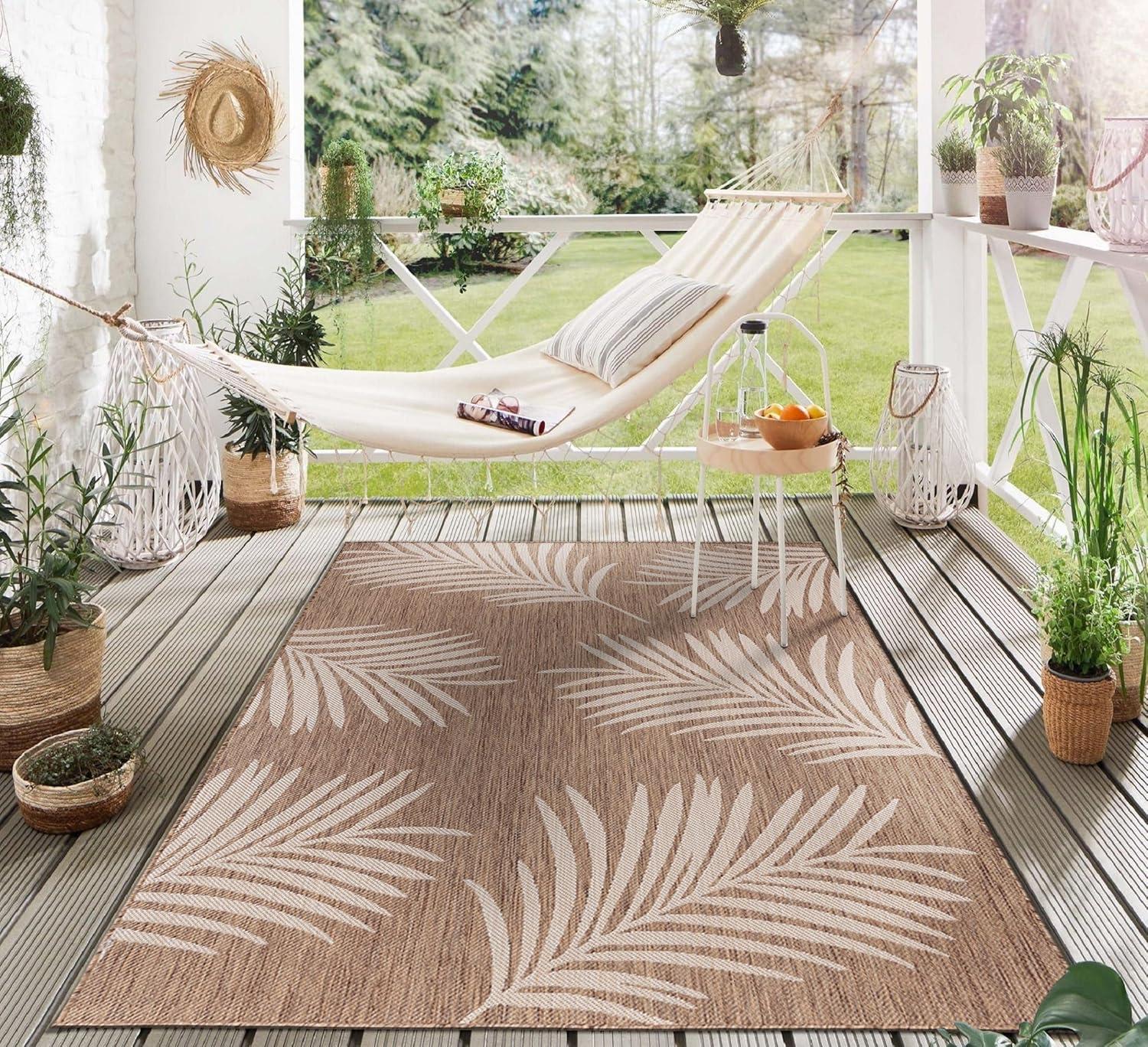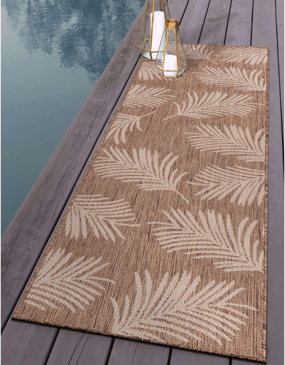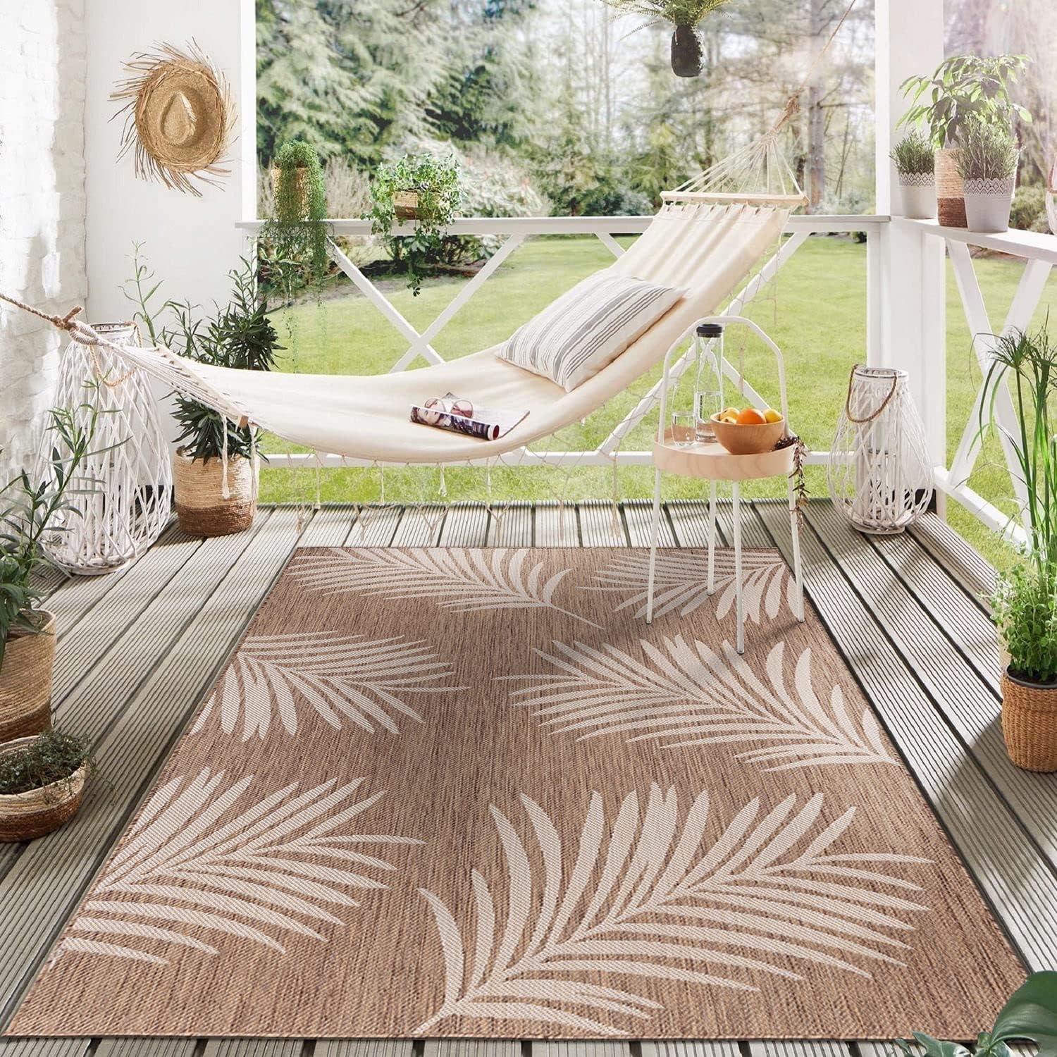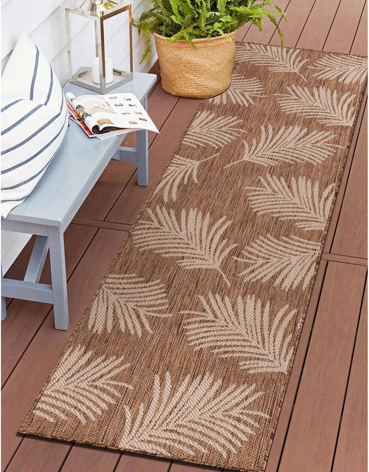Rugshop Contemporary Palm Leaves Textured Flat Weave Easy Cleaning Outdoor Rugs for Deck,Patio,Backyard Indoor/Outdoor Area Rug 5′ x 7′ Navy(Brown)