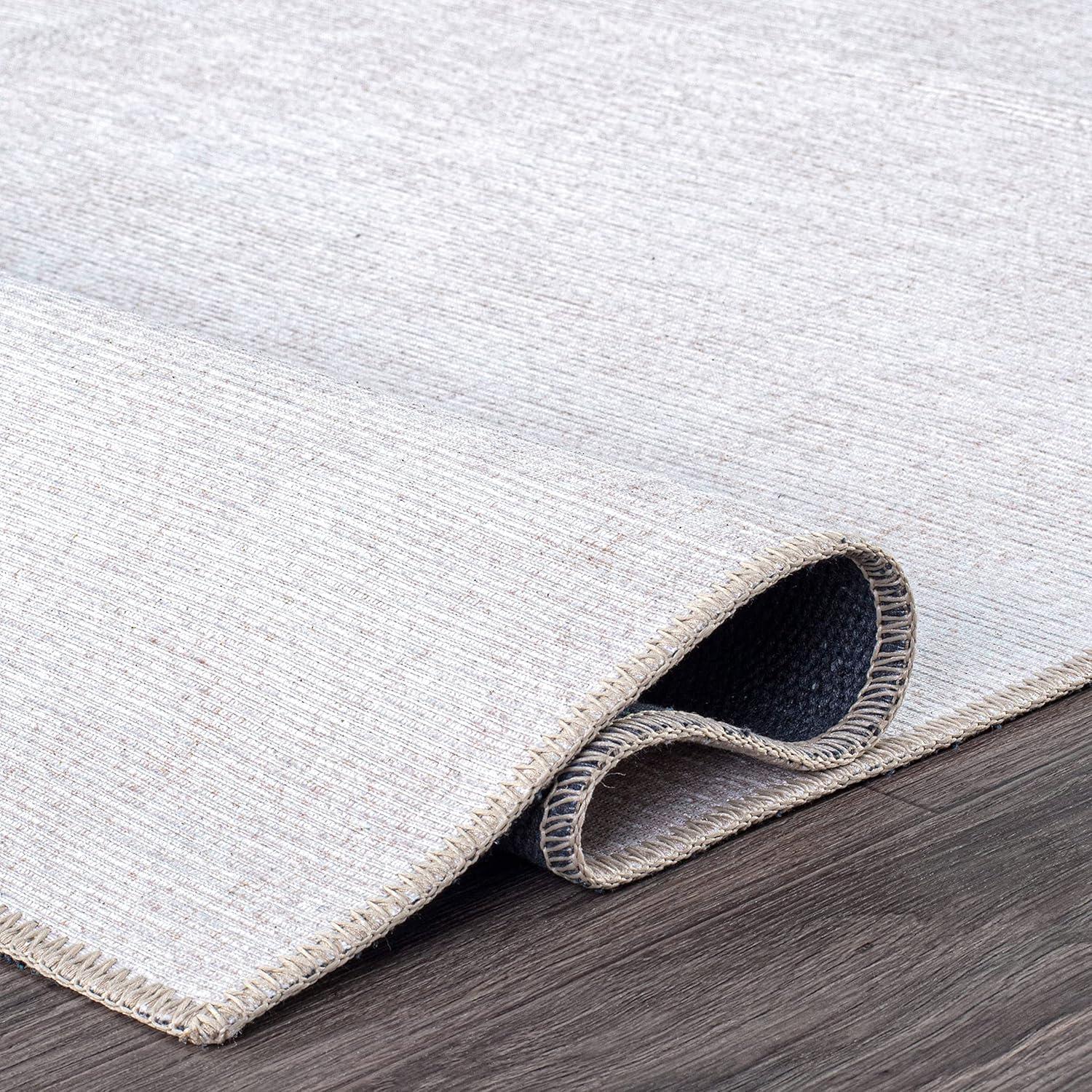 Rugshop Contemporary Solid Stain Resistant Flat Weave Eco Friendly Premium Recycled Machine Washable Area Rug 5’x7′ Cream(Cream)