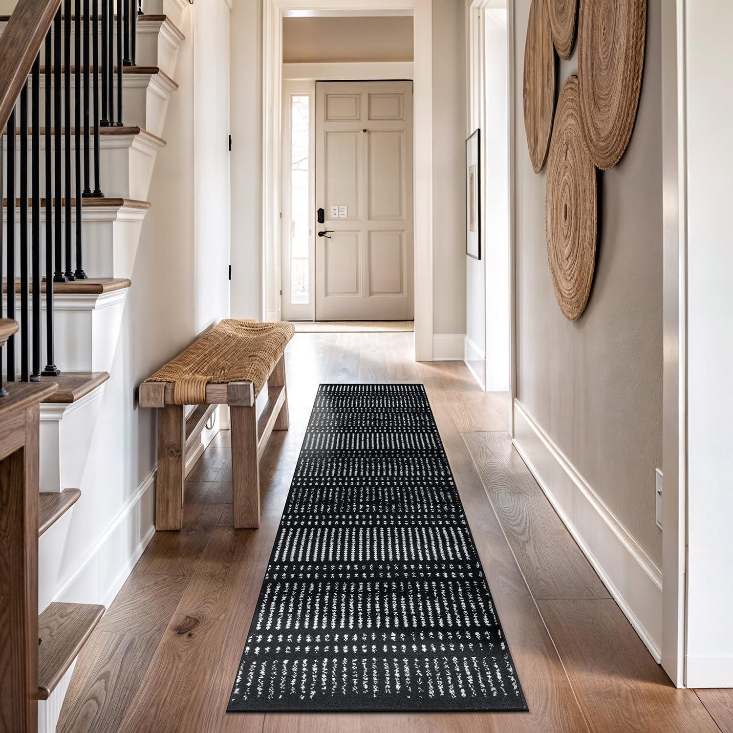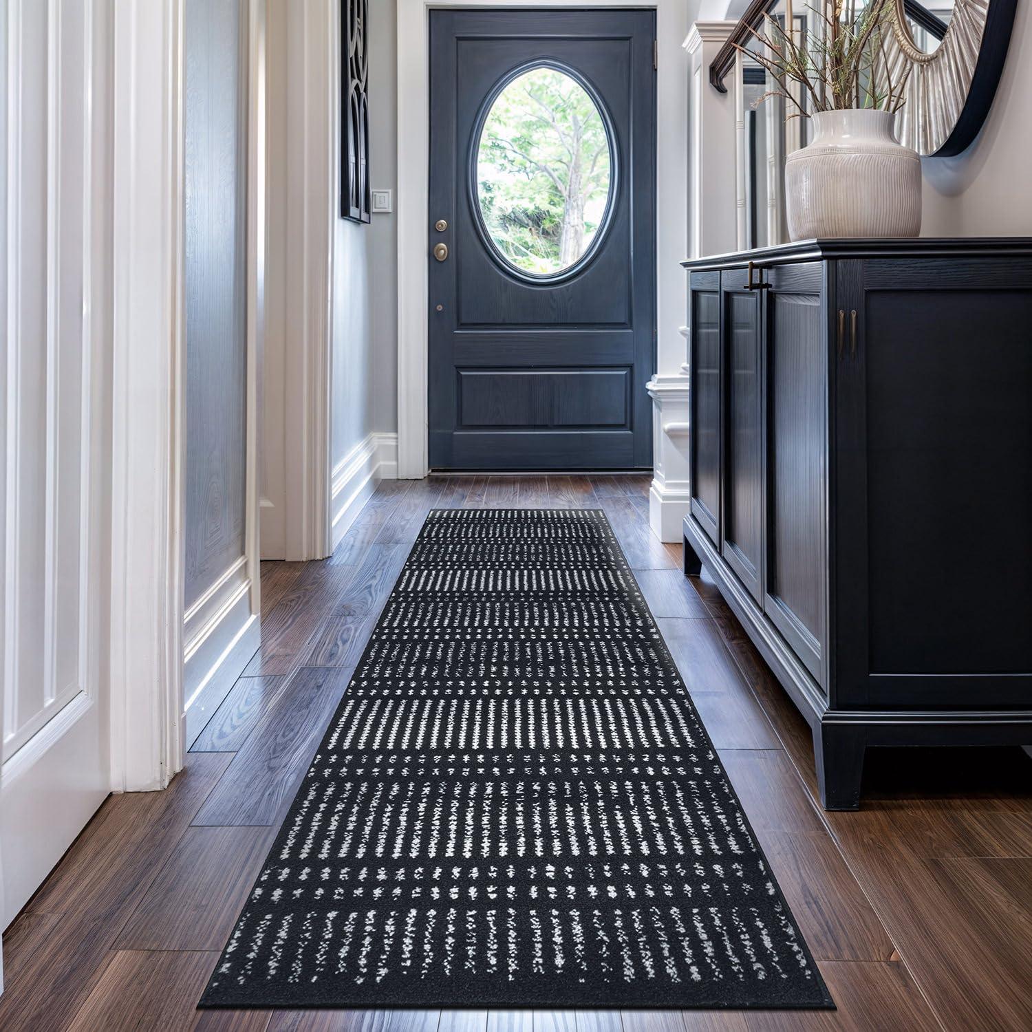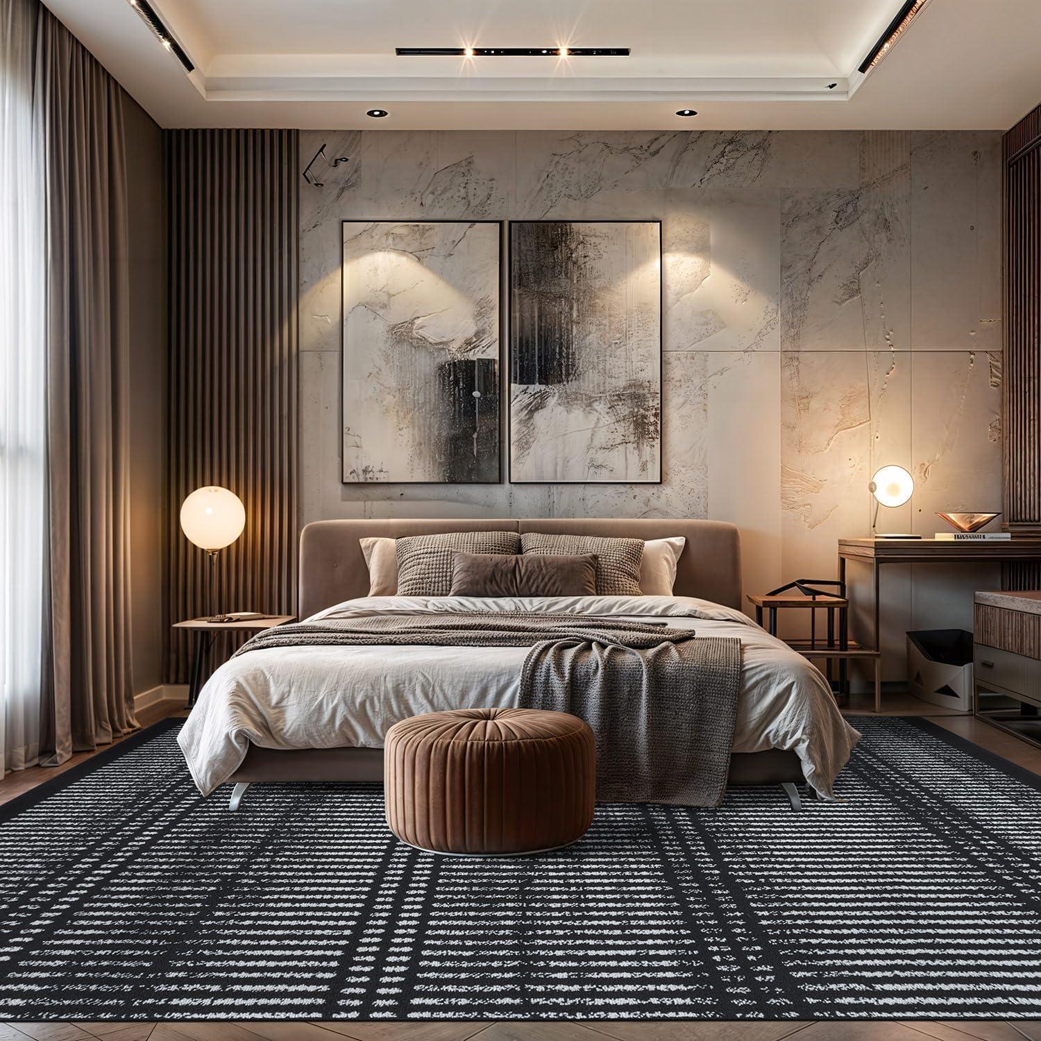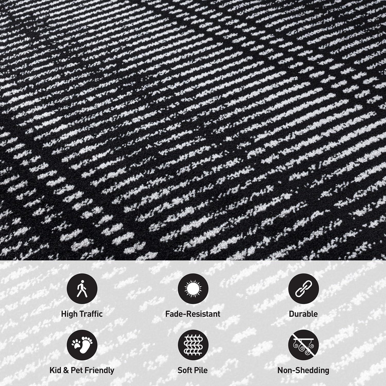 Elevate your home decor with our contemporary modern striped area rug in ivory and black. Designed to provide the perfect balance of comfort and style, this modern area rug boasts a luxurious 0.39-inch pile height, offering a plush and inviting texture that enhances the ambiance of any room. It's not just aesthetically pleasing; practicality is built-in, with hassle-free spot cleaning and vacuuming for easy maintenance. This striped area rug is a testament to craftsmanship, meticulously woven from top-tier polypropylene fibers, and its robust jute backing ensures both resilience and beauty. It promises a rug that stands the test of time while adding a touch of contemporary elegance to your space. Revitalize your living area with our modern striped area rug, where comfort meets sophistication and style meets durability. Redefine your home's aesthetic and enjoy the lasting impression this exceptional rug will make on your decor.