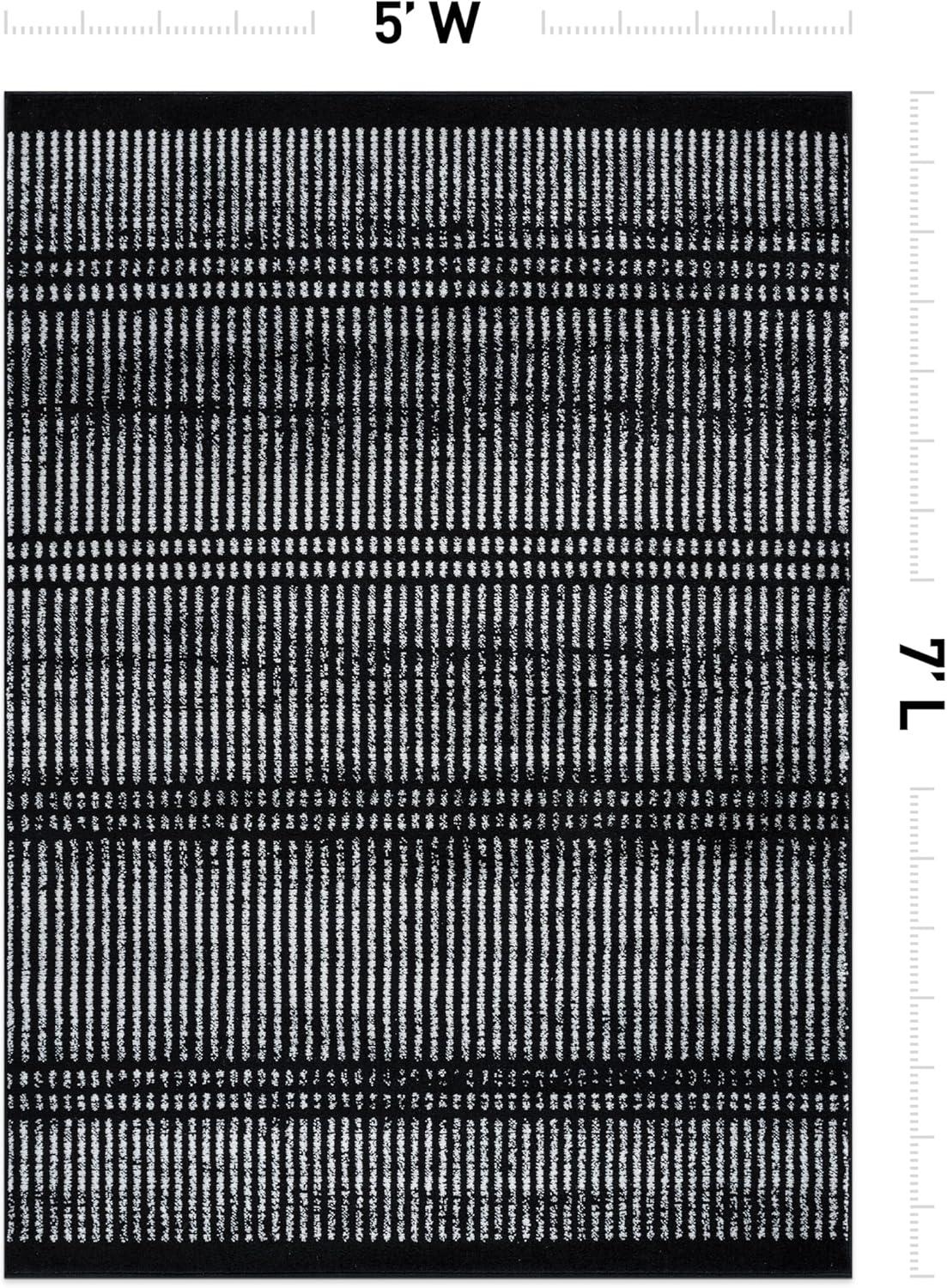 Rugshop Contemporary Stripe Lines High Traffic Living Room,Bedroom,Kitchen, Home Office Area Rug 5′ x 7′ Cream(Black)