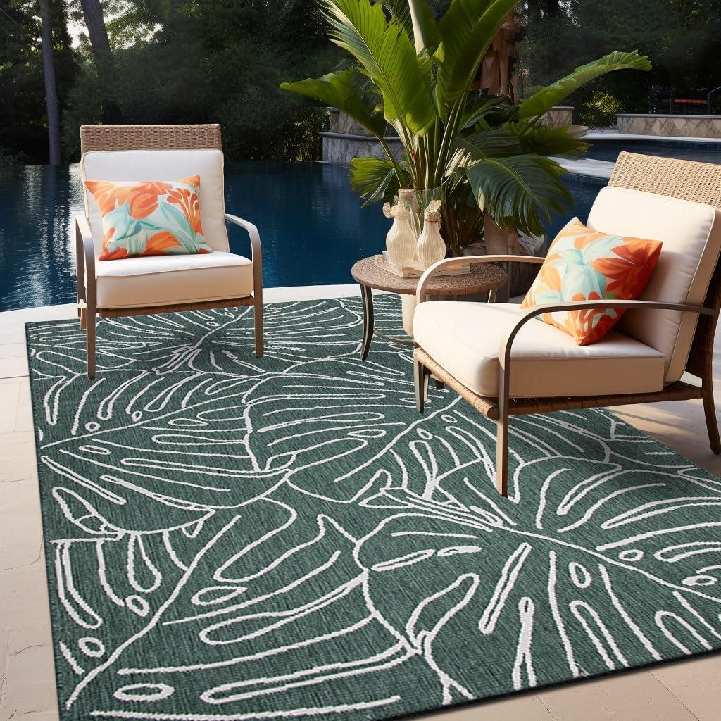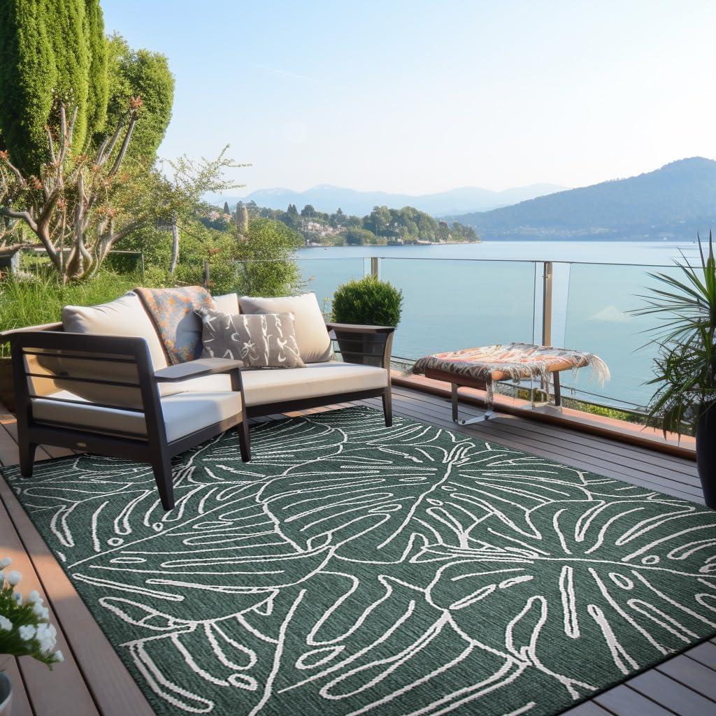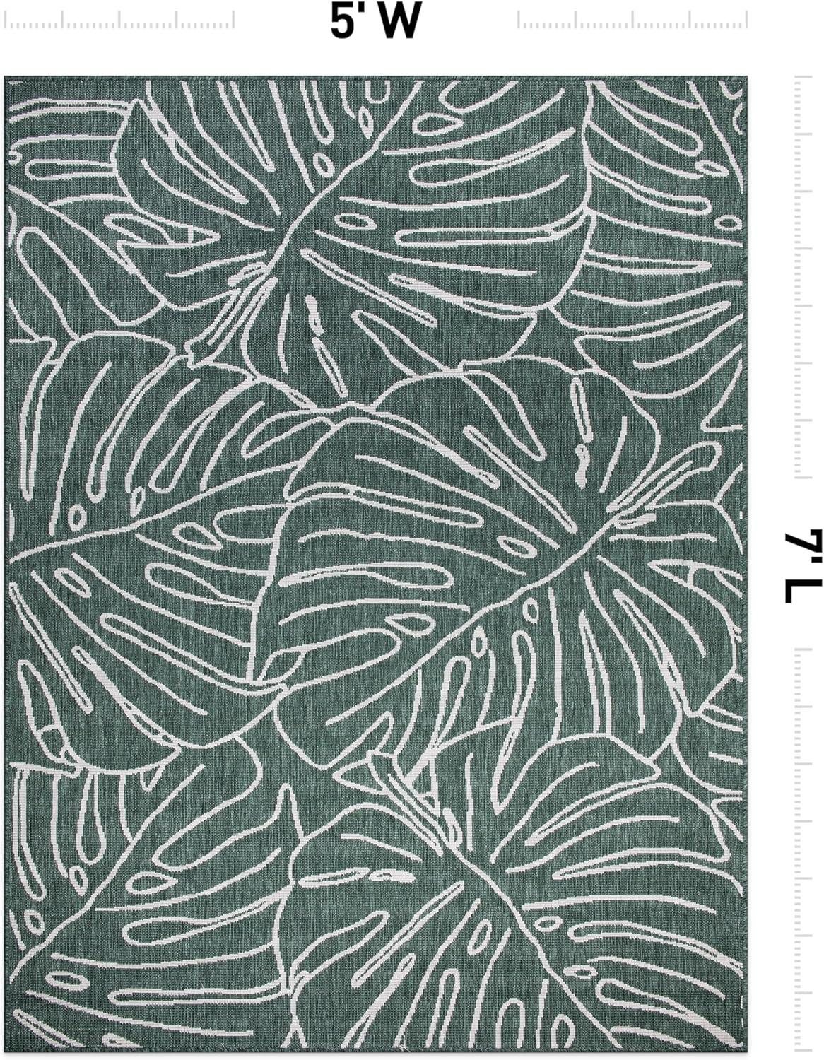 Rugshop Contemporary Tropical Leaves Weather Resistant Indoor/Outdoor Area Rug 5′ x 7′ Green(Green)