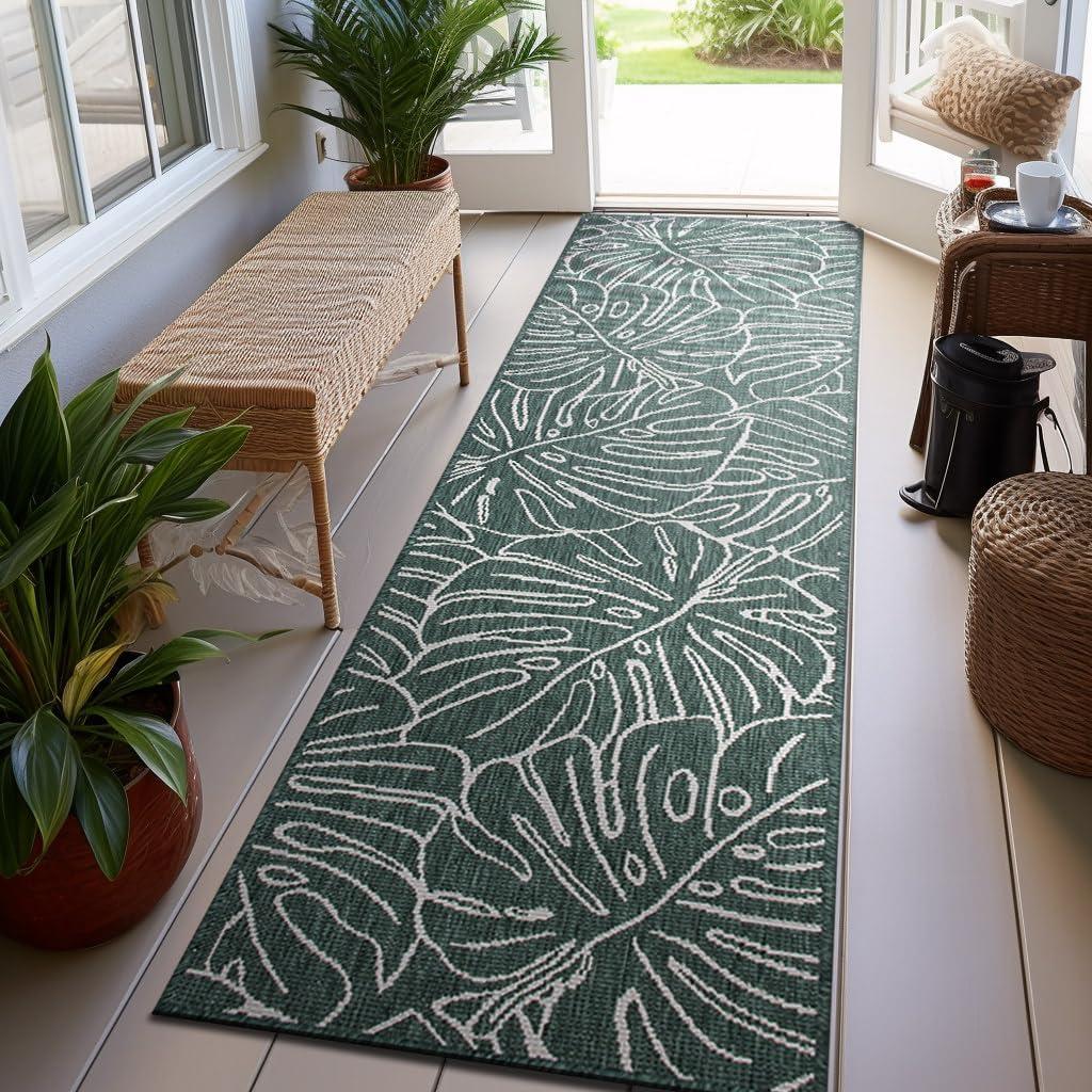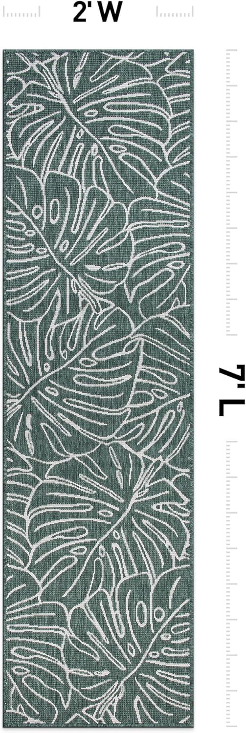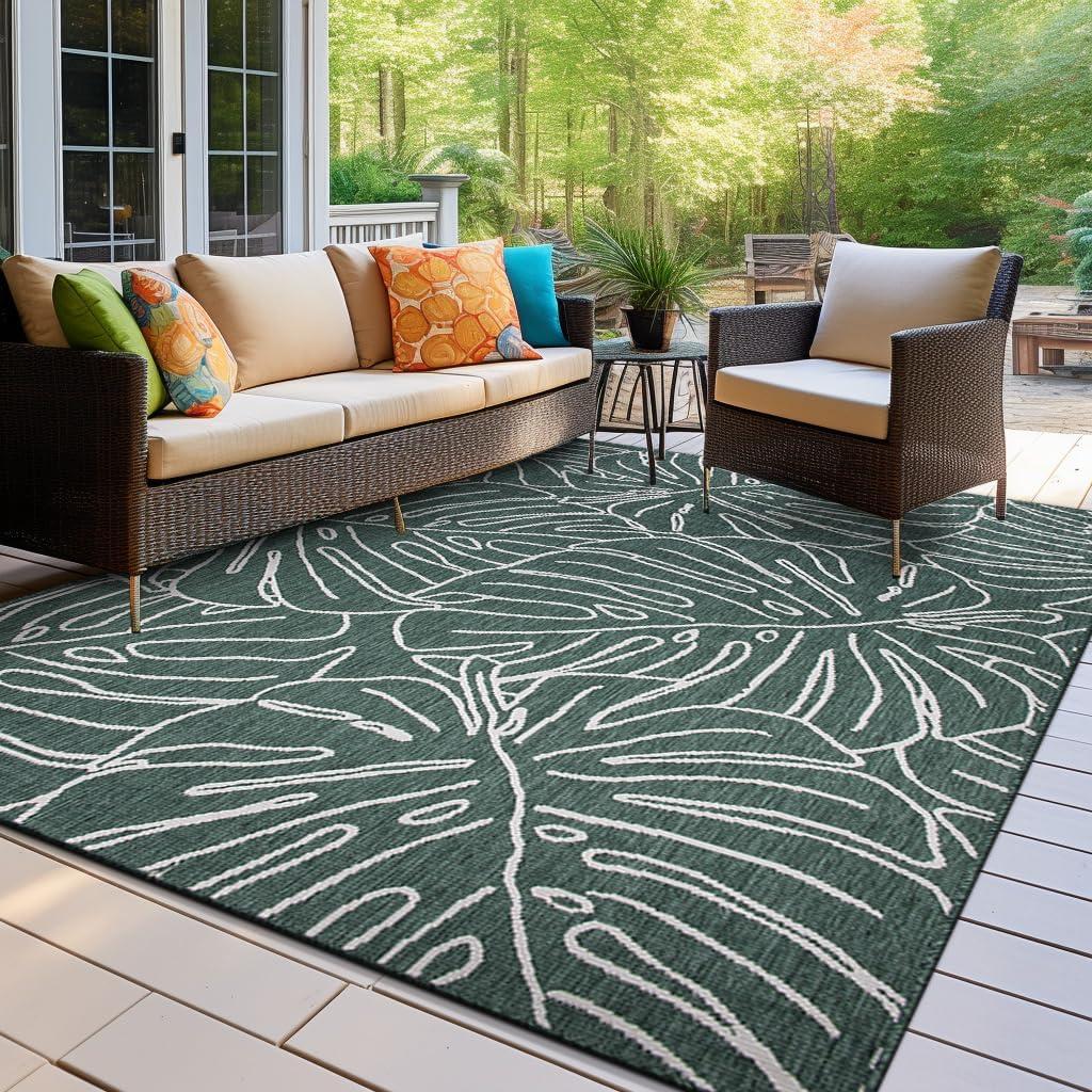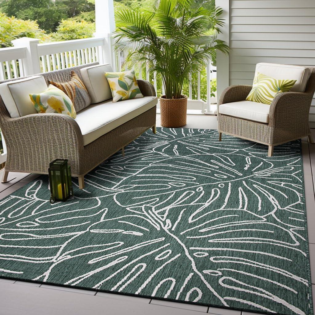 Rugshop Contemporary Tropical Leaves Weather Resistant Indoor/Outdoor Area Rug 5′ x 7′ Green(Green)