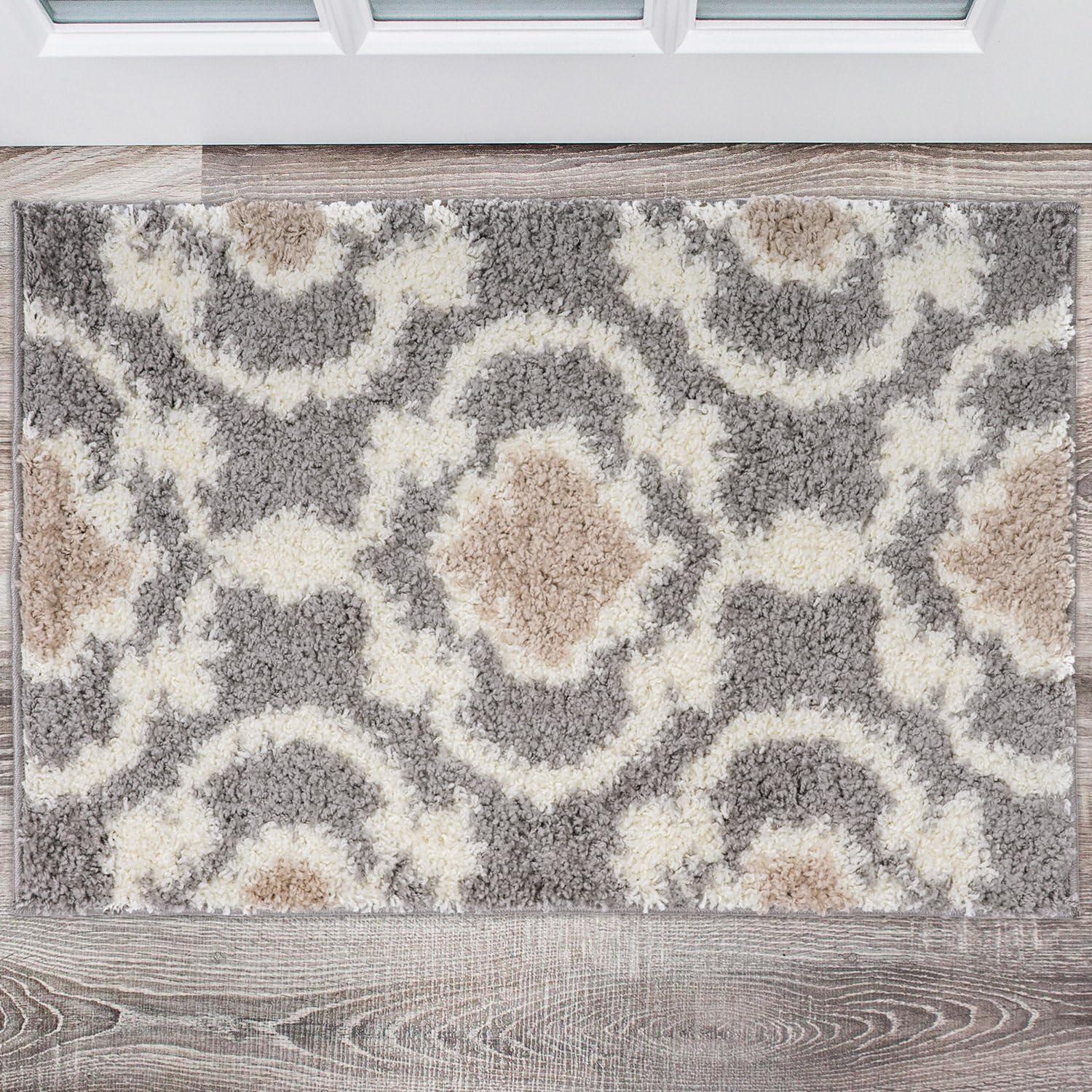 Rugshop Cozy Moroccan Trellis Indoor Shag Area Rug 2′ x 3′ Gray/Cream