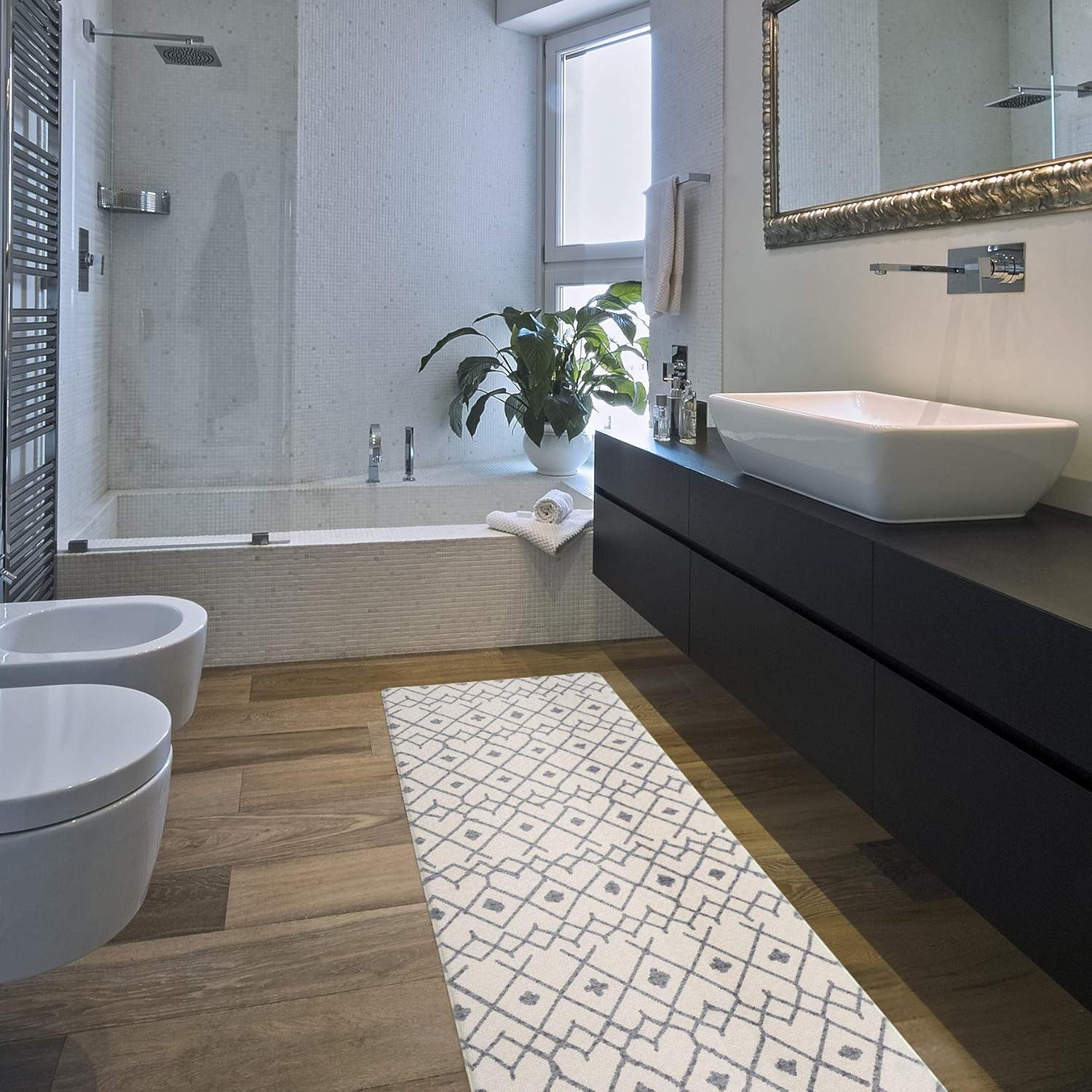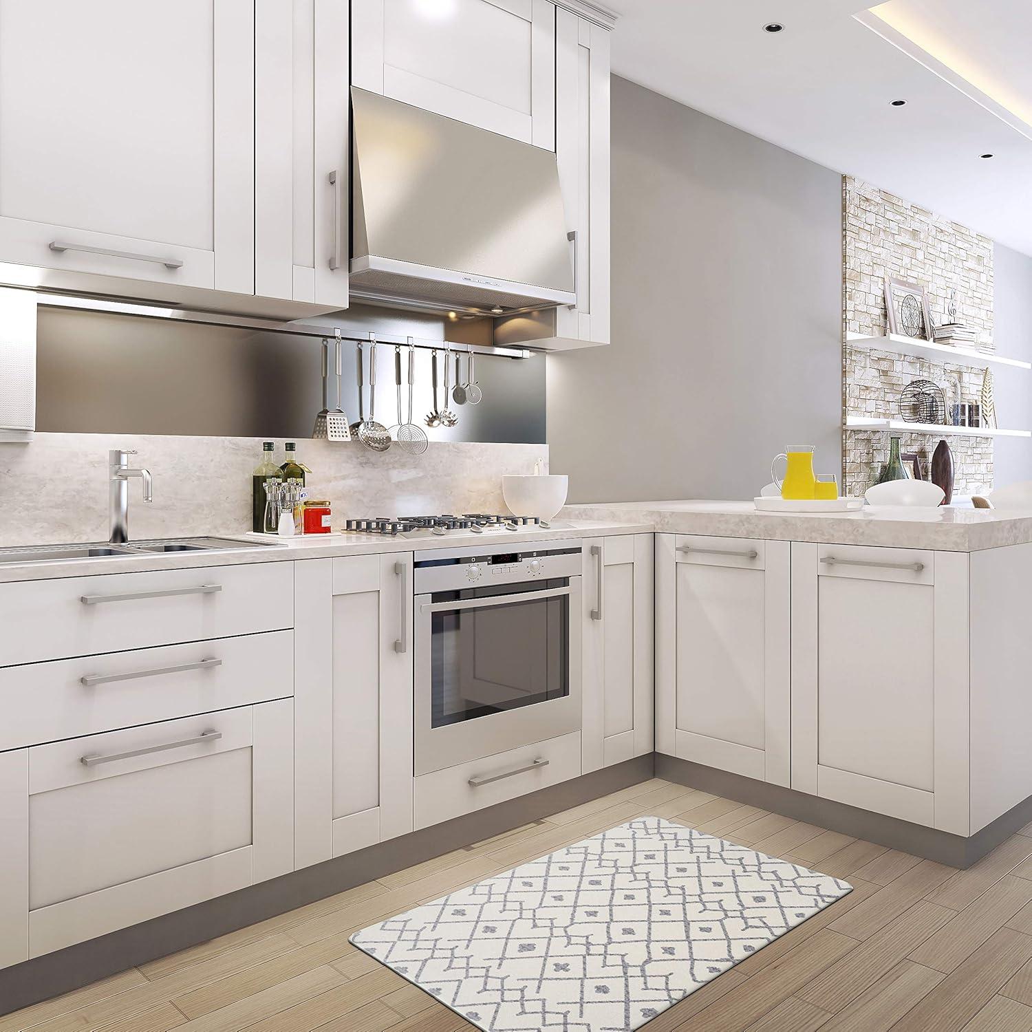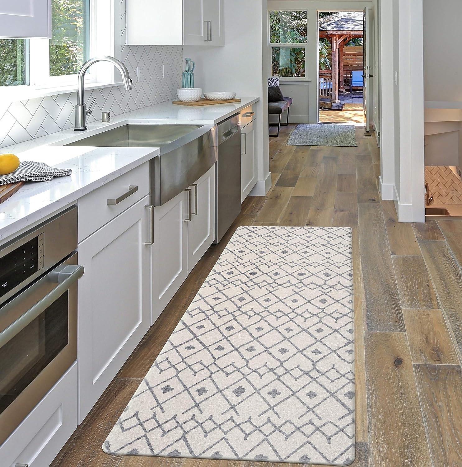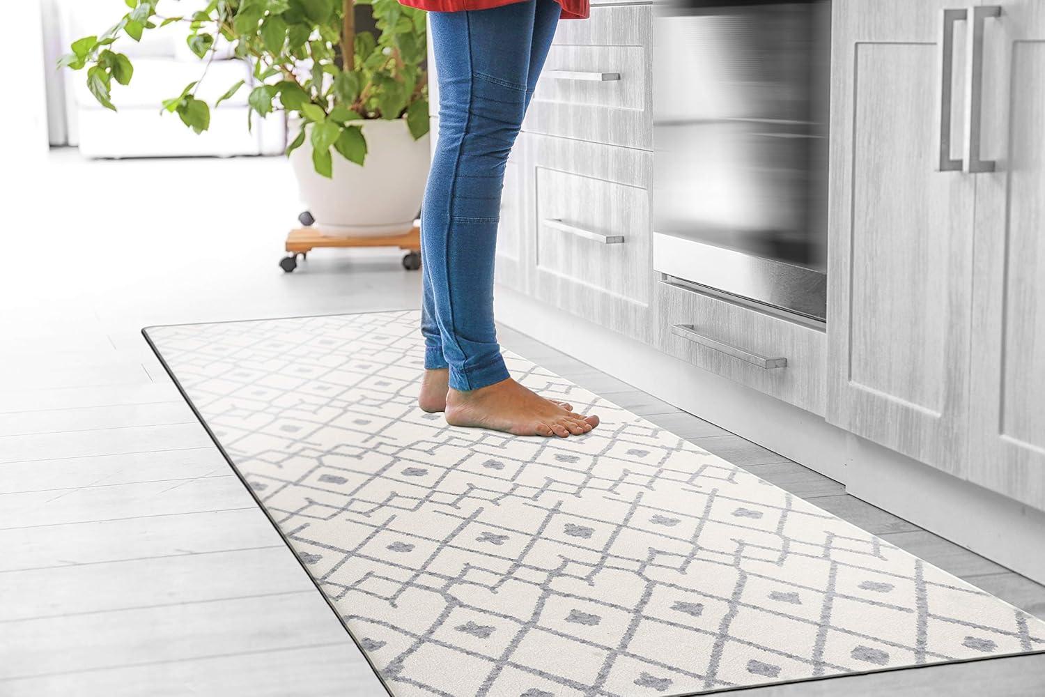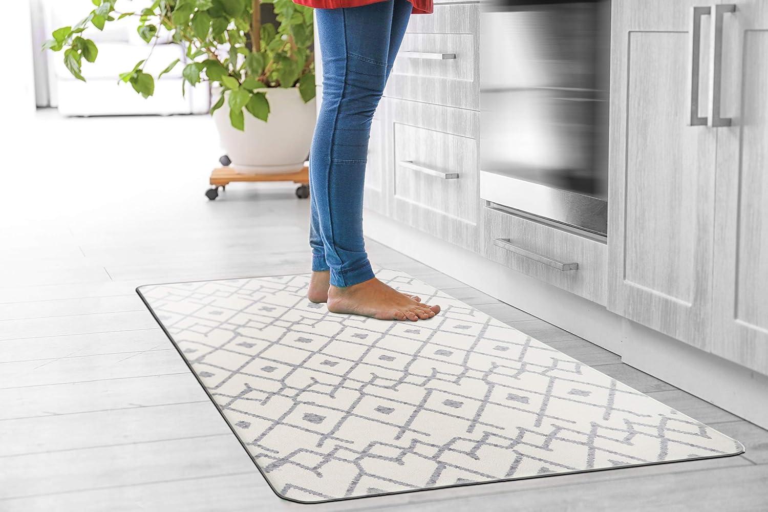 Rugshop Cream Anti Fatigue Mat – 18″ x 47″ – Modern Boho Trellis Design for Comfortable Standing(Cream)