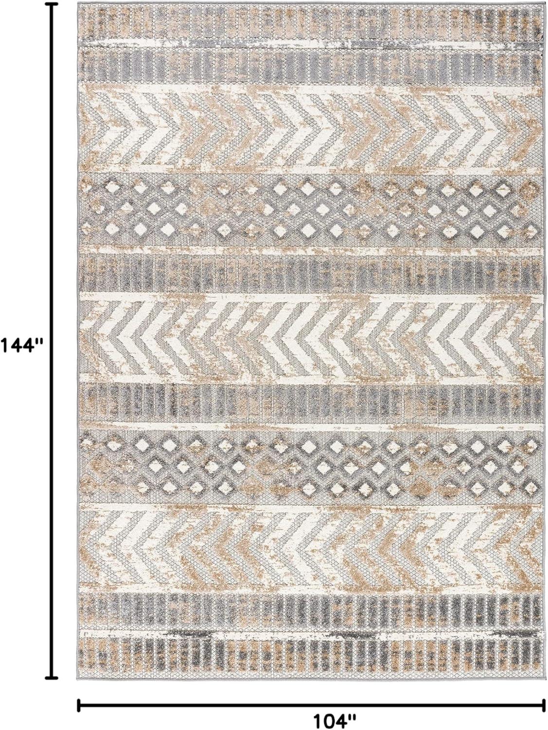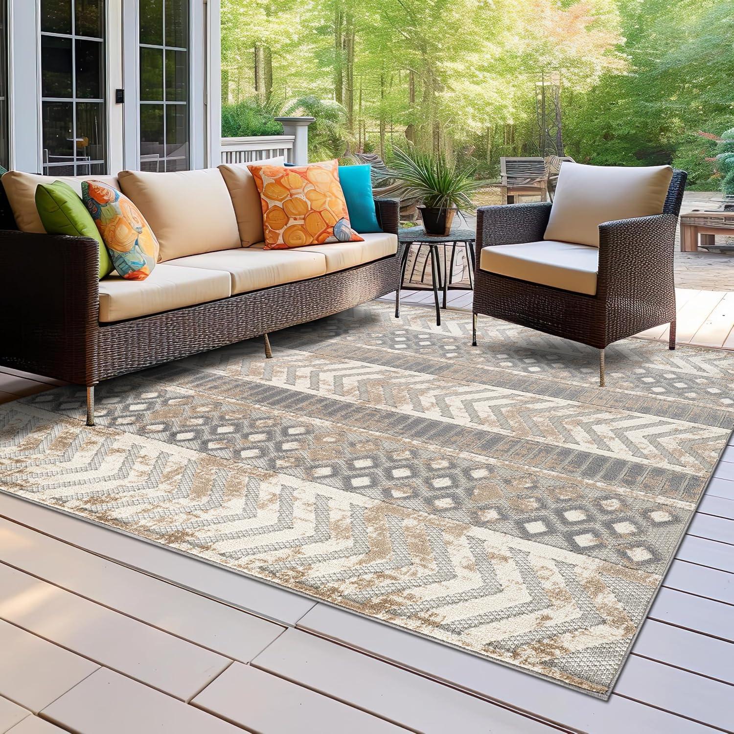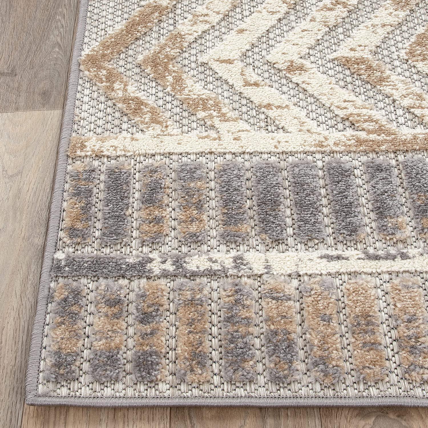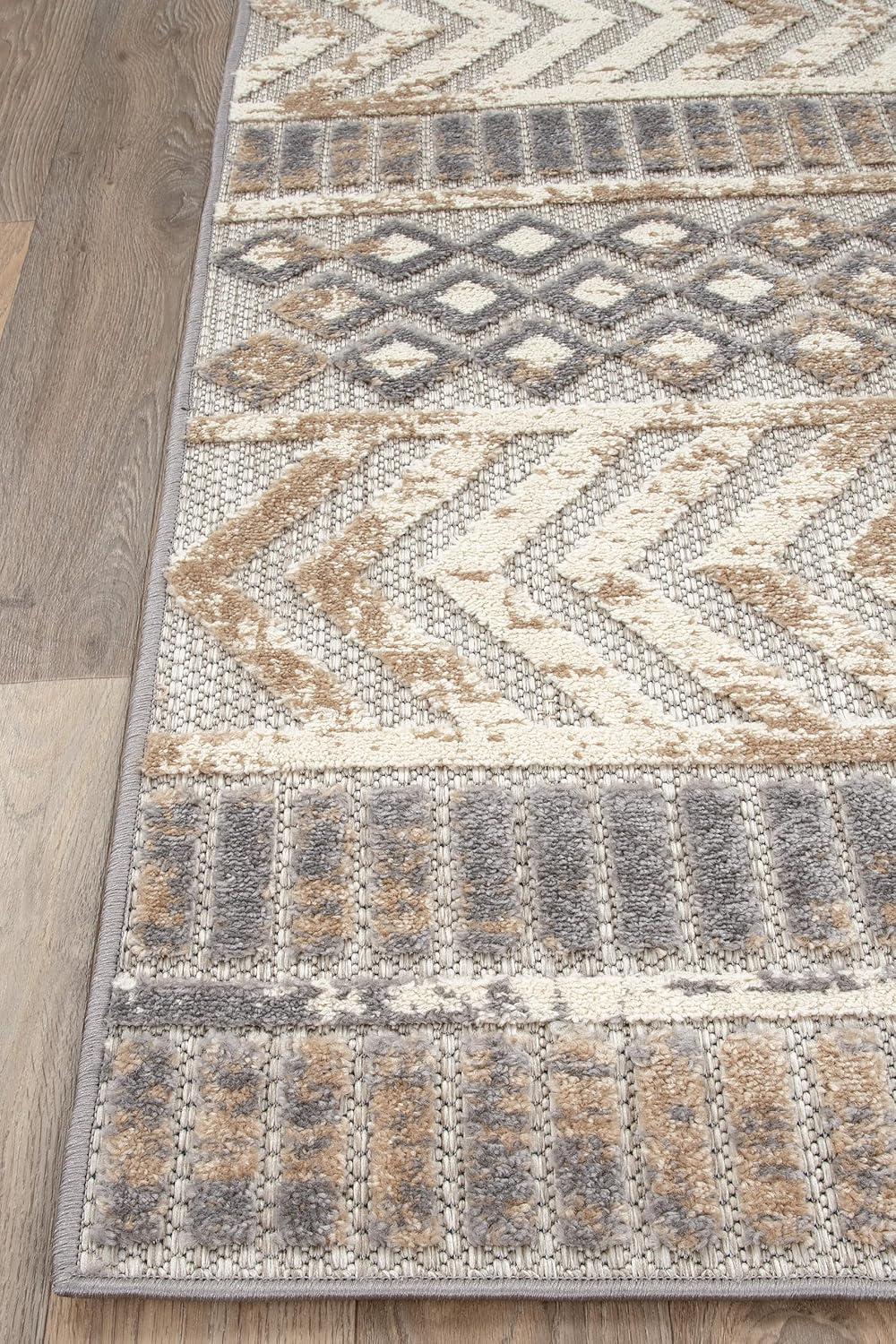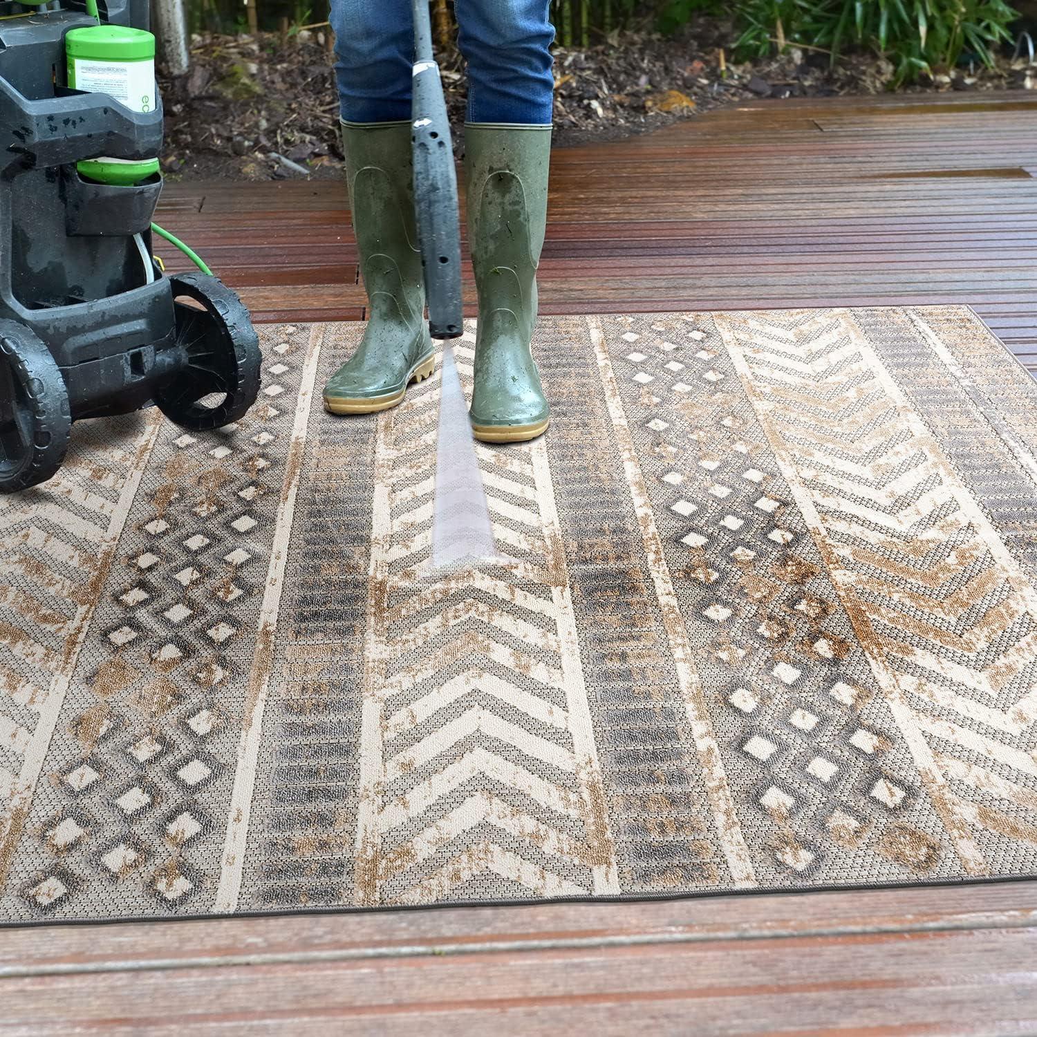 Rugshop Distressed Geometric Indoor/Outdoor Beige Area Rug Modern Tribal Stripe, Durable Stain Resistant Perfect for Patio, Backyard, Deck and Outdoor Lounge 5′ x 7′(Beige)