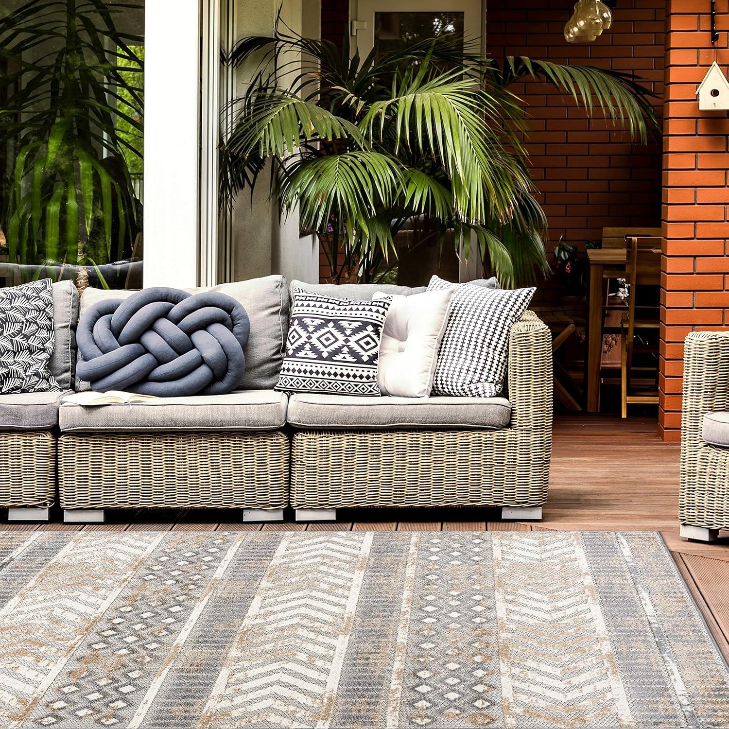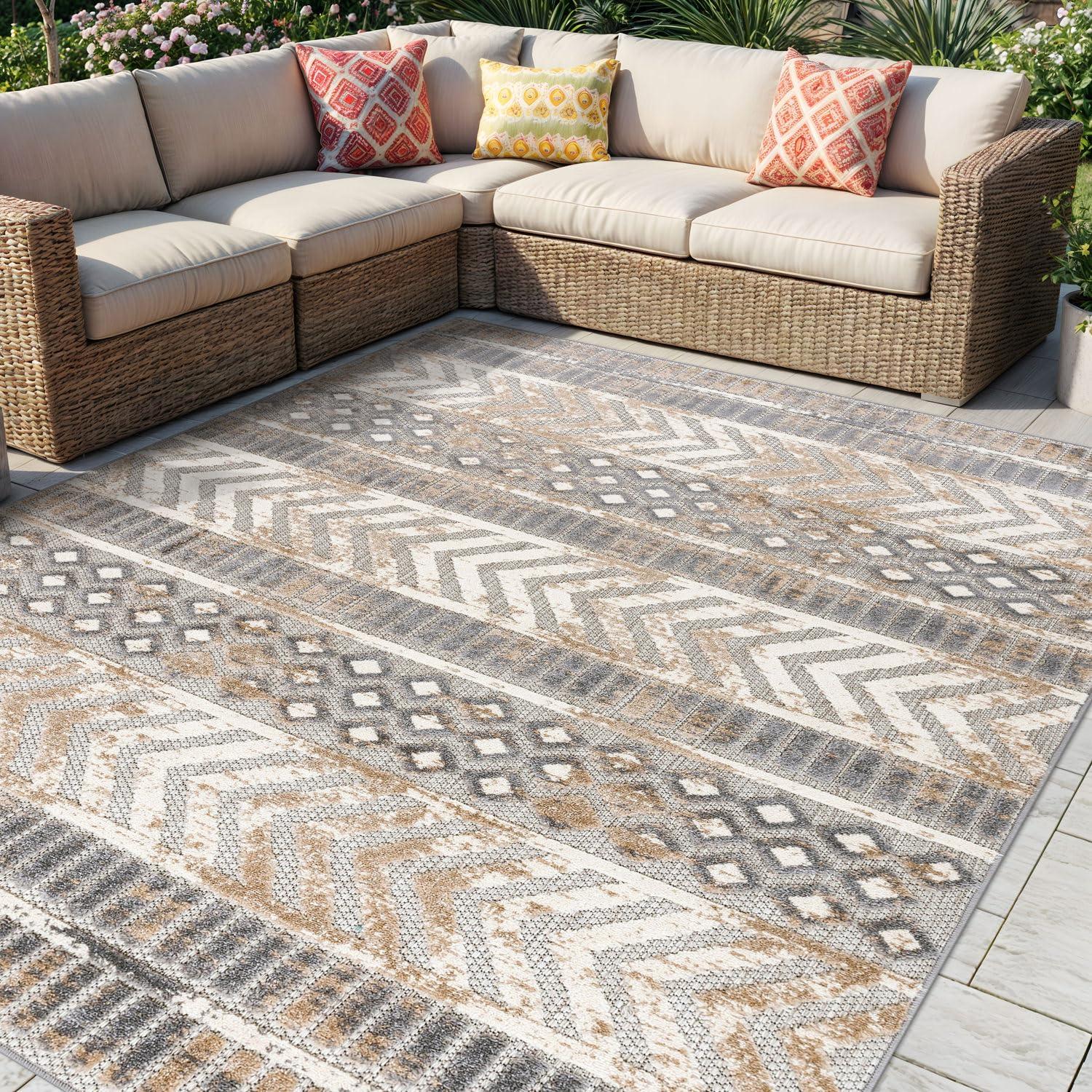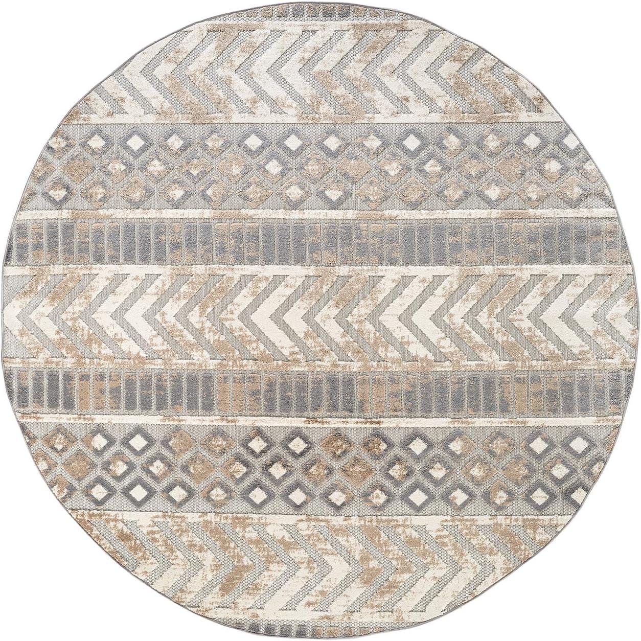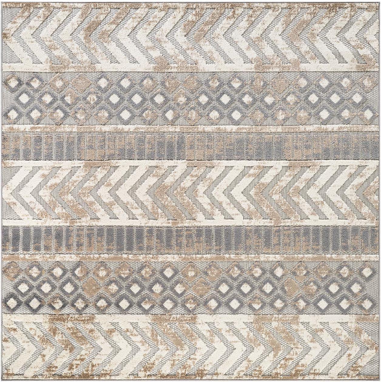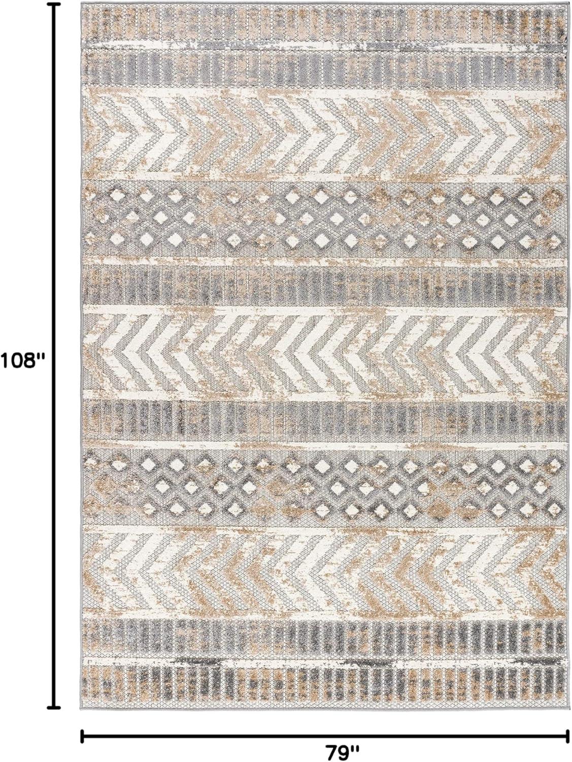 Rugshop Distressed Geometric Indoor/Outdoor Beige Area Rug Modern Tribal Stripe, Durable Stain Resistant Perfect for Patio, Backyard, Deck and Outdoor Lounge 5′ x 7′(Beige)
