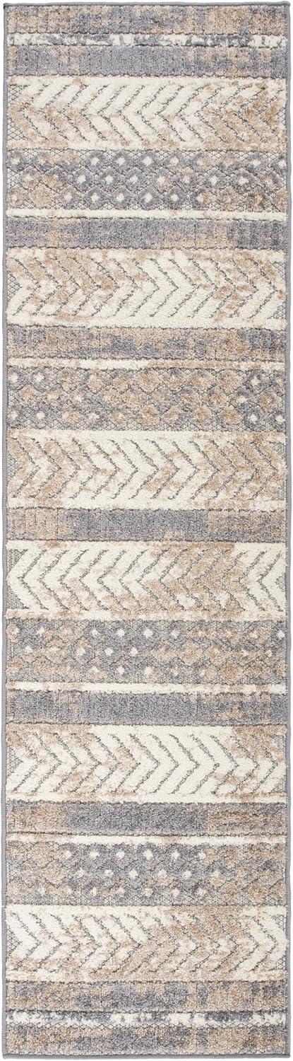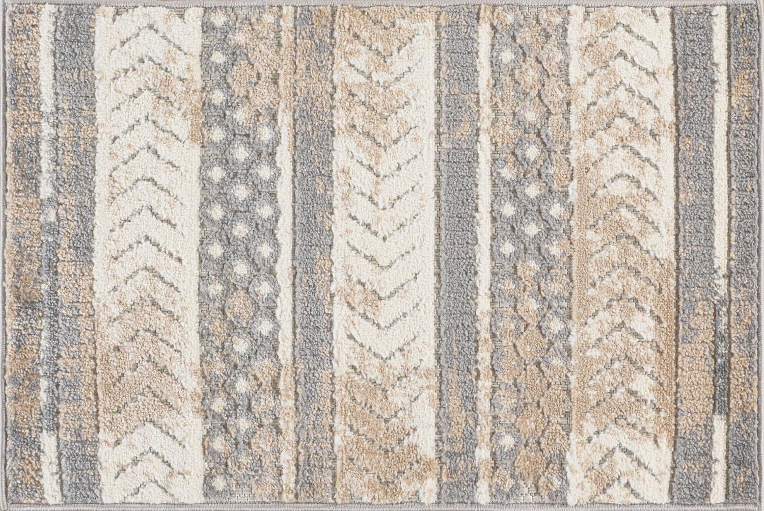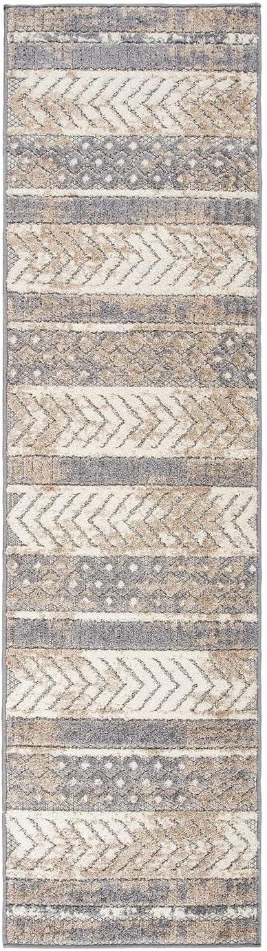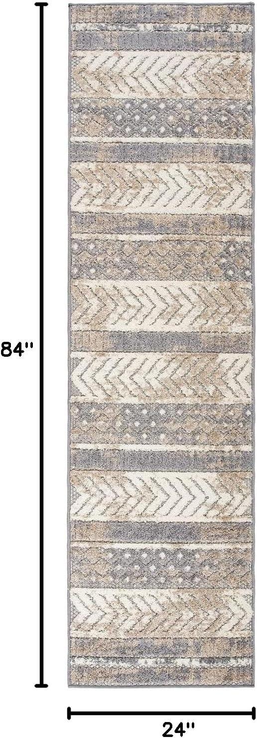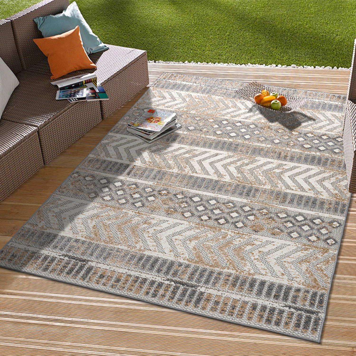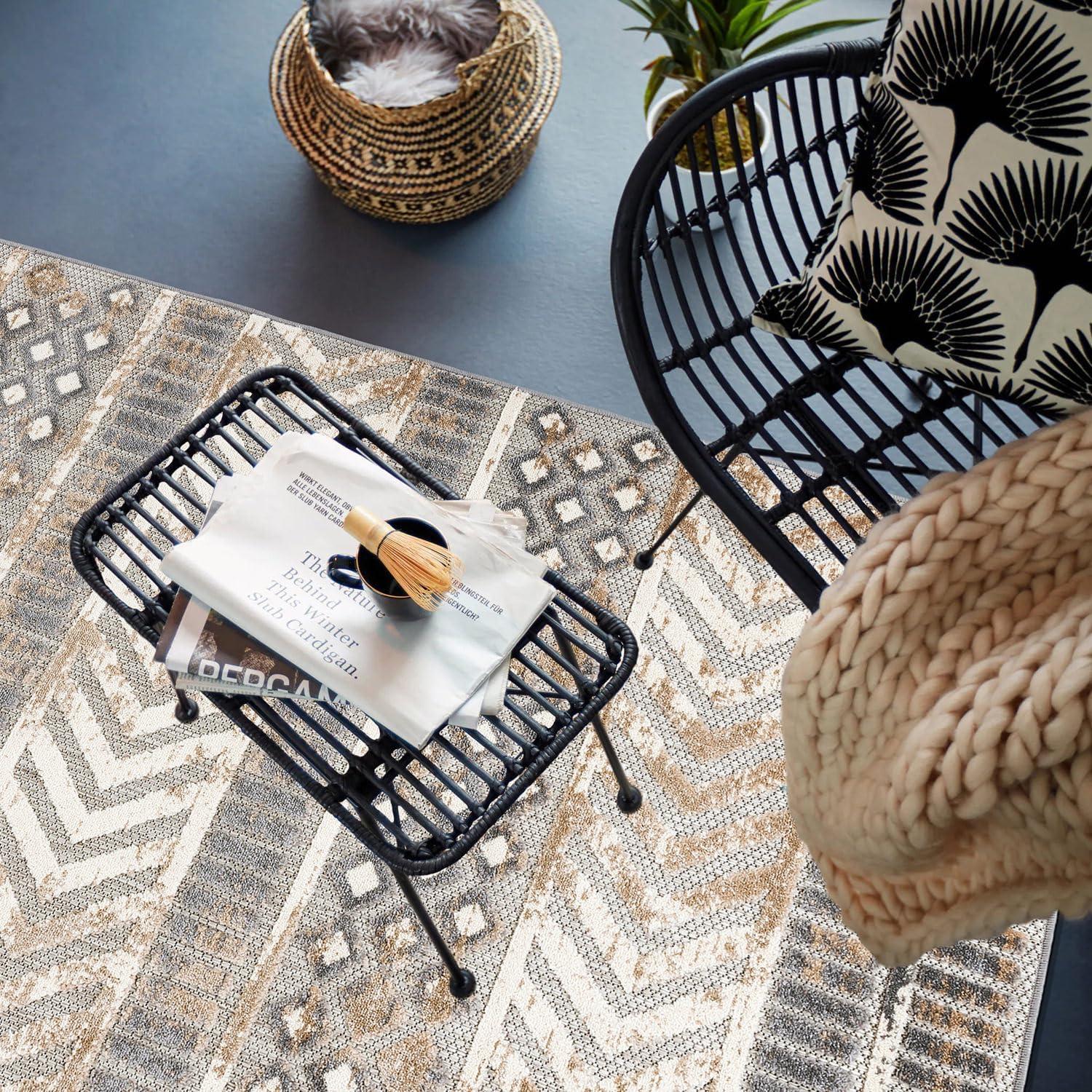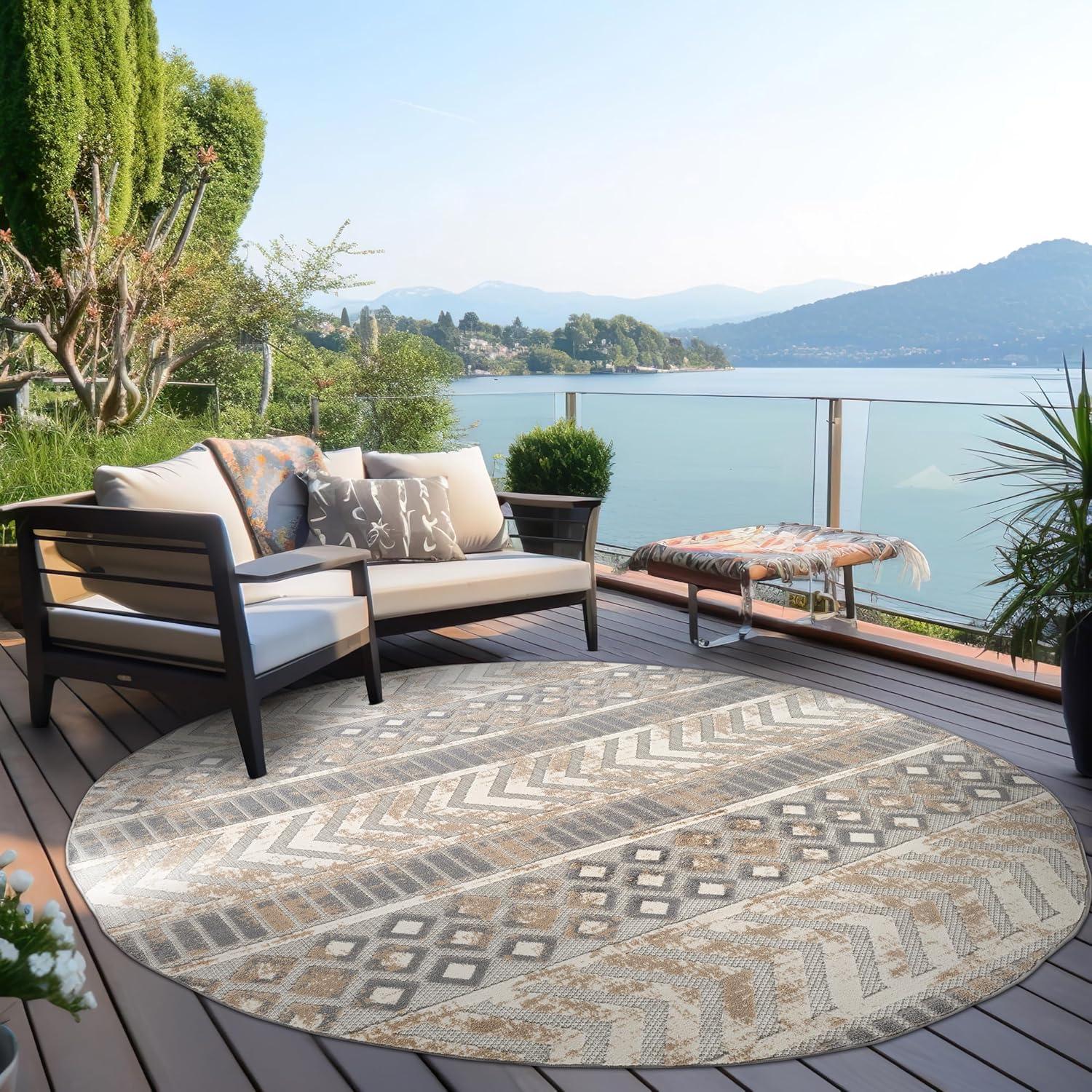 Rugshop Distressed Geometric Indoor/Outdoor Beige Area Rug Modern Tribal Stripe, Durable Stain Resistant Perfect for Patio, Backyard, Deck and Outdoor Lounge 5′ x 7′(Beige)