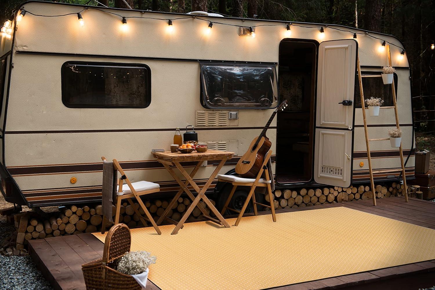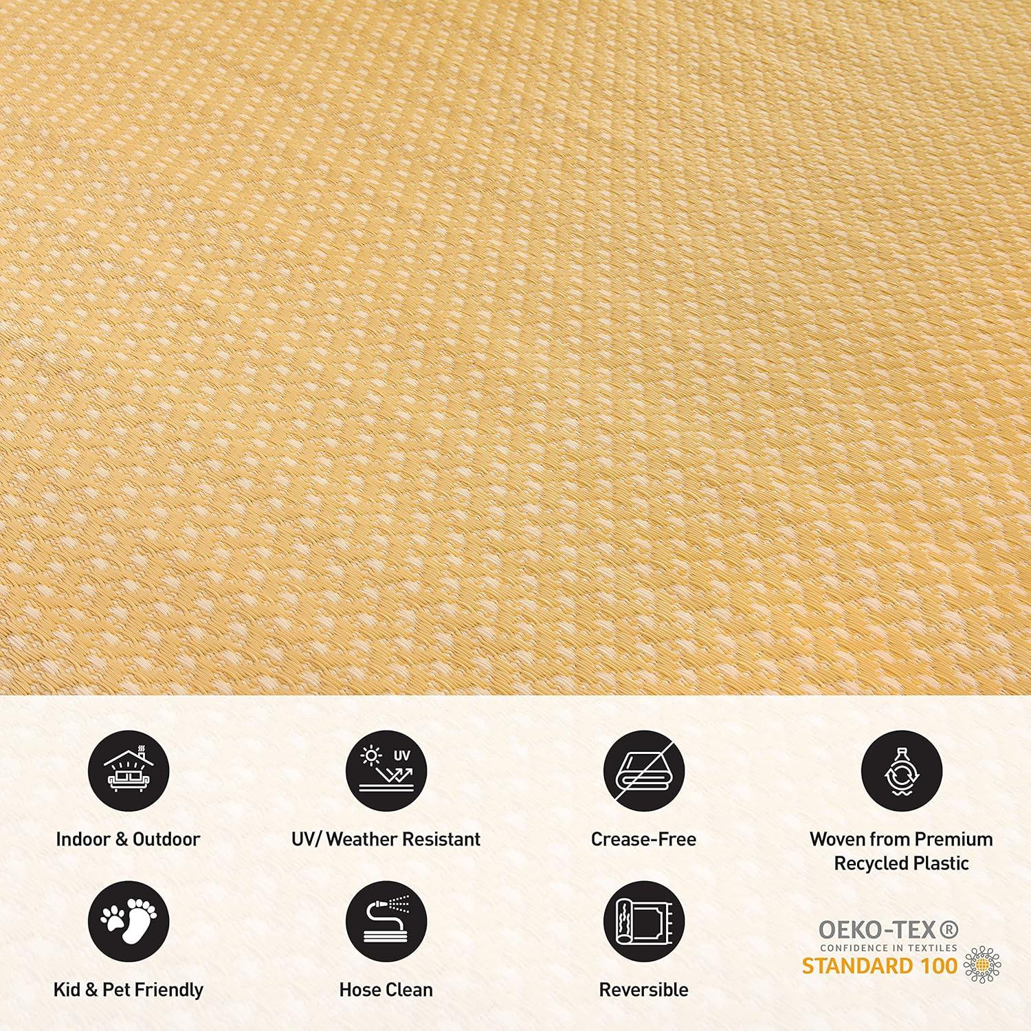 Reversible Rugs: Indoor/Outdoor plastic straw rugs designed with resilience against everyday wear-and-tear, this rug is kid and pet friendly and perfect for high traffic areas of your home such as patio,backyard,RV,deck,picnic,trailer,camping,pool area,backyard,grass,sunroom, pet mats, kid’s mats, traveling, picnics, casual hikes, beach trips and more.