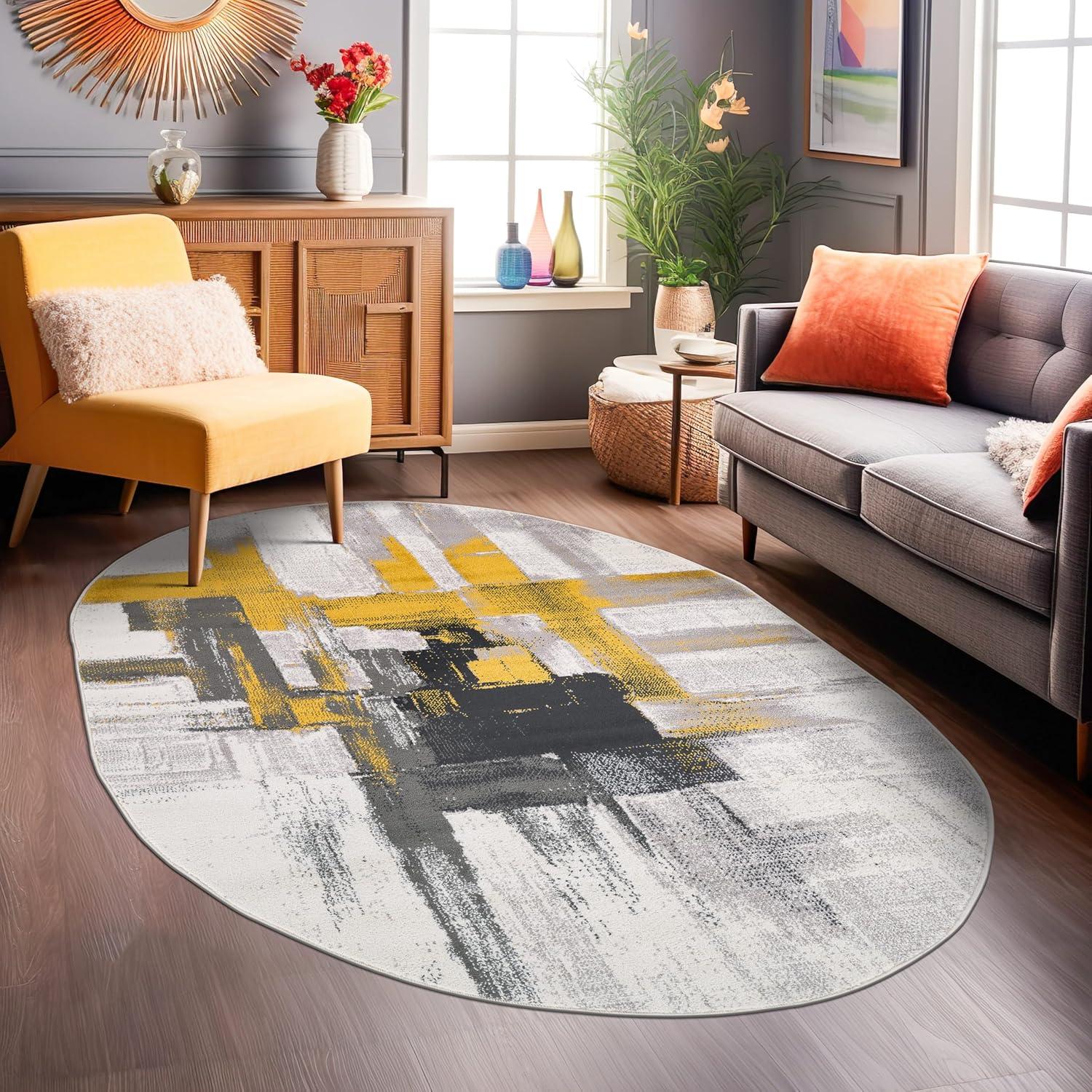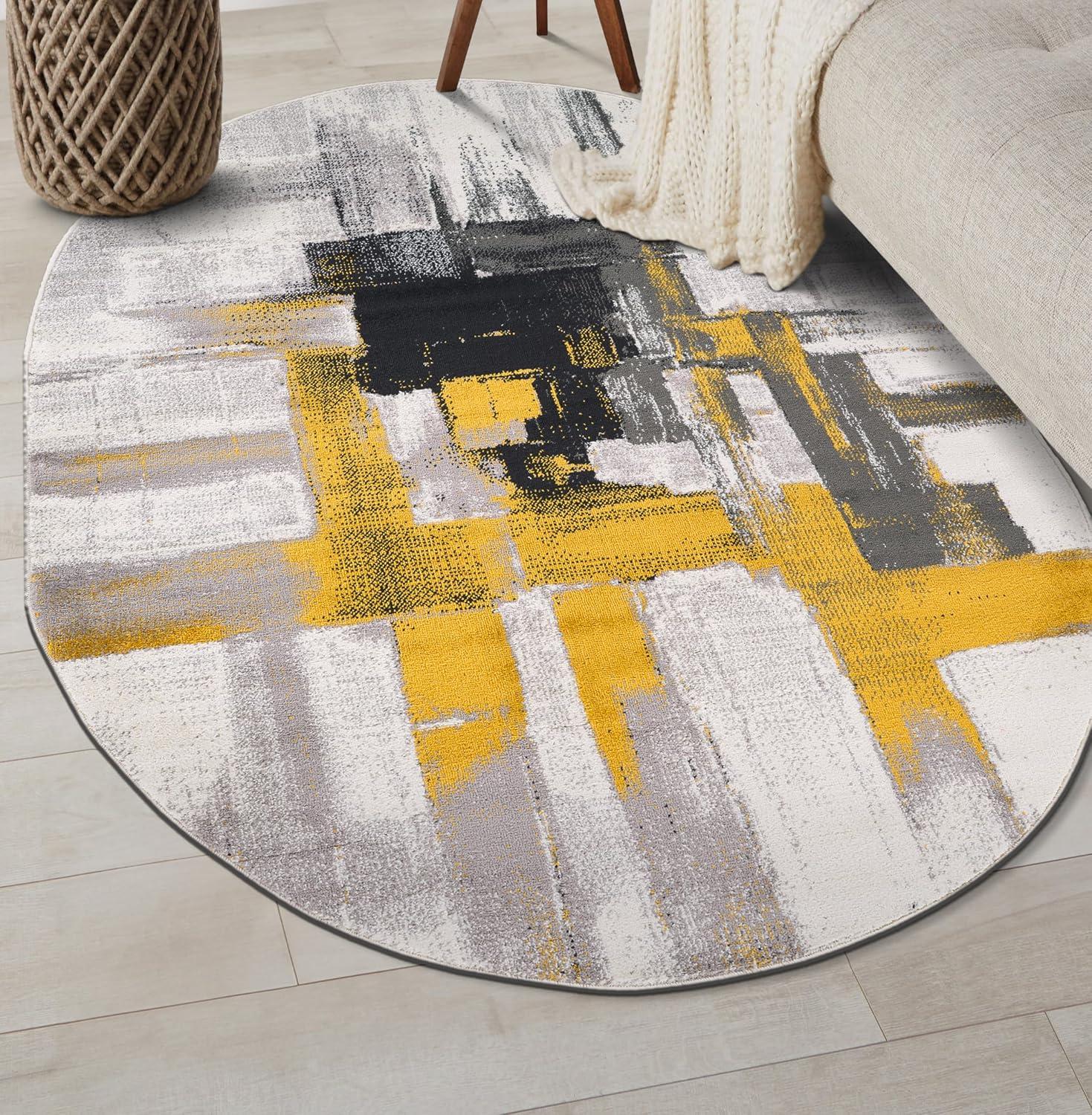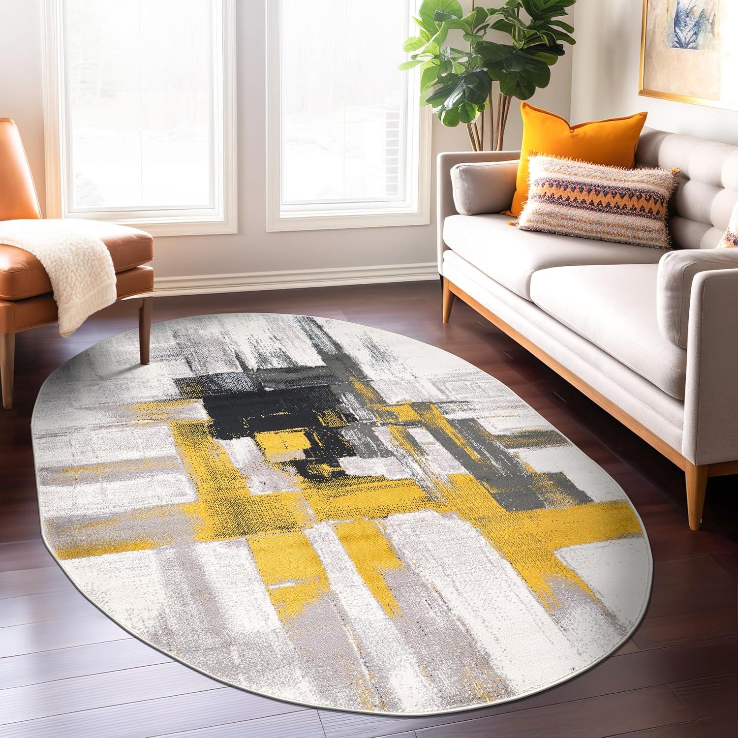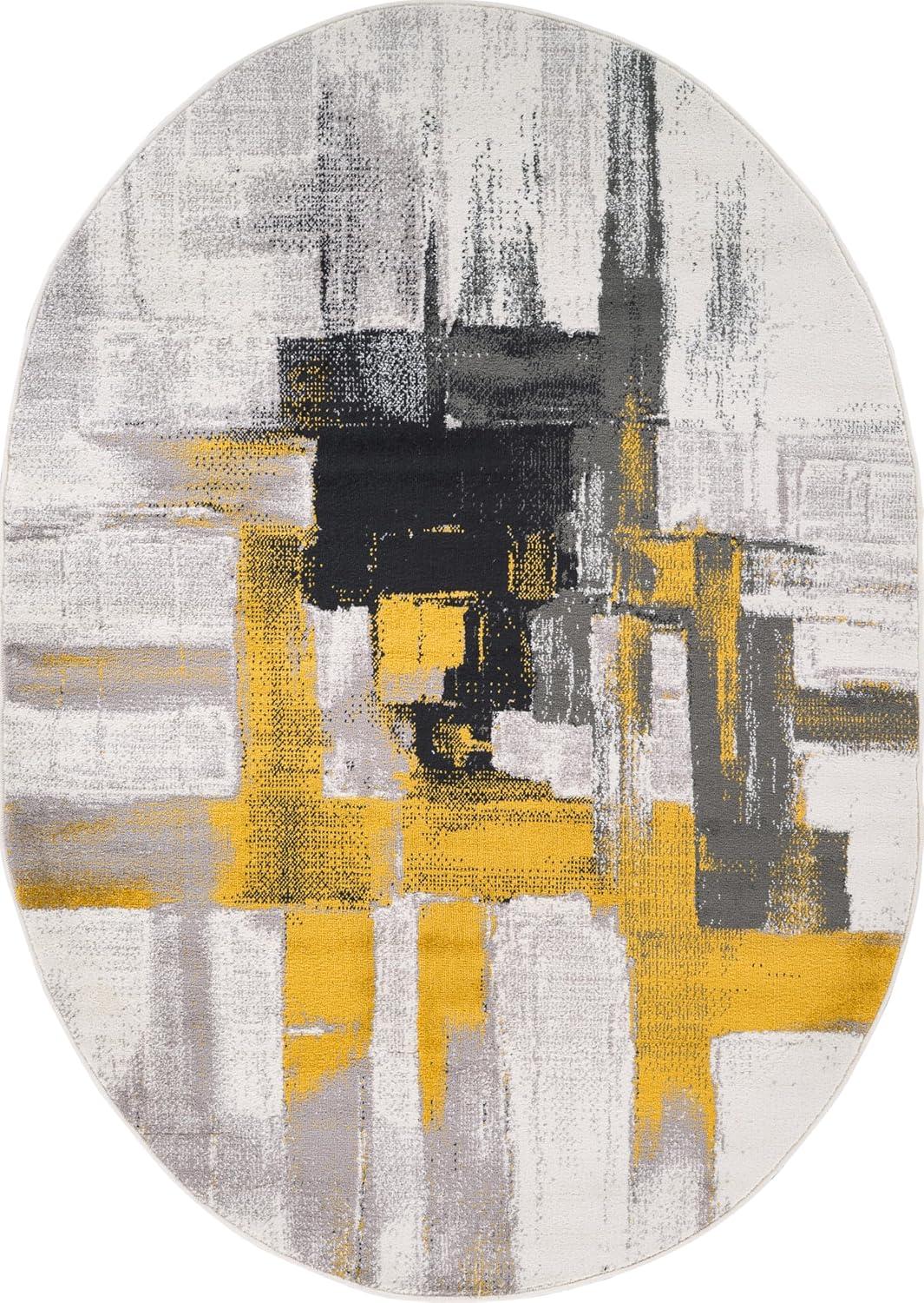 Rugshop Gold Modern Abstract Oval Area Rug — Non-Shedding for Dining Room, Living Room and Bedroom 5′ x 7′ Oval