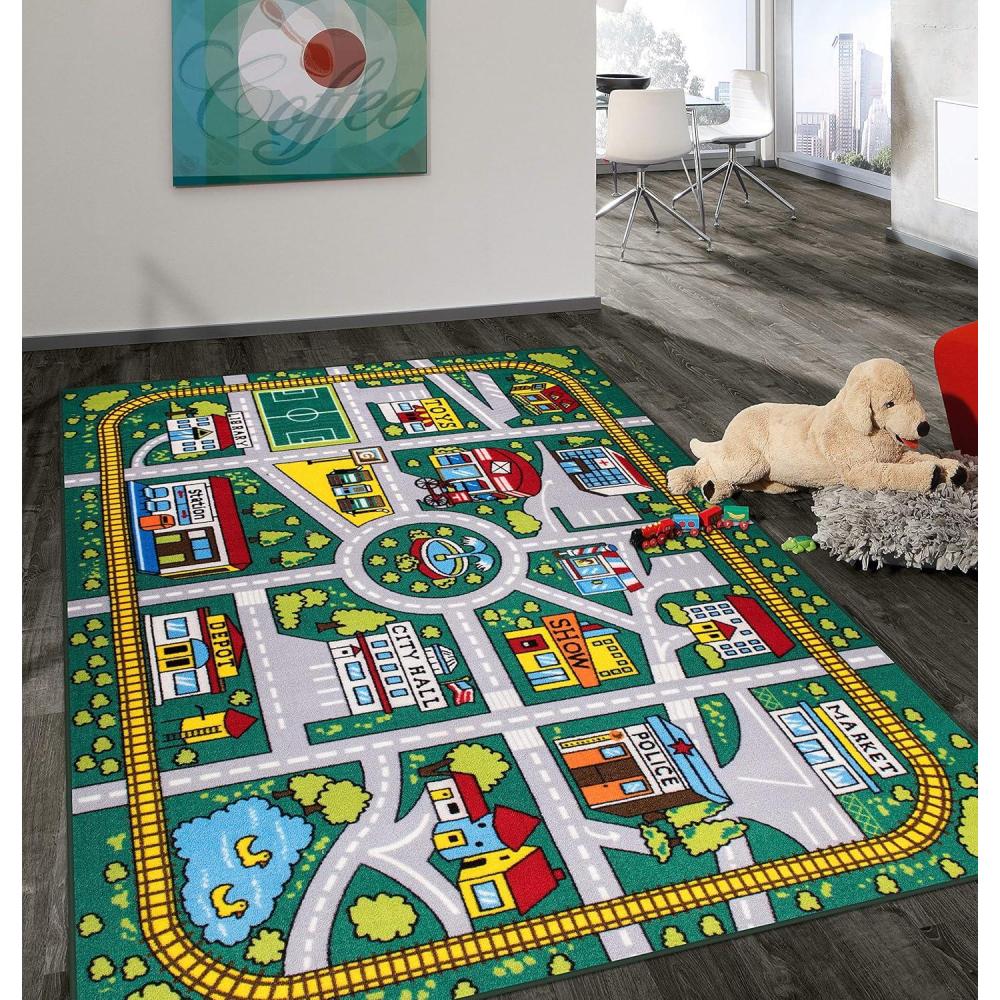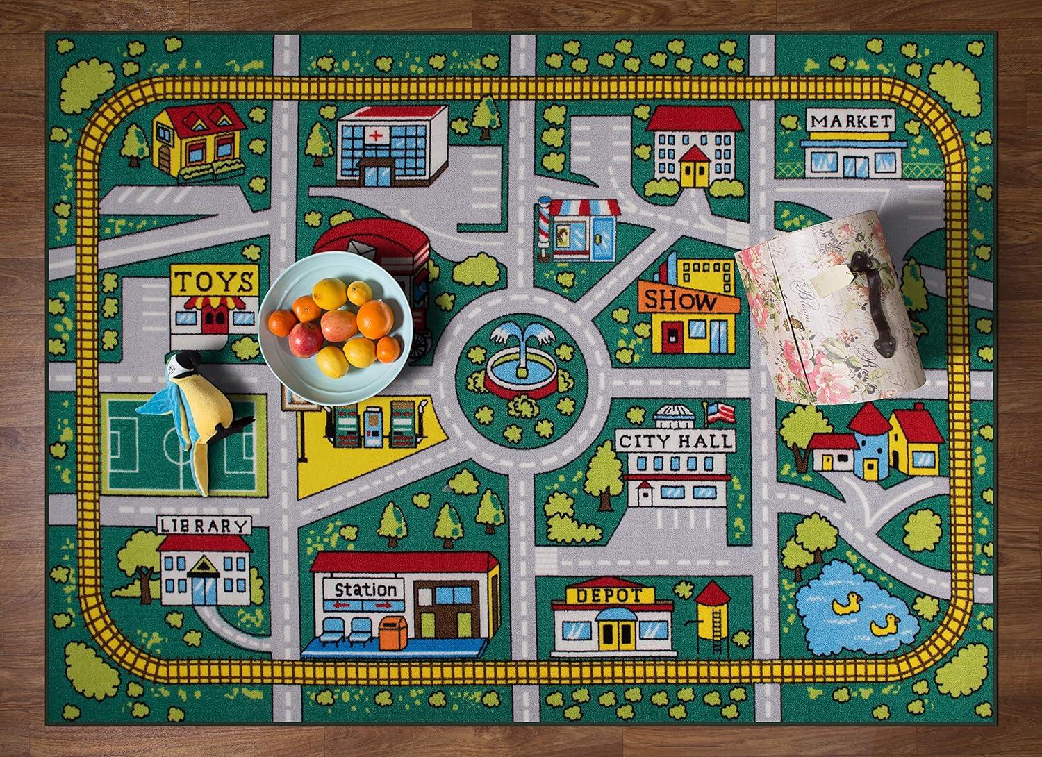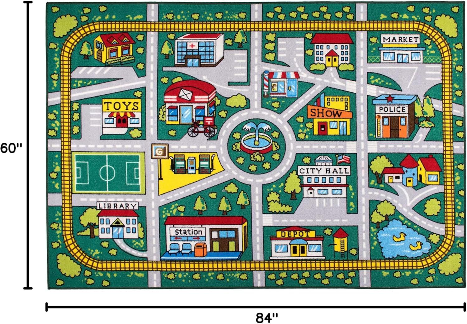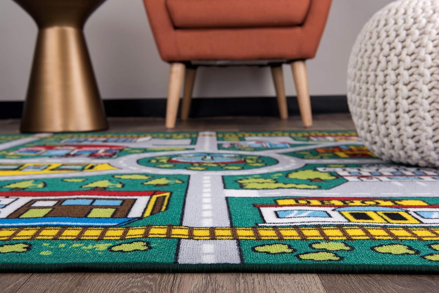 Rugshop Kids Educational Learning City Life Road Non Skid (Non Slip) Area Rug 5′ x 7′ Green(Green)
