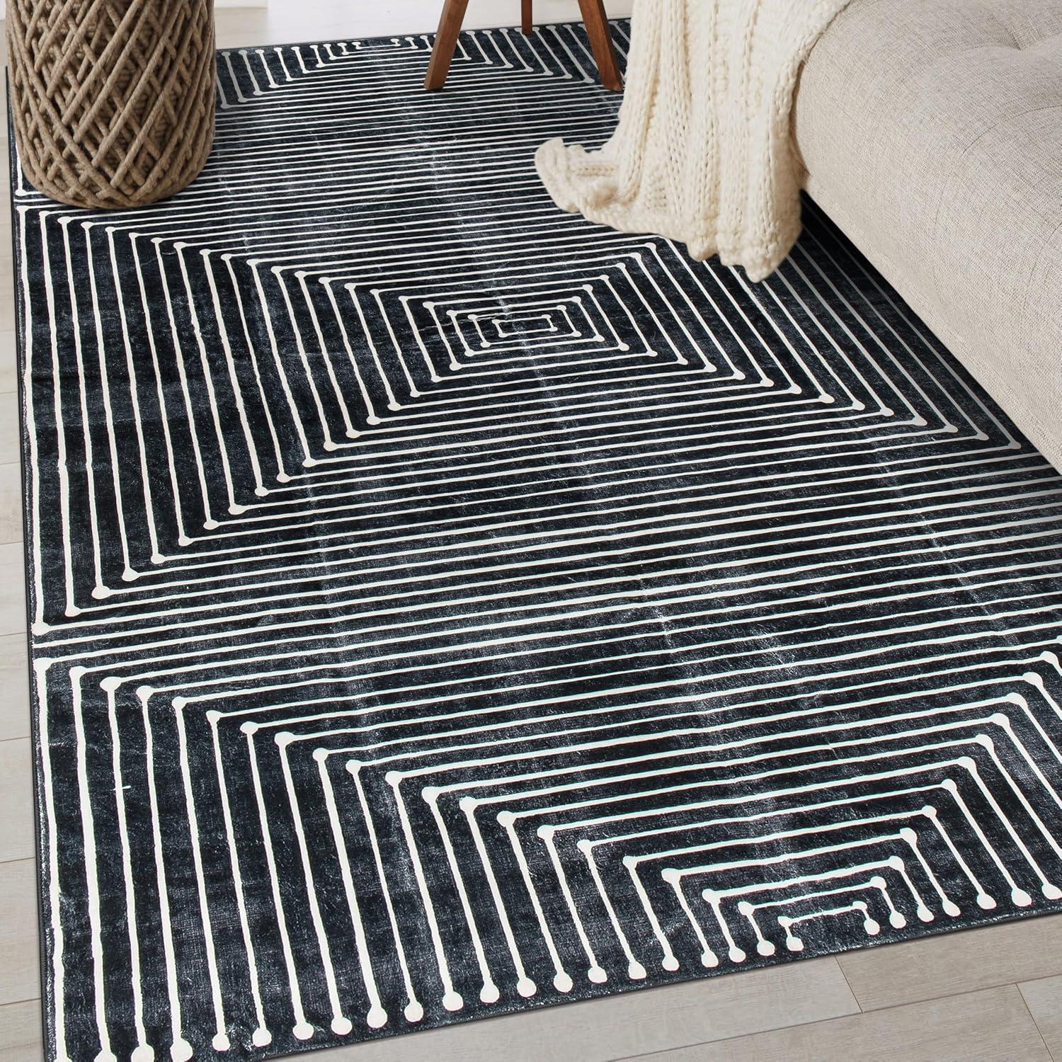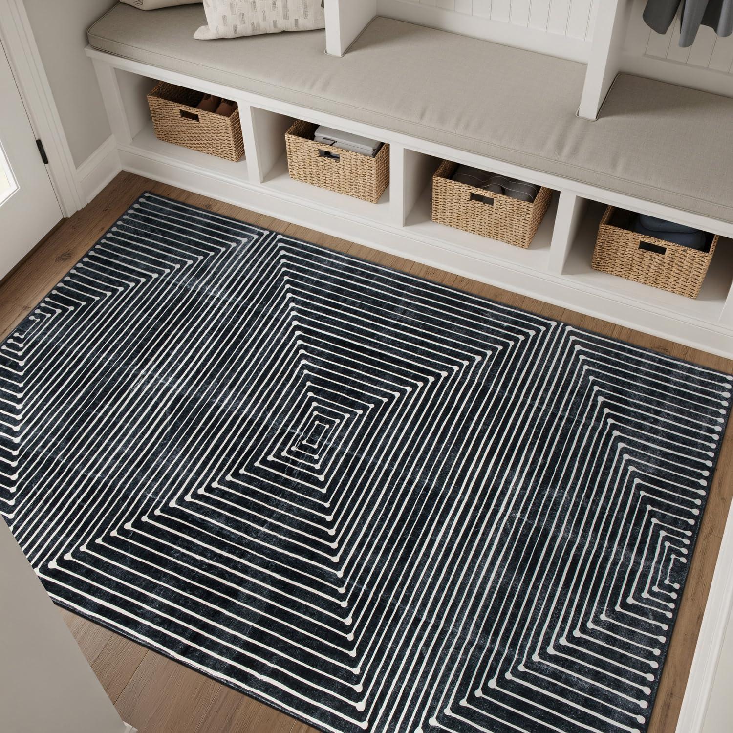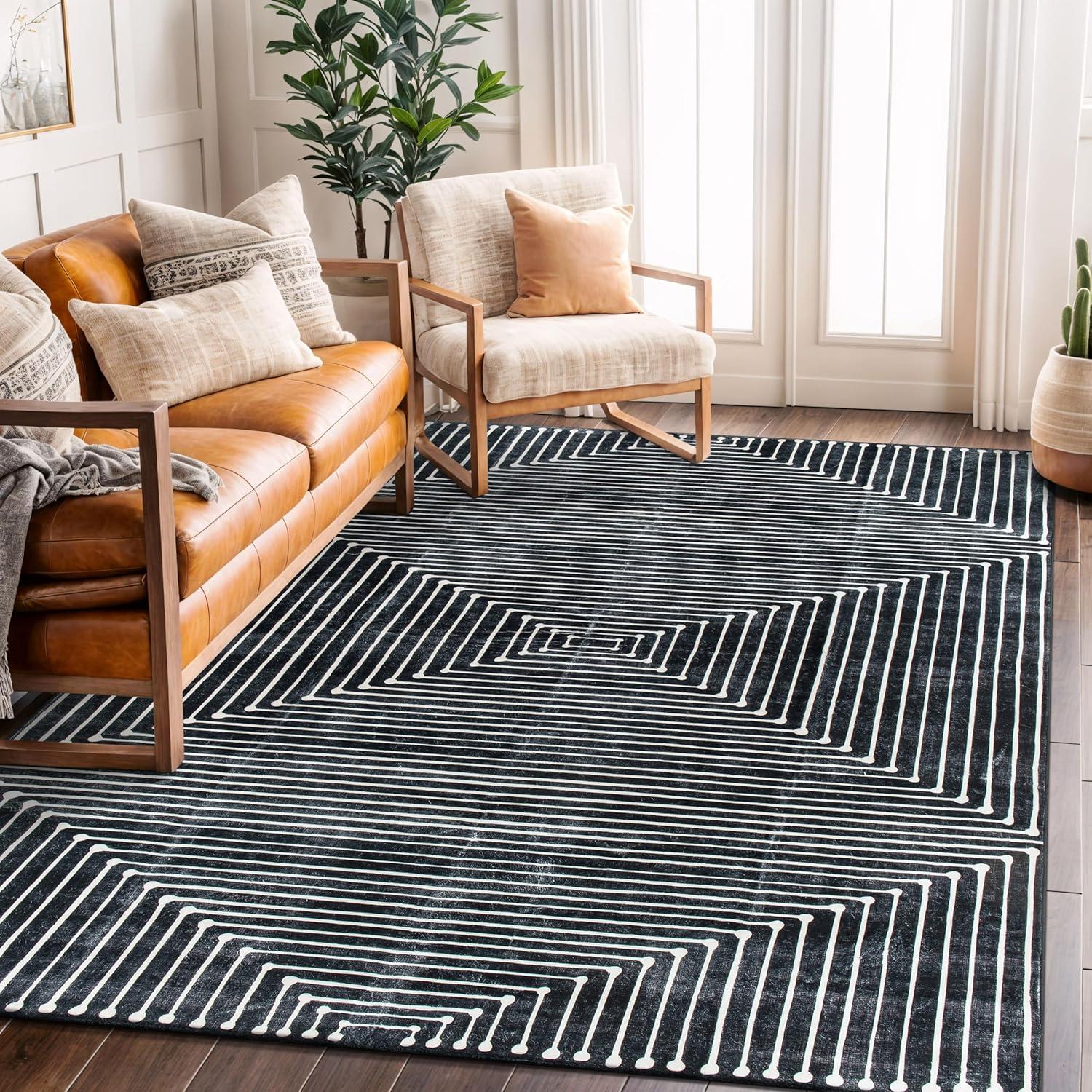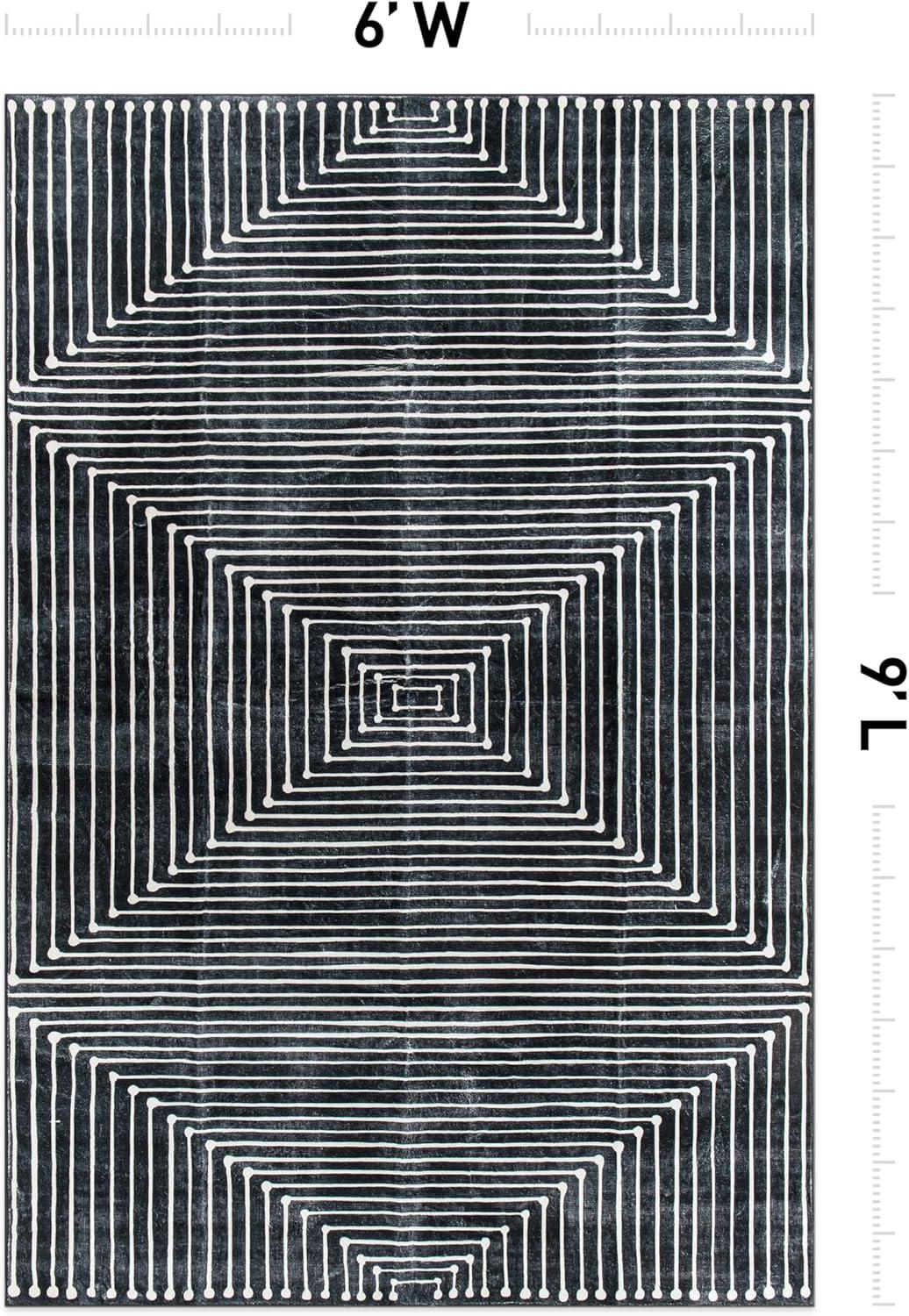 A striking geometric composition meets a soft, inviting texture in this modern area rug. Its machine-washable fibers make it a low-maintenance choice, while the non-slip backing keeps it steady in high-traffic spaces. Whether you're refreshing your living room, bedroom, or entryway, this rug brings both eye-catching appeal and everyday comfort.