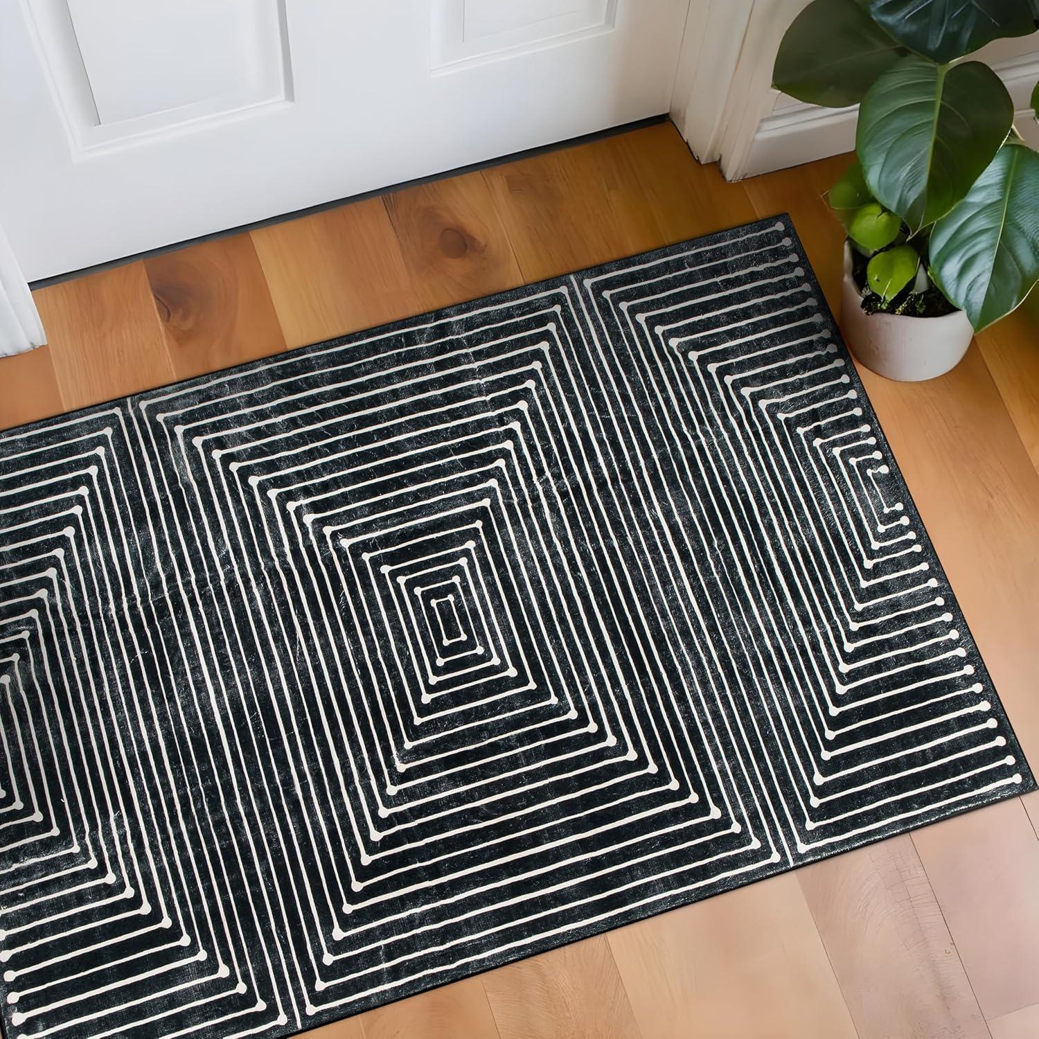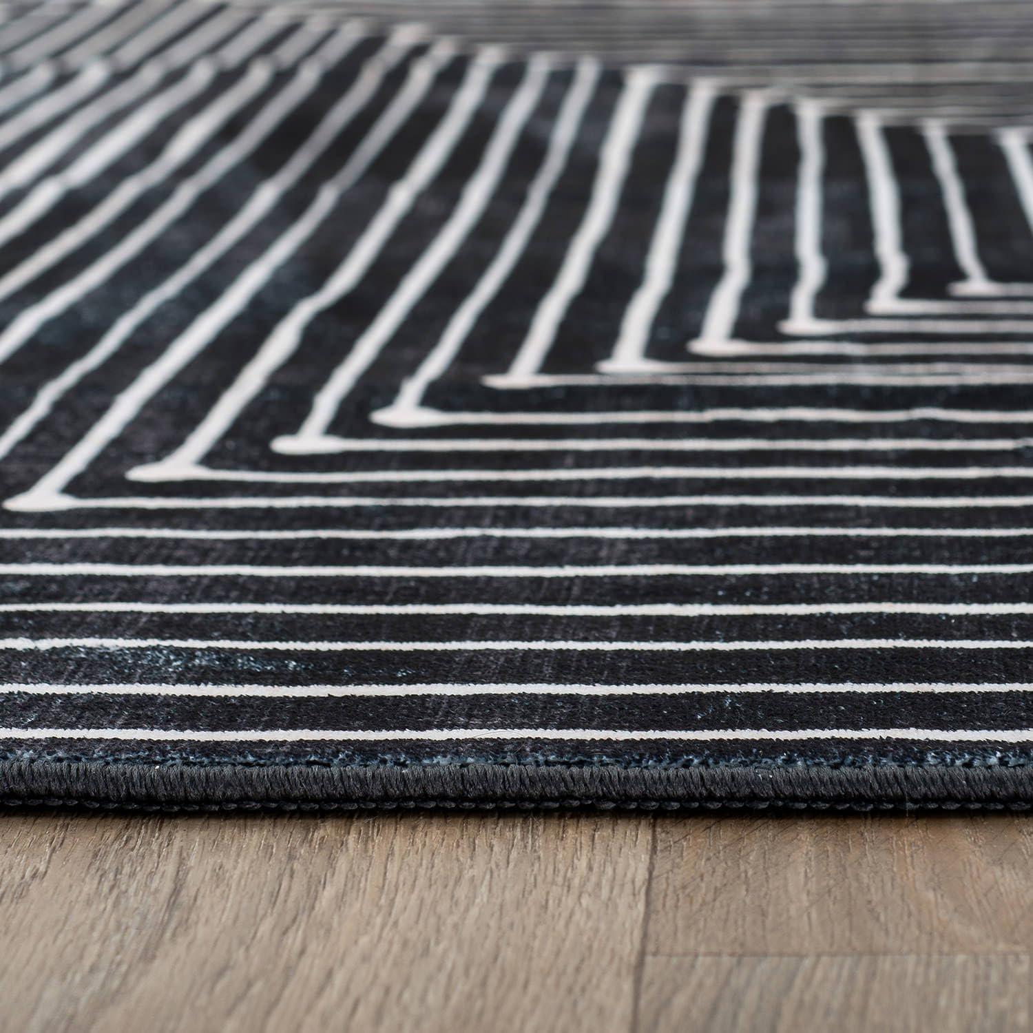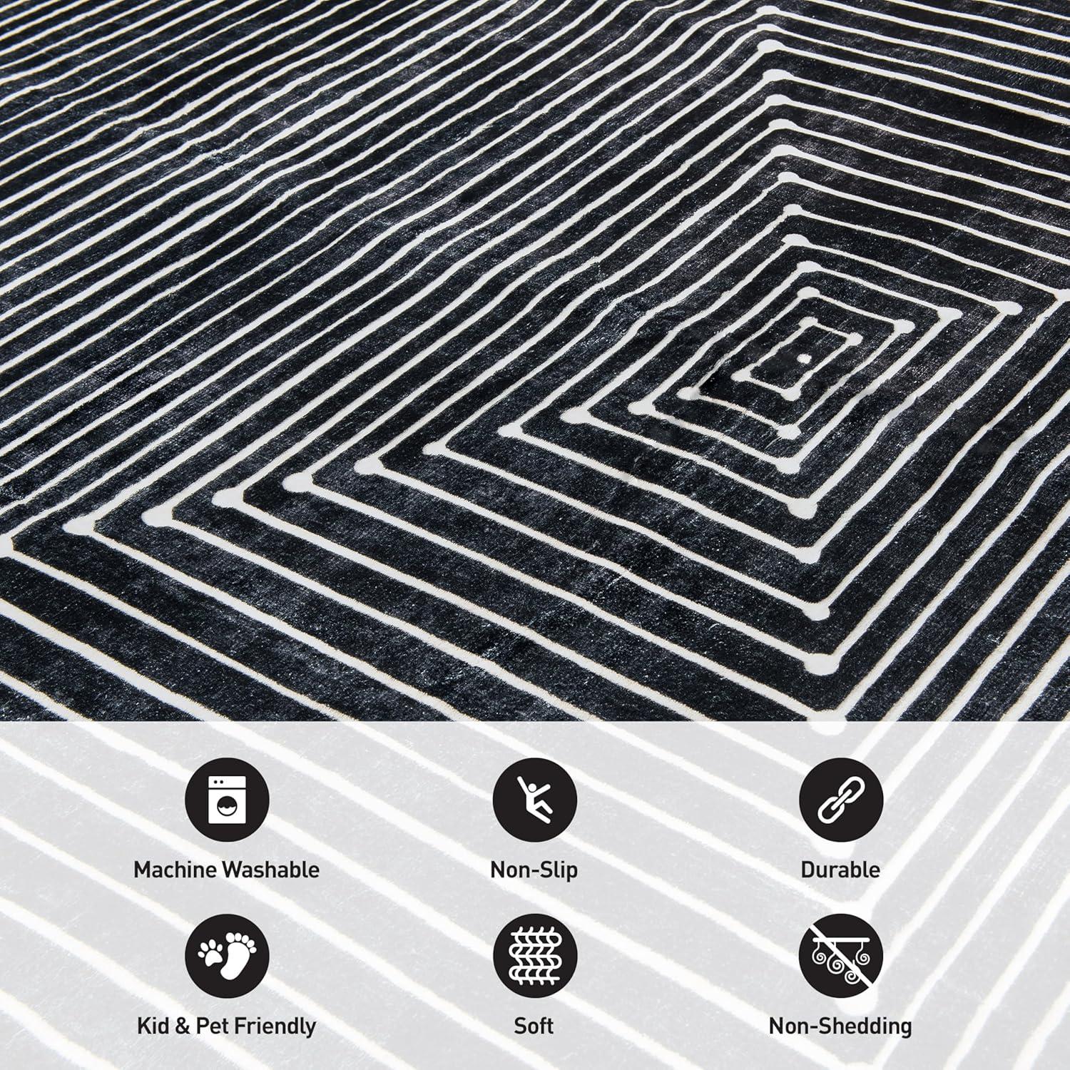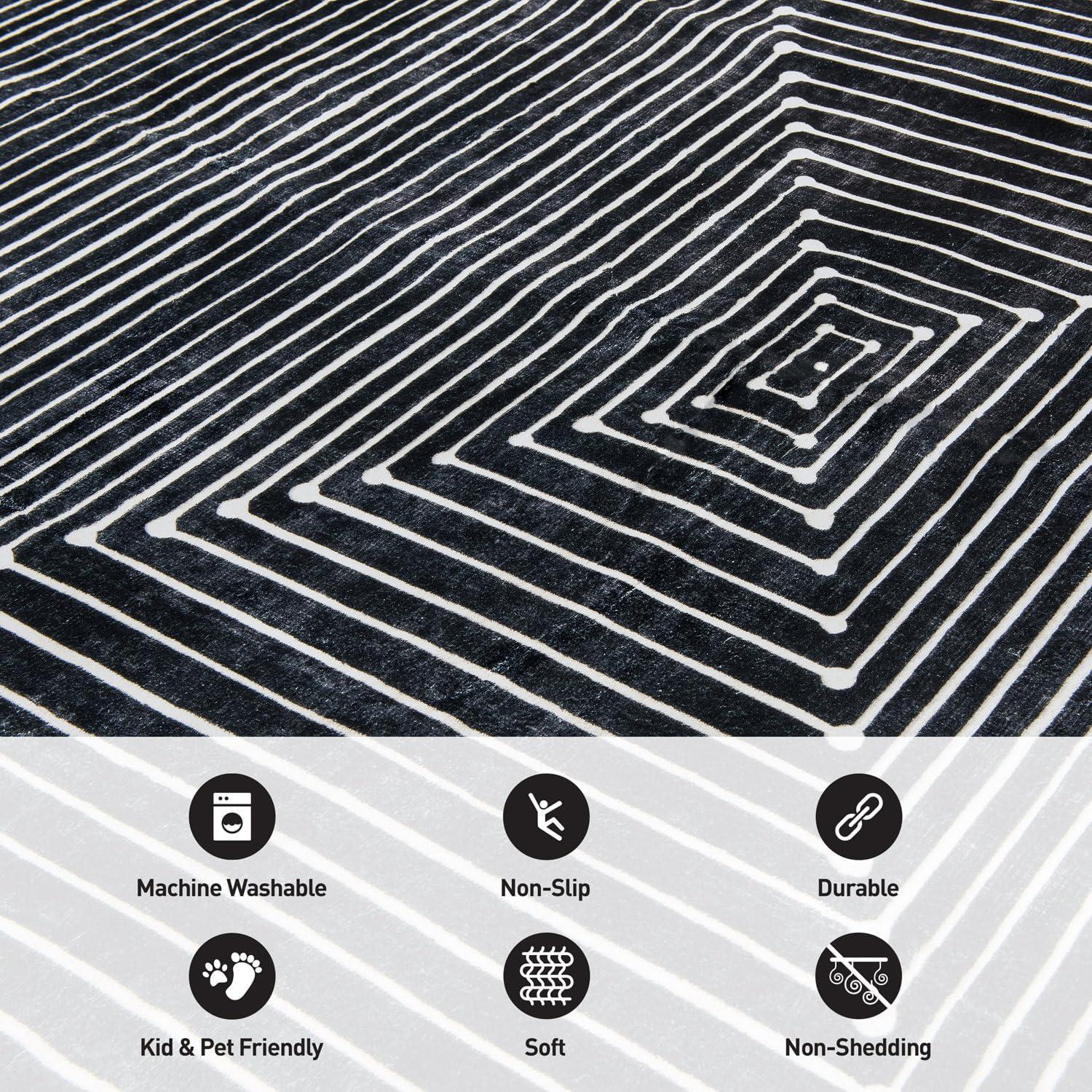 A striking geometric composition meets a soft, inviting texture in this modern area rug. Its machine-washable fibers make it a low-maintenance choice, while the non-slip backing keeps it steady in high-traffic spaces. Whether you're refreshing your living room, bedroom, or entryway, this rug brings both eye-catching appeal and everyday comfort.