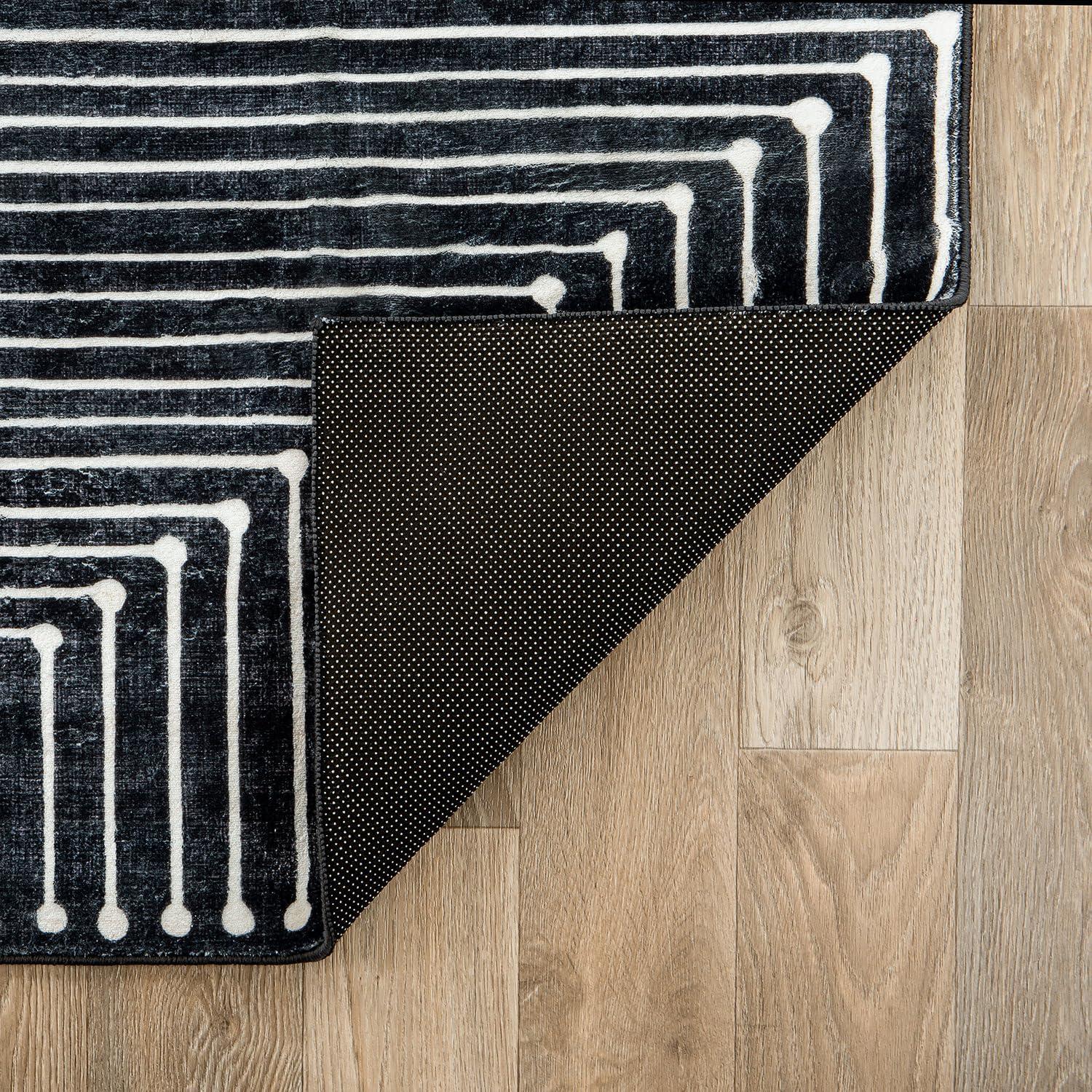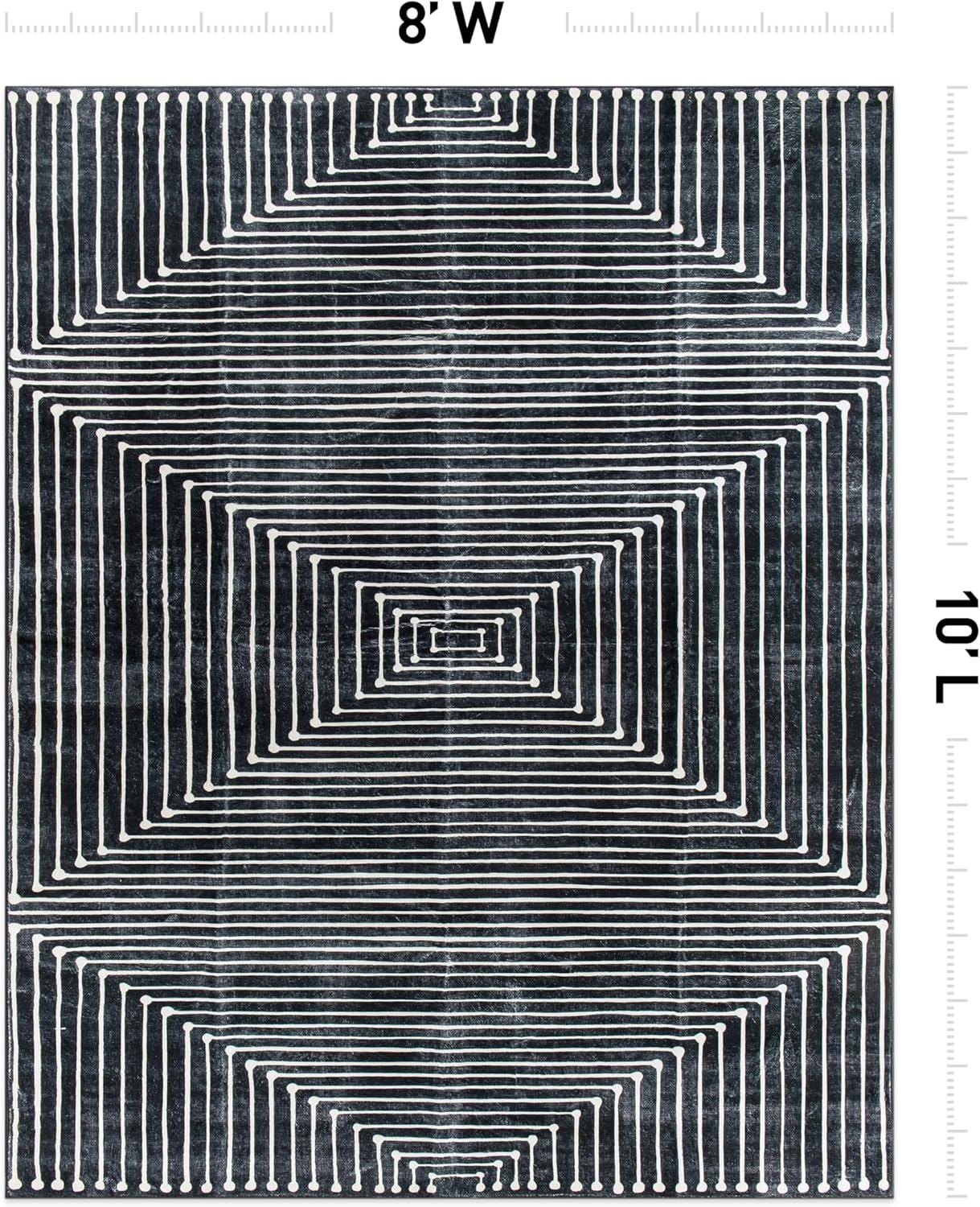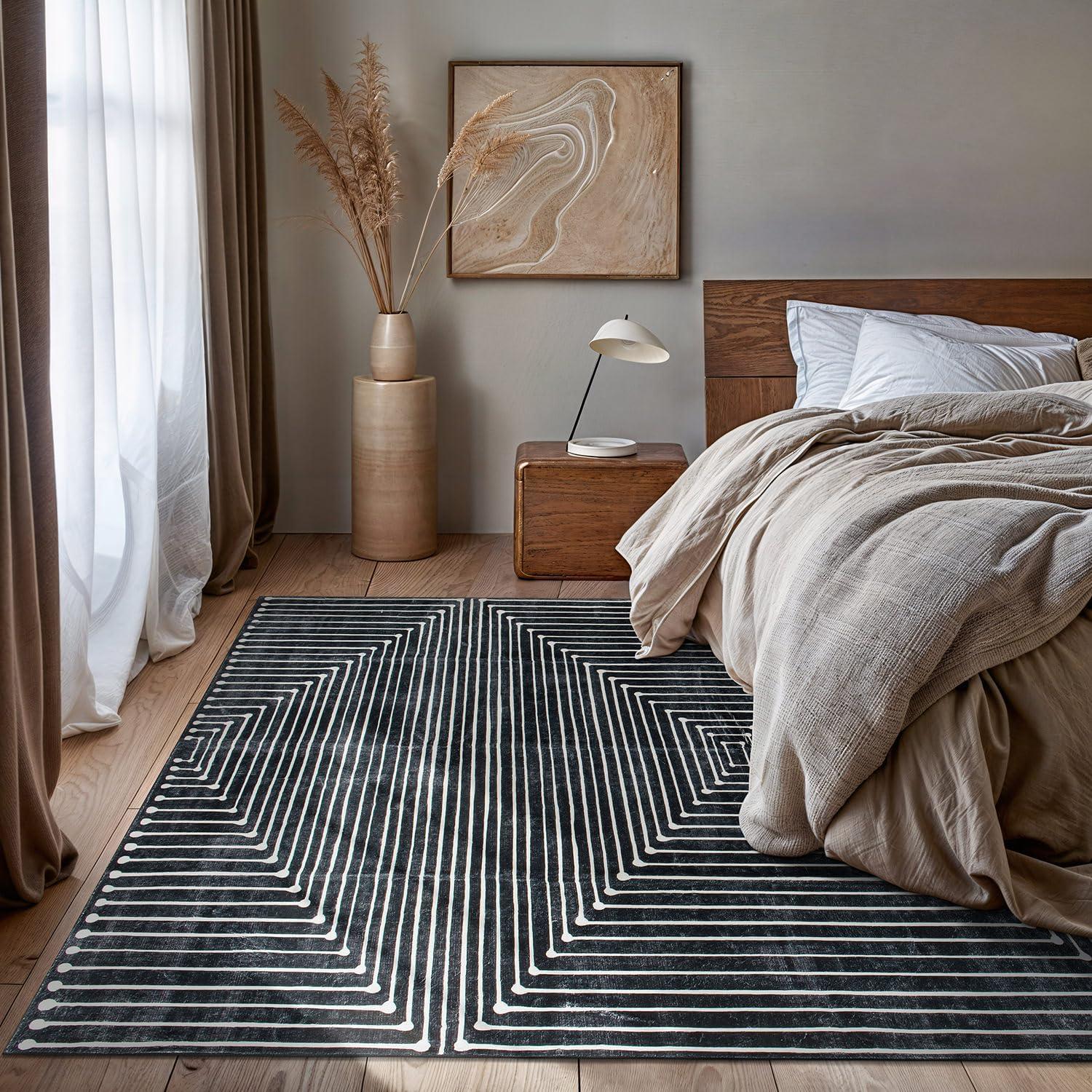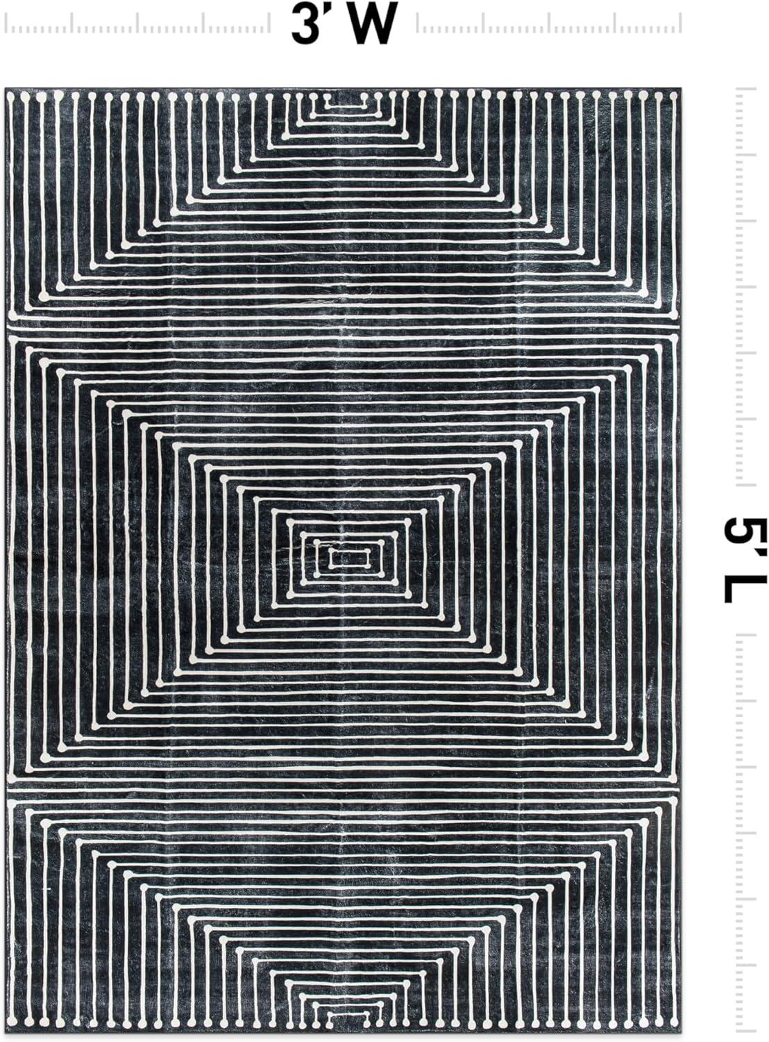 A striking geometric composition meets a soft, inviting texture in this modern area rug. Its machine-washable fibers make it a low-maintenance choice, while the non-slip backing keeps it steady in high-traffic spaces. Whether you're refreshing your living room, bedroom, or entryway, this rug brings both eye-catching appeal and everyday comfort.
