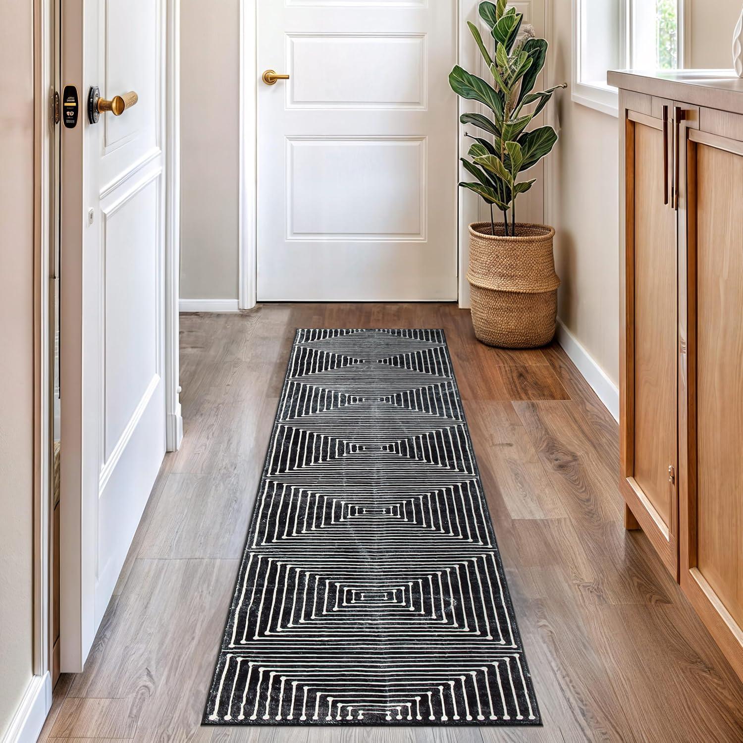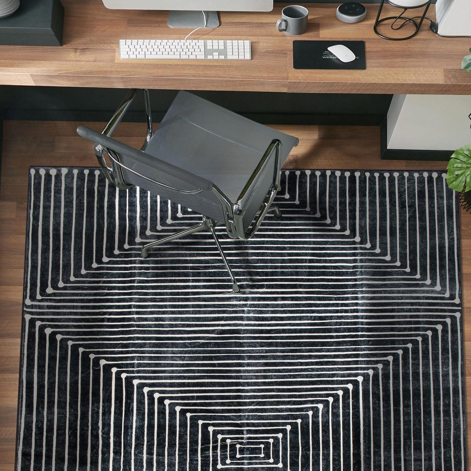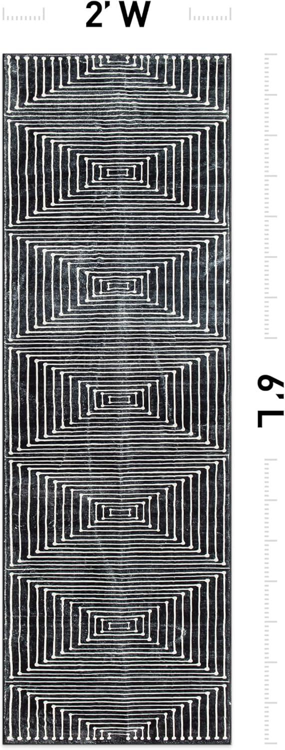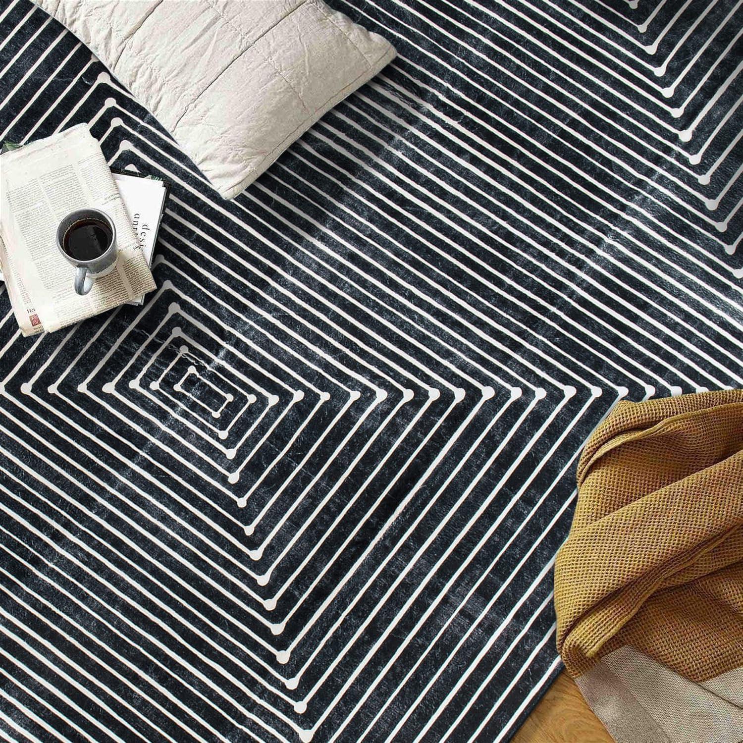 A striking geometric composition meets a soft, inviting texture in this modern area rug. Its machine-washable fibers make it a low-maintenance choice, while the non-slip backing keeps it steady in high-traffic spaces. Whether you're refreshing your living room, bedroom, or entryway, this rug brings both eye-catching appeal and everyday comfort.