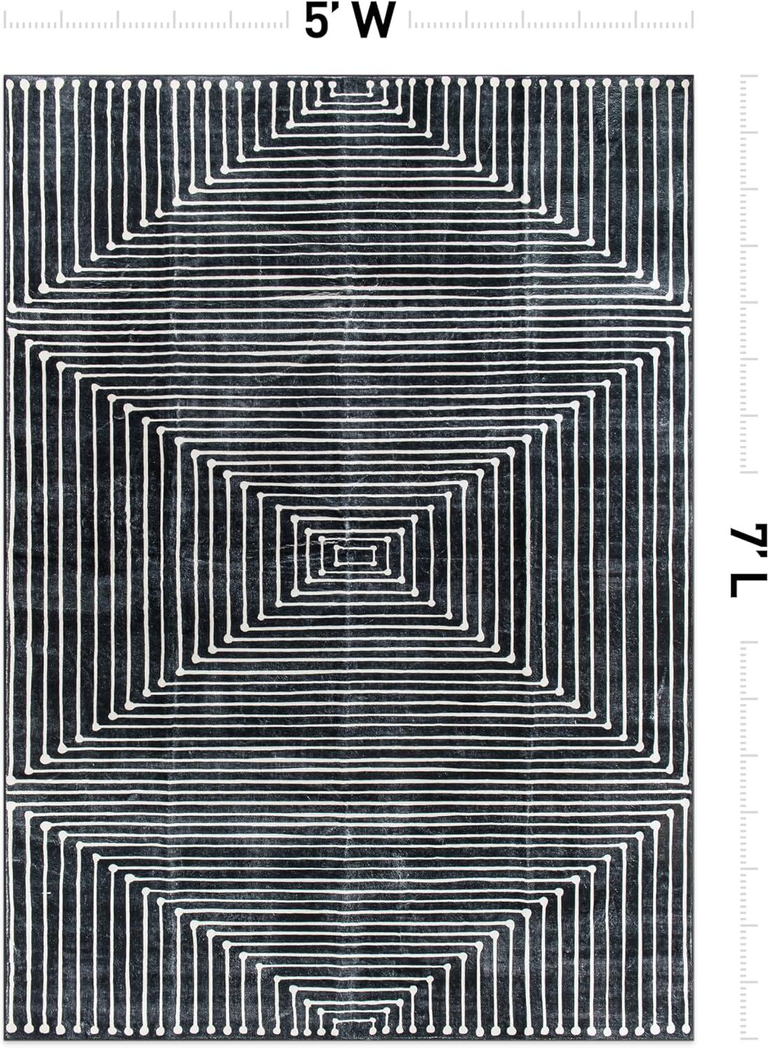 Rugshop Marbella Bohemian Stripes Washable Non Slip Area Rug 5′ x 7′ Beige(Black)